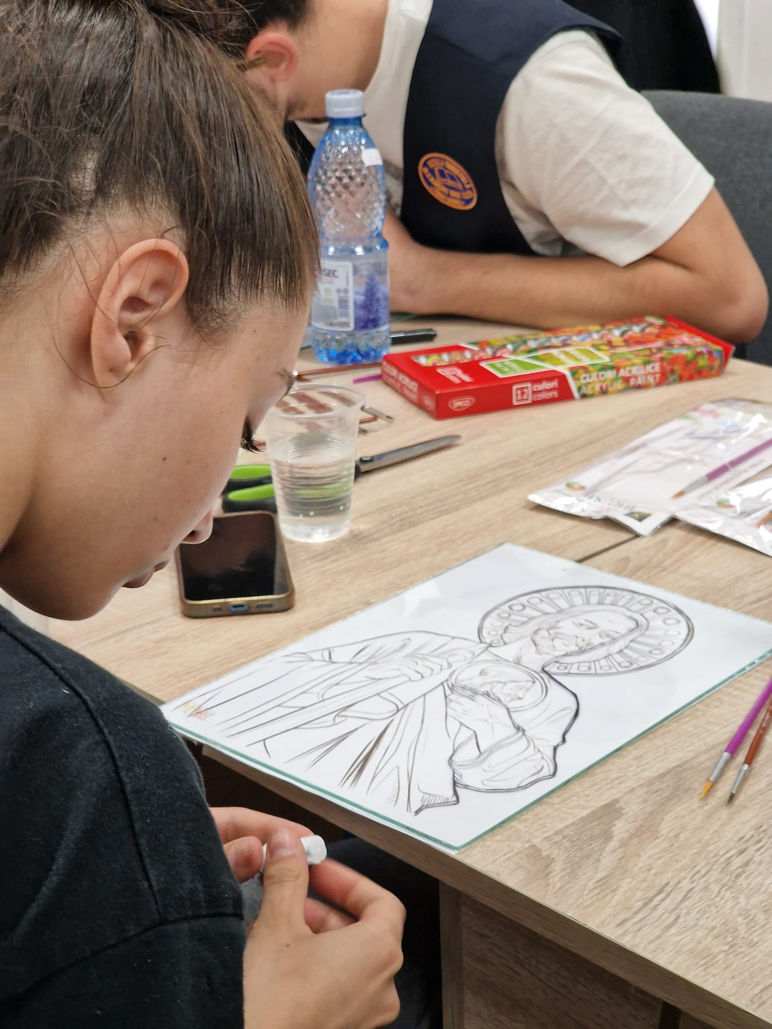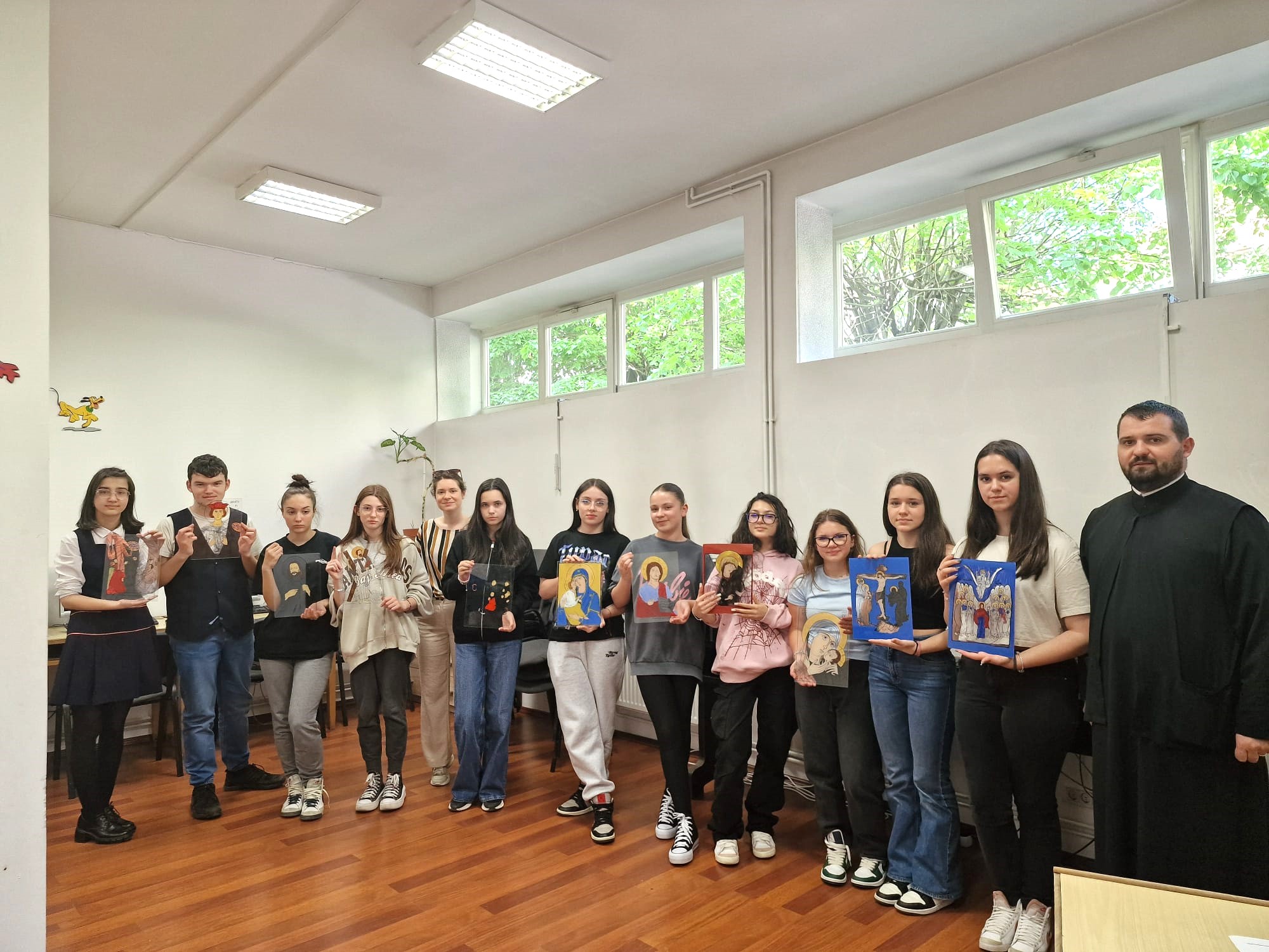 De asemenea, împreună cu tinerii am discutat pe îndelete asupra semnificației și elementelor reprezentative ale fiecărei imagini alese de ei spre a o picta și a deveni icoană, precum și despre viețile Sfinților reprezentați. Astfel, aceștia au putut afla că icoana reprezintă cea mai facilă formă de întâlnire (în chip văzut) cu Sfântul protector și că aceasta, pe lângă Acatistului Sfântului, al zilei sau al praznicului, trebuie să se regăsească în fiecare casă și în programul cotidian al fiecărui credincios. De asemenea, tinerele vlăstare au fost încurajate ca, atunci când se află în situații grele, în momente de cumpănă, sunt împovărați de griji, temeri și neliniști, să rostească o rugăciune în fața icoanei, iar Sfântul reprezentat pe icoană le va lumina calea și îi va ajuta să treacă de orice obstacol. La final, icoanele au fost sfințite și duse acasă de către „pictorii” lor, spre a le cinsti în „colțul” de rugăciune sau pentru a le dărui celor dragi.