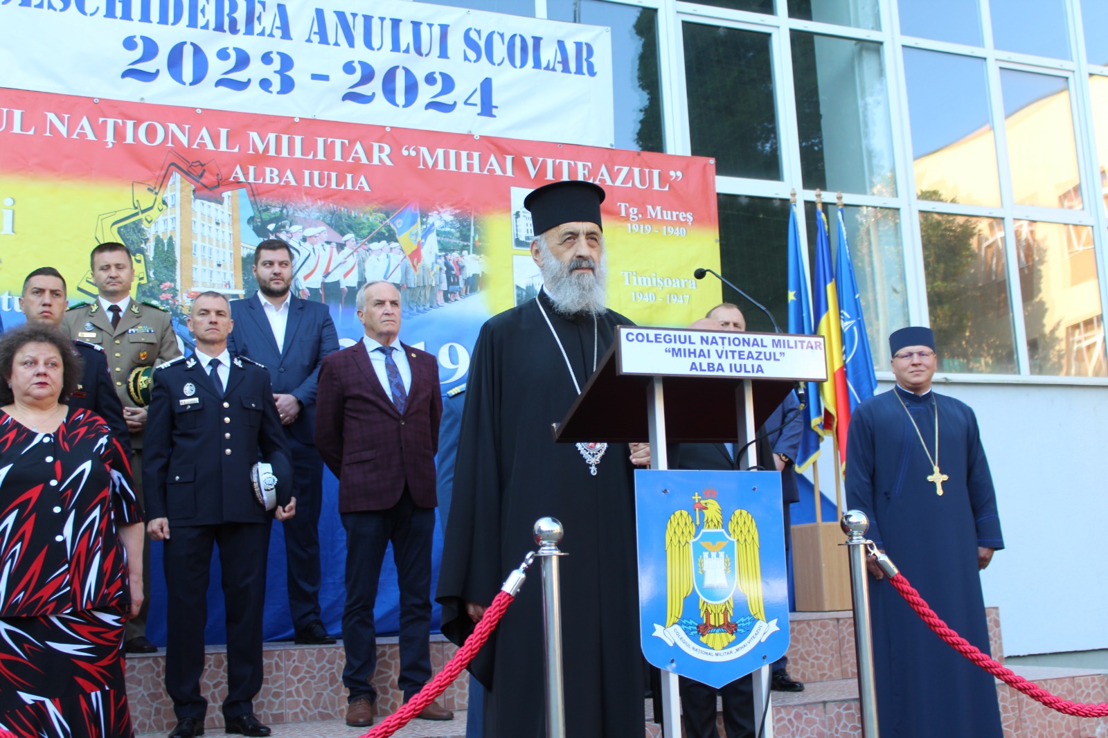 Luni, 11 septembrie 2023, începând cu ora 9.00, Înaltpreasfințitul Părinte Irineu, Arhiepiscop al Alba Iuliei, a participat la festivitatea de deschidere a noului an școlar la Colegiul Național Militar „Mihai Viteazul” din vechea Cetate a Bălgradului. La acest eveniment au participat cadrele didactice și elevii instituției de învățământ, părinți și apropiați ai acestora, precum și reprezentanţi ai administraţiei publice locale şi ai Inspectoratului Şcolar Judeţean (ISJ) Alba. În cadrul ceremoniei, Ierarhul nostru, în cuvântul adresat celor prezenți, a apreciat activitatea educațională desfășurată în cadrul Colegiului Național Militar „Mihai Viteazul”: