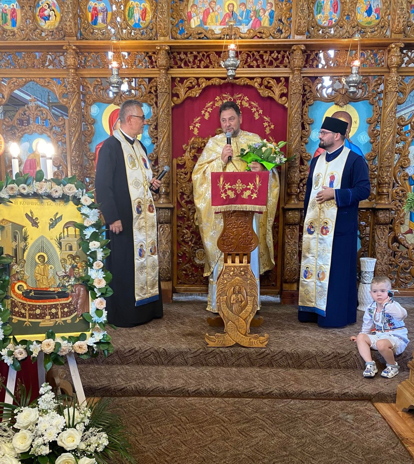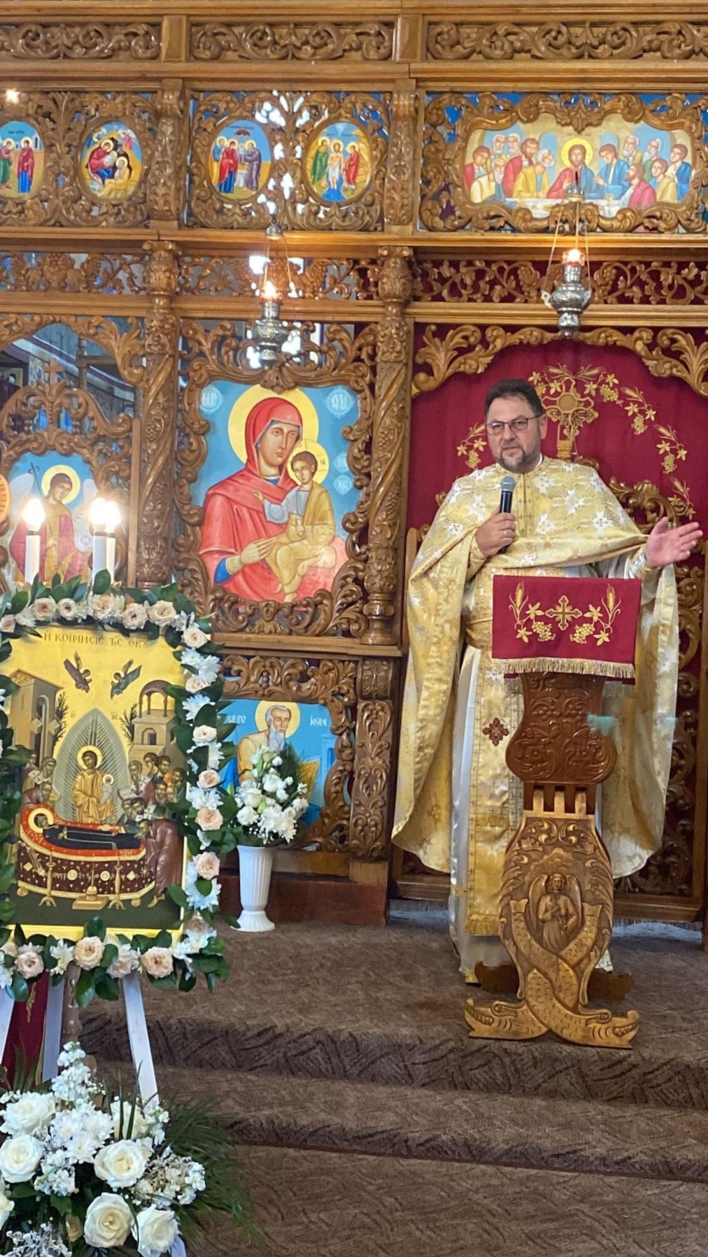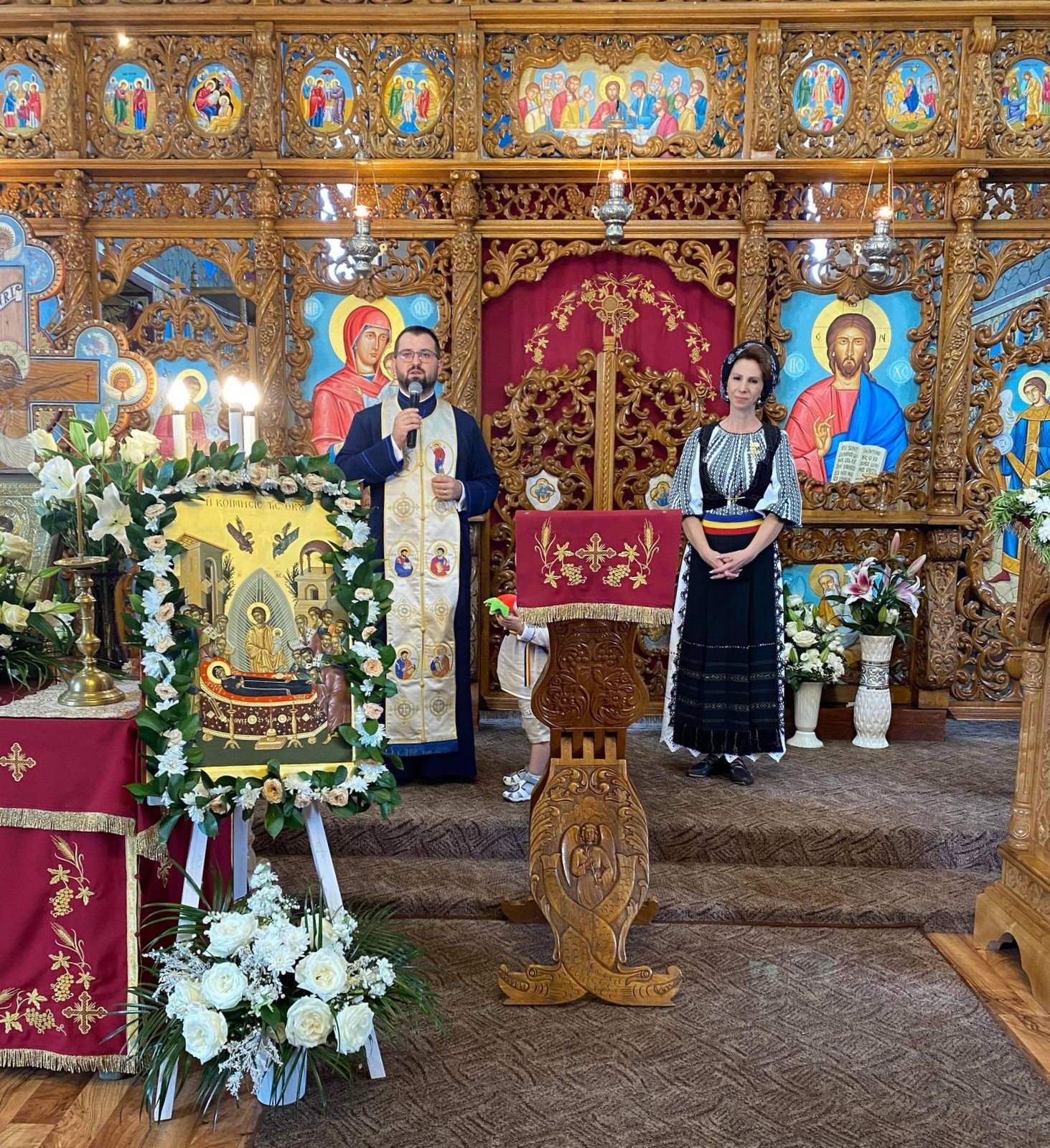 În ziua hramului, 15 august, când Biserica noastră prăznuiește mutarea Maicii Domnului de-a dreapta Preaiubitului Său Fiu, Mântuitorul nostru Iisus Hristos, am primit-o în mijlocul nostru pe cunoscuta interpretă de muzică populară Ionela Moruțan, care, după oficierea Sfintei Liturghii, a dăruit Maicii Domnului, dar și bunilor noștri credincioși un emoționant mănunchi de cântece religioase specifice zilei alese pe care am prăznuit-o. Evenimentele dedicate hramului s-au încheiat, la ceas de seară, în același duh de rugăciune, în cadrul Tainei Sfântului Maslu de obște, oficiat de preoți din cuprinsul protopopiatelor Reghin, Târgu-Mureș și Târnăveni.