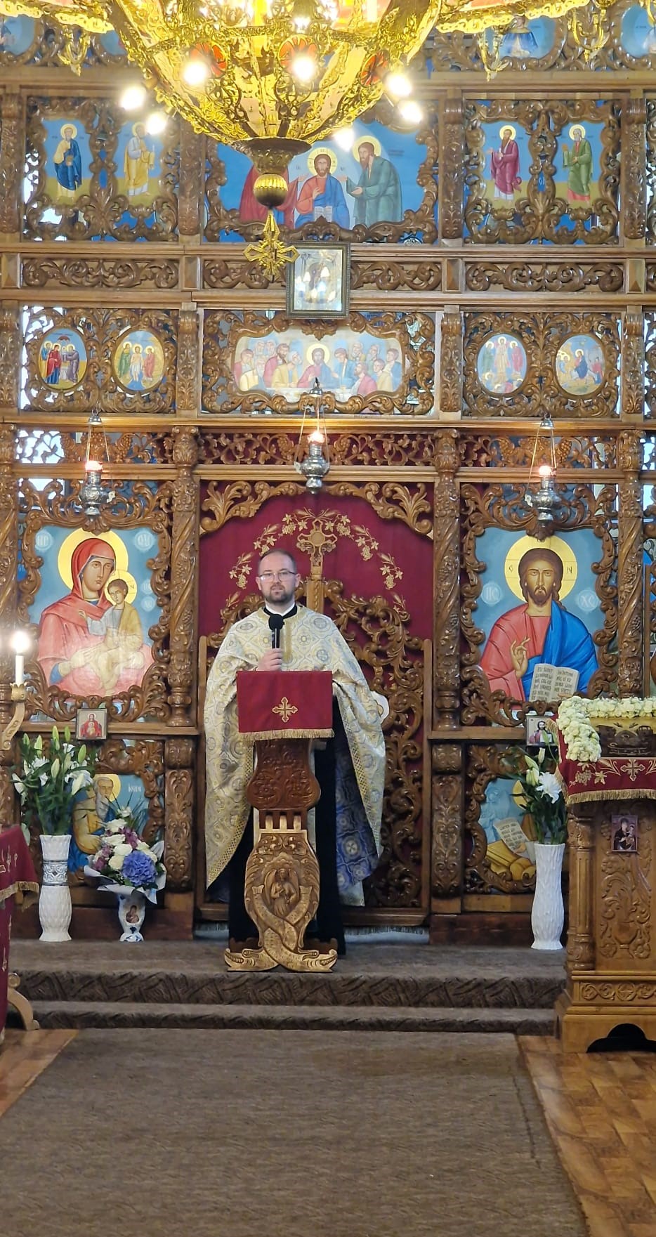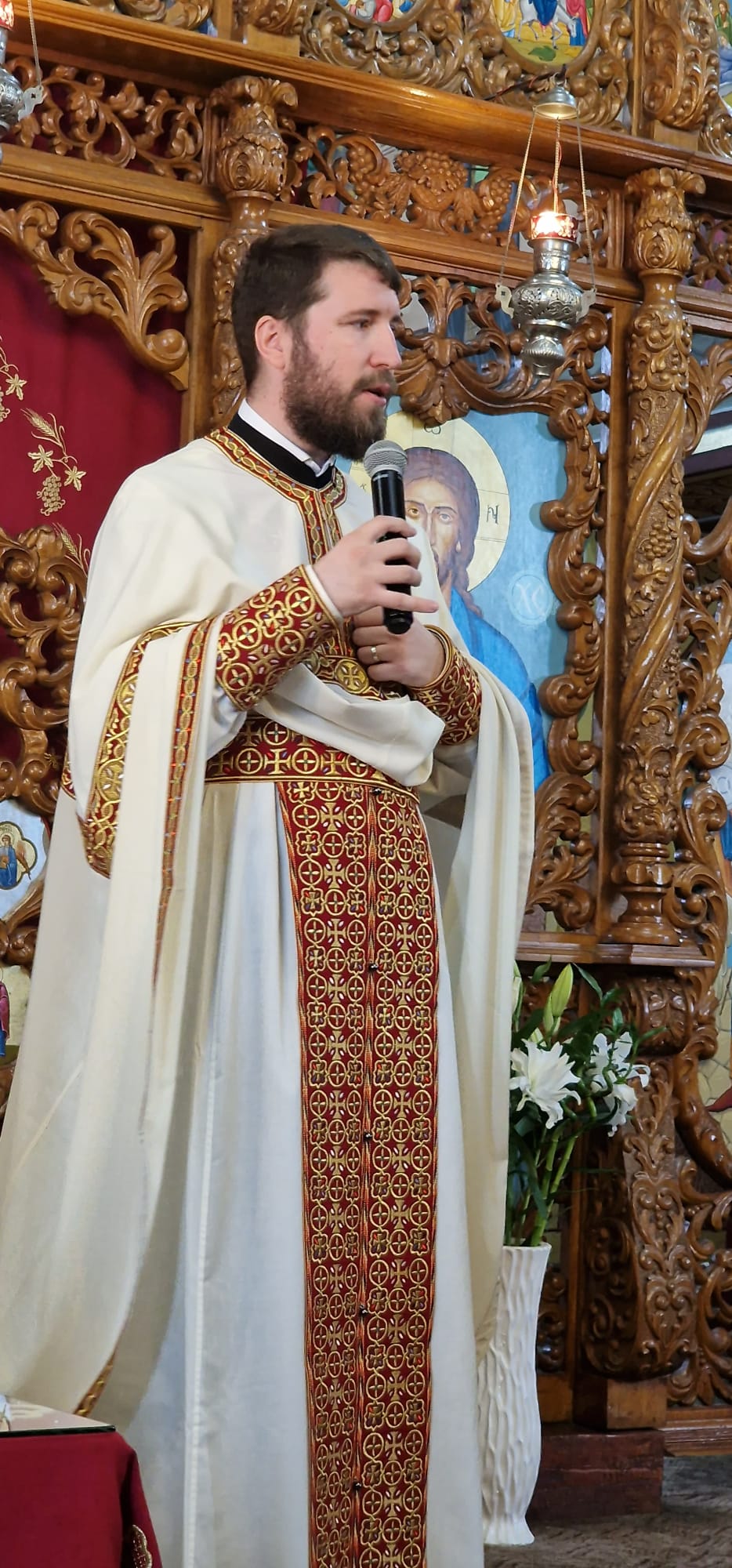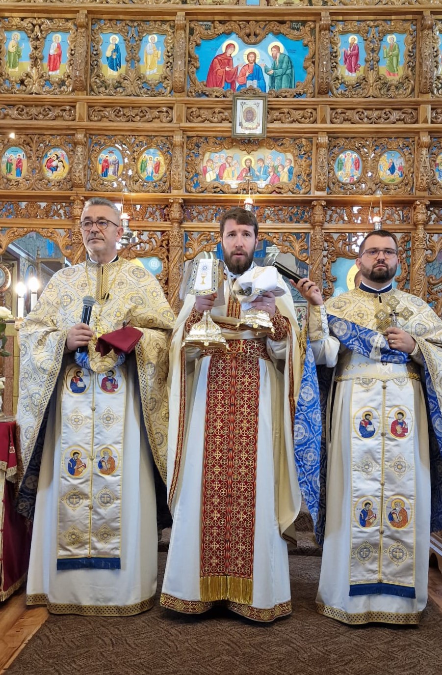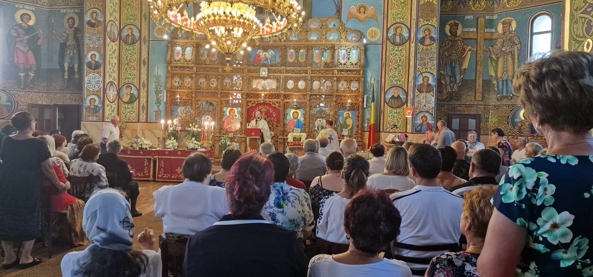 În zorii zilei de 15 august a.c., când întreaga suflare creștin-ortodoxă cinstește mutarea Maicii Domnului de-a dreapta Preaiubitului Său Fiu, Mântuitorul nostru Iisus Hristos, biserica a devenit neîncăpătoare, credincioșii așteptând cu mare bucurie momentul Ospățului Euharistic pregătit de Însuși Mirele Vieții, Mântuitorul Iisus Hristos. Invitatul special al zilei a fost părintele Vlad Roșu, slujitor la Catedrala mitropolitană „Sfântul Spiridon Nou” – paraclis patriarhal din București și membru în Grupul psaltic „Tronos” al Patriarhiei Române, care a poposit în mijlocul nostru spre a încununa atmosfera festivă prin oficierea Sfintei Liturghii alături de preoții bisericii noastre și prin rostirea cuvântului de învățătură de înaltă zidire sufletească și duhovnicească. În acest sens, invitatul nostru a expus istoricul prăznuirii sărbătorii Adormirii Maicii Domnului, dar și viața curată și modestă a celei mai mari dintre Fecioare, cea care „e mai cinstită decât heruvimii și mai mărită fără de asemănare decât serafimii”.