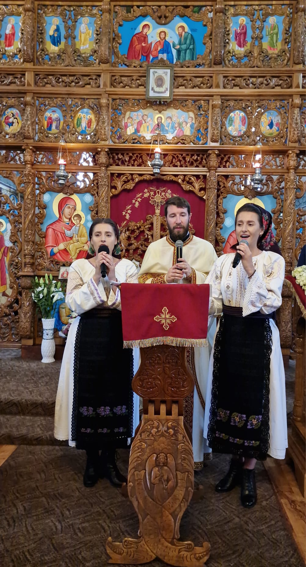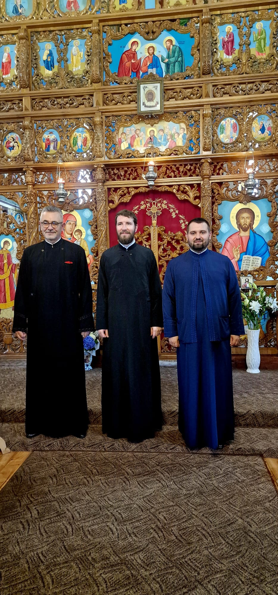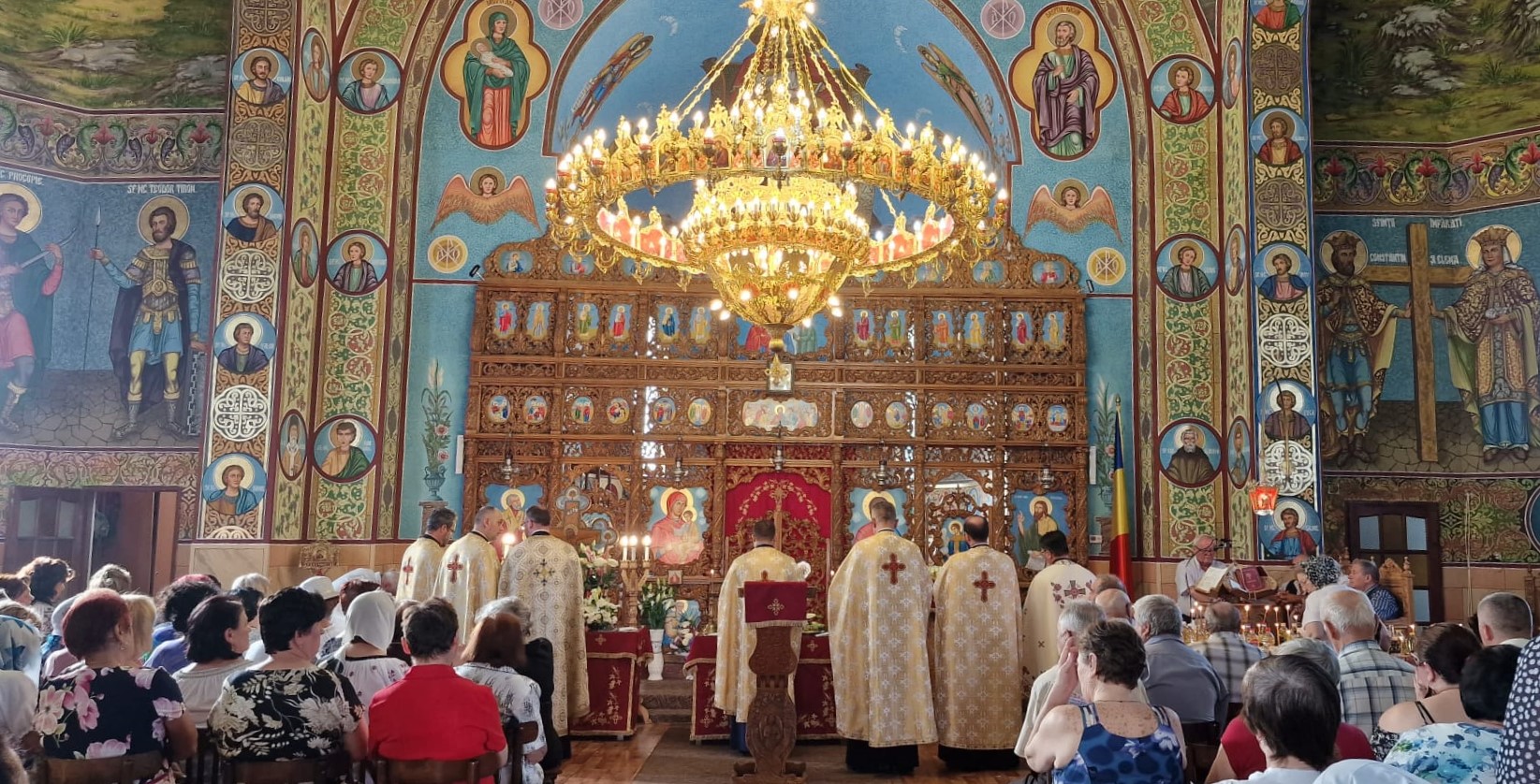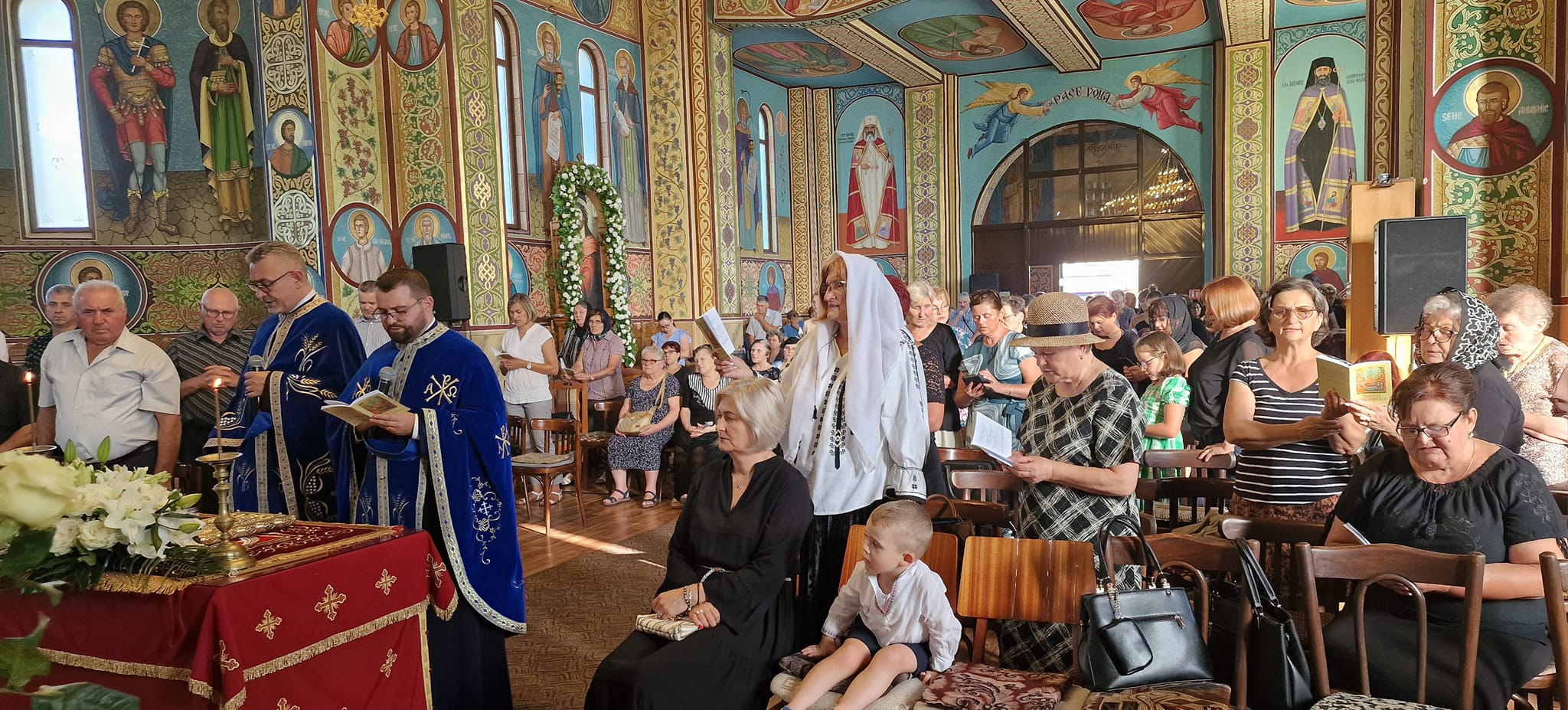 În zorii zilei de 15 august a.c., când întreaga suflare creștin-ortodoxă cinstește mutarea Maicii Domnului de-a dreapta Preaiubitului Său Fiu, Mântuitorul nostru Iisus Hristos, biserica a devenit neîncăpătoare, credincioșii așteptând cu mare bucurie momentul Ospățului Euharistic pregătit de Însuși Mirele Vieții, Mântuitorul Iisus Hristos. Invitatul special al zilei a fost părintele Vlad Roșu, slujitor la Catedrala mitropolitană „Sfântul Spiridon Nou” – paraclis patriarhal din București și membru în Grupul psaltic „Tronos” al Patriarhiei Române, care a poposit în mijlocul nostru spre a încununa atmosfera festivă prin oficierea Sfintei Liturghii alături de preoții bisericii noastre și prin rostirea cuvântului de învățătură de înaltă zidire sufletească și duhovnicească. În acest sens, invitatul nostru a expus istoricul prăznuirii sărbătorii Adormirii Maicii Domnului, dar și viața curată și modestă a celei mai mari dintre Fecioare, cea care „e mai cinstită decât heruvimii și mai mărită fără de asemănare decât serafimii”.