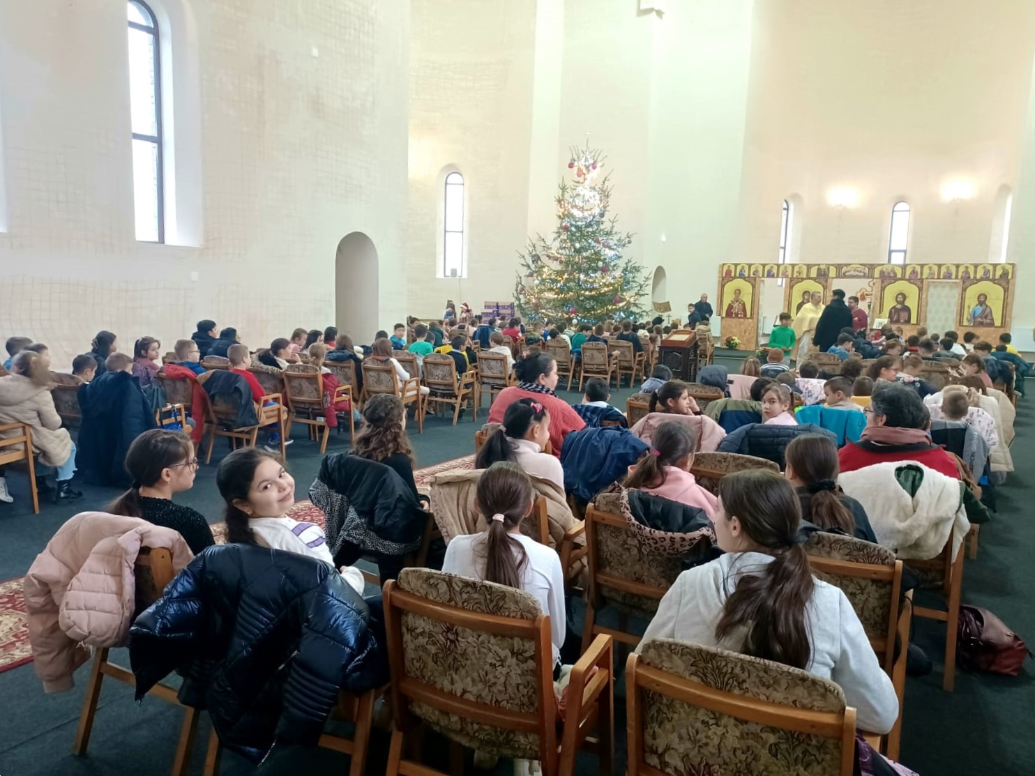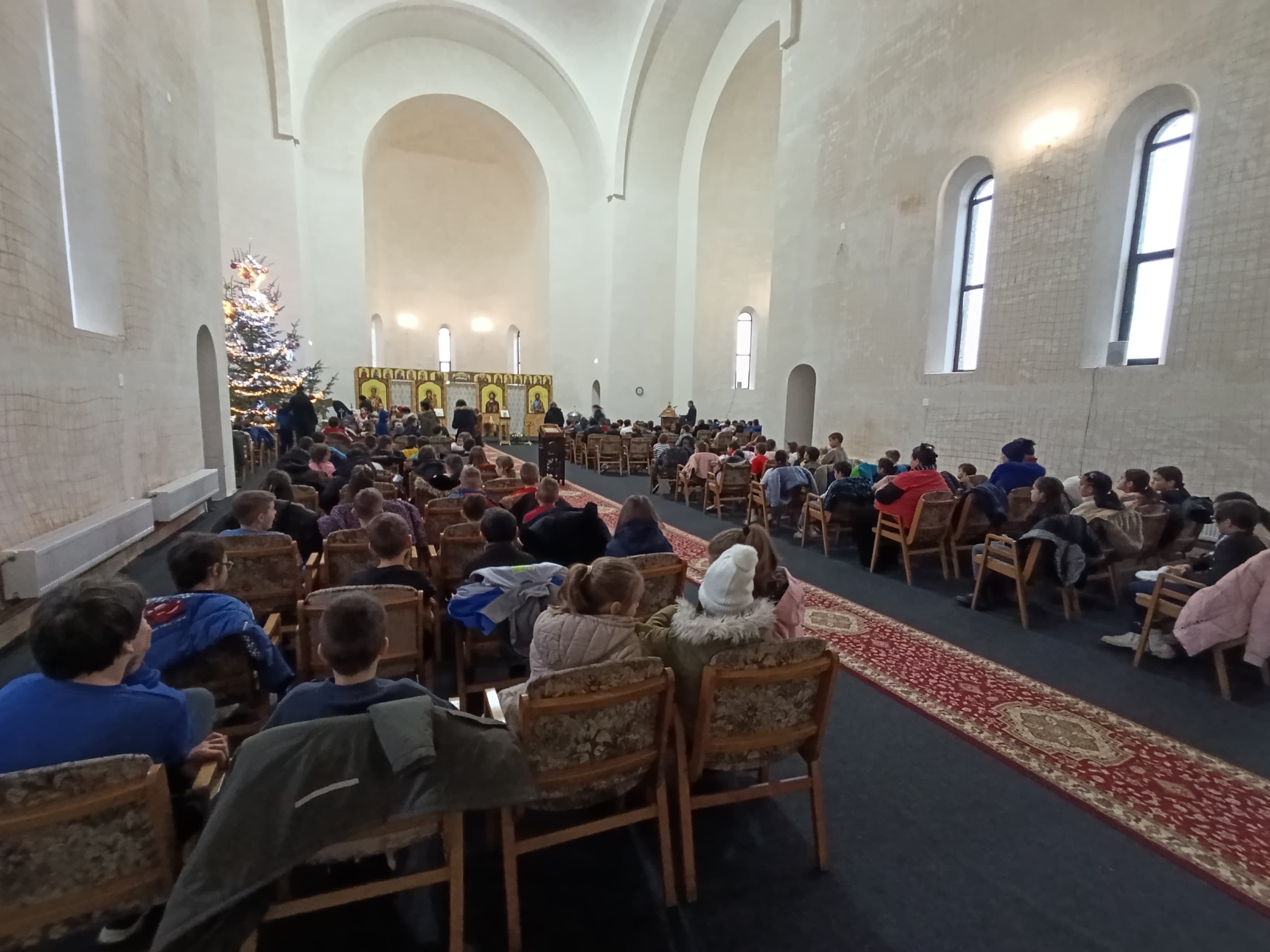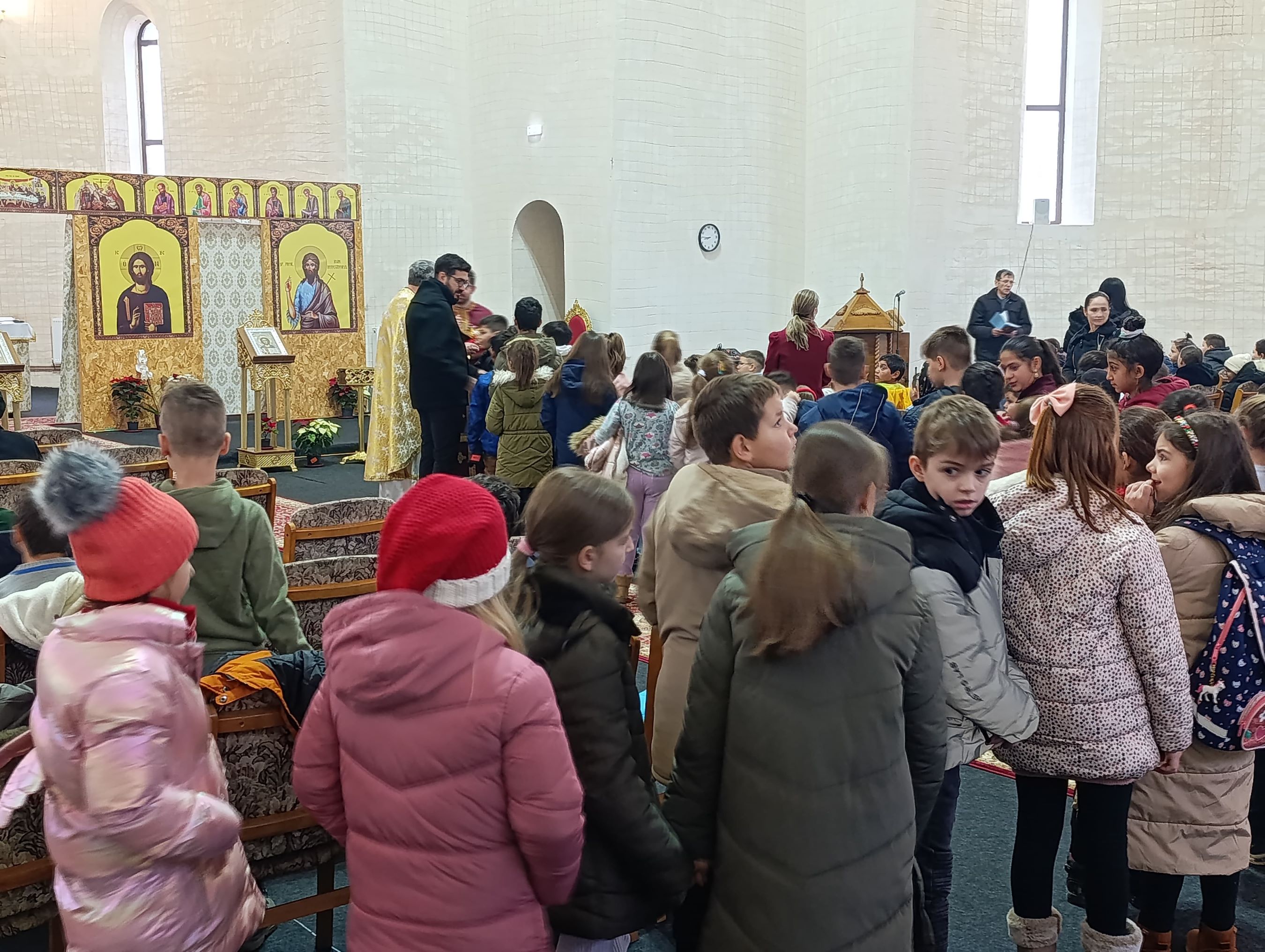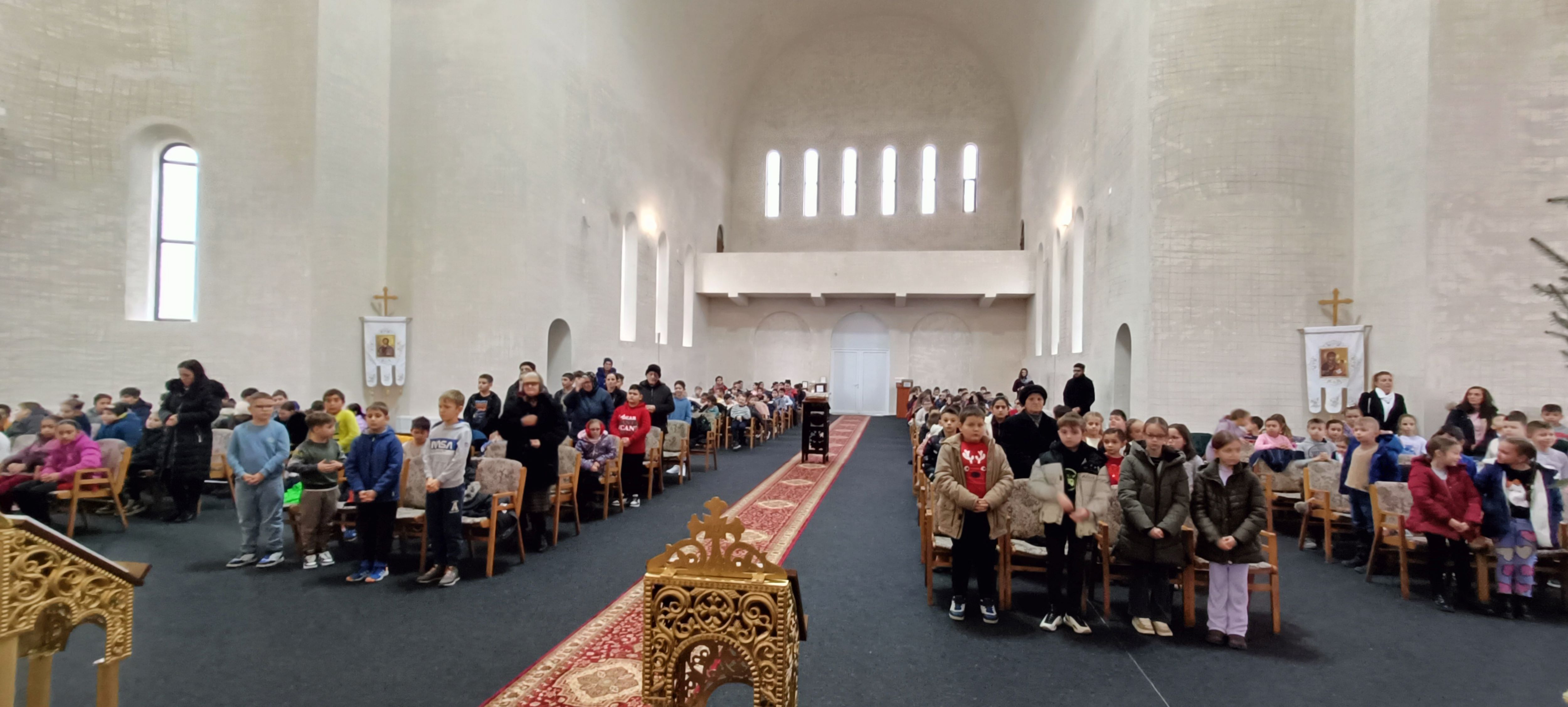 Copiii au adus darul lor Pruncului divin prin colindele pregătite, așternându-le în ieslea Betleemului sufletelor lor. Astfel, la momentul potrivit, au primit Taina Sfintei Euharistii. La finalul slujbei, în cuvântul de învățătură, părintele Adrian Pavel și părintele Iulian Suciu le-au vorbit elevilor despre importanța primirii Sfintelor Taine pentru a fi mai buni în viitorul ce va urma, dar și despre bucuria copilăriei cu Hristos, remarcând disciplina de care au dat dovadă în timpul slujbei.