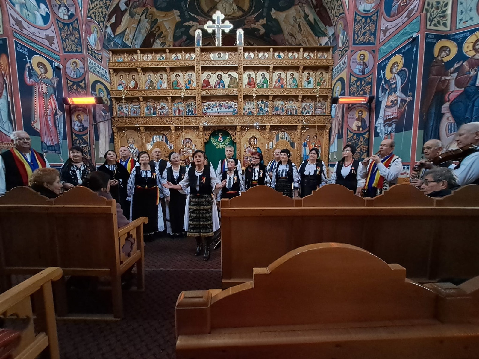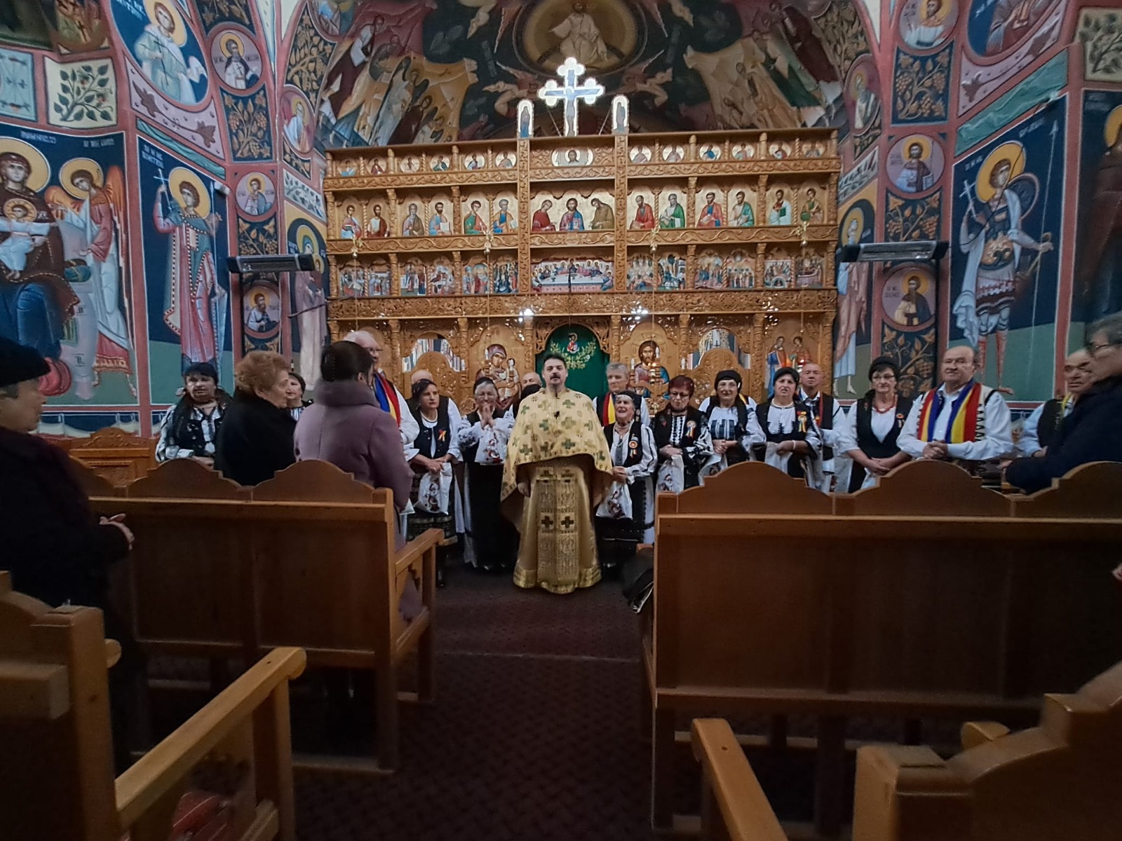 Ceata de colindători, formată din persoane cu vârsta de peste 60 de ani, a interpretat mai multe colinde tradiționale, spre încântarea celor prezenți. La finalul momentului artistic, părintele paroh Sebastian Țandea i-a feliciat pe membrii Ansamblului folcloric, îndemnându-i să păstreze și să promoveze pe mai departe tradițiile românești. În semn de mulțumire și apreciere, părintele paroh le-a oferit acestora daruri, adresându-le cuvinte de folos sufletesc.