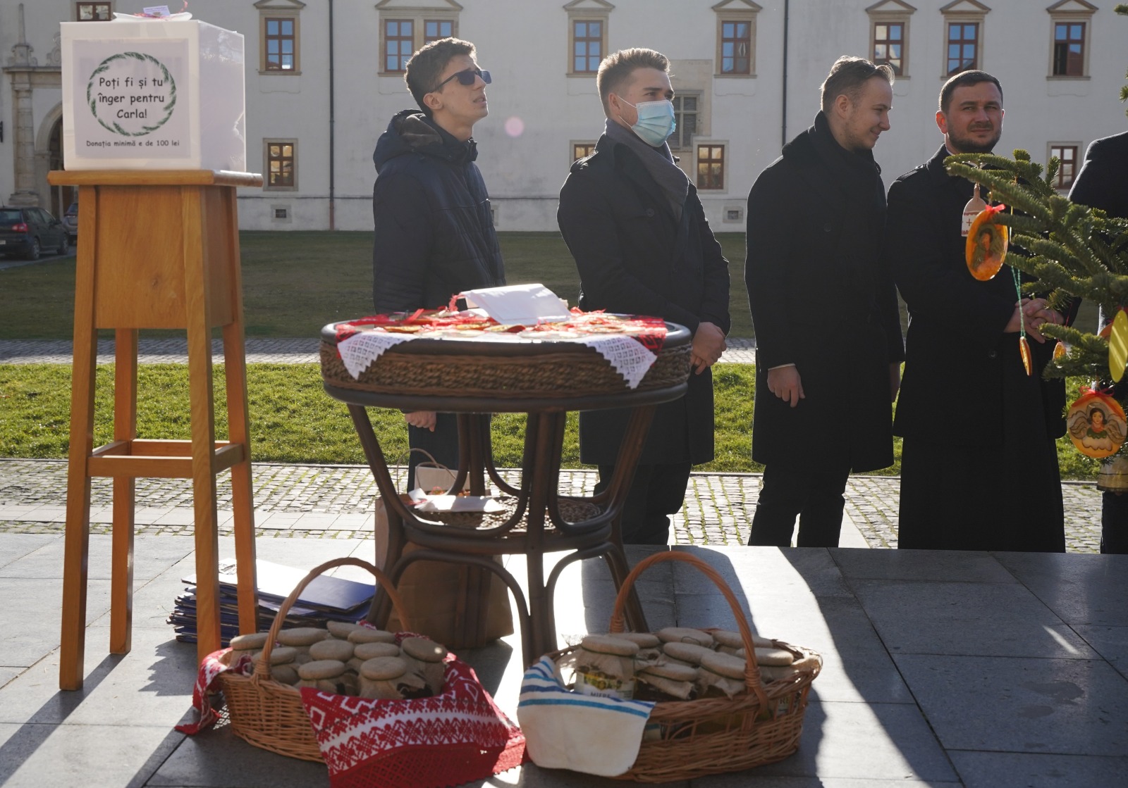 Pe parcursul întregii zile de ieri, în apropierea Catedralei Reîntregirii a fost împodobit un brad cu îngeri, realizați de către elevii și profesorii Colegiului Economic „Dionisie Pop Marțian” din Alba Iulia, coordonați de către doamnele profesoare Simona Himcinschi & Mihaela Basarabă, și de către tinerii ascoriști albaiulieni, coordonați de către părintele Răzvan Brudiu. De asemenea, alte minunate podoabe, realizate de către artistul Mihai Ariciu, au împodobit bradul Carlei.