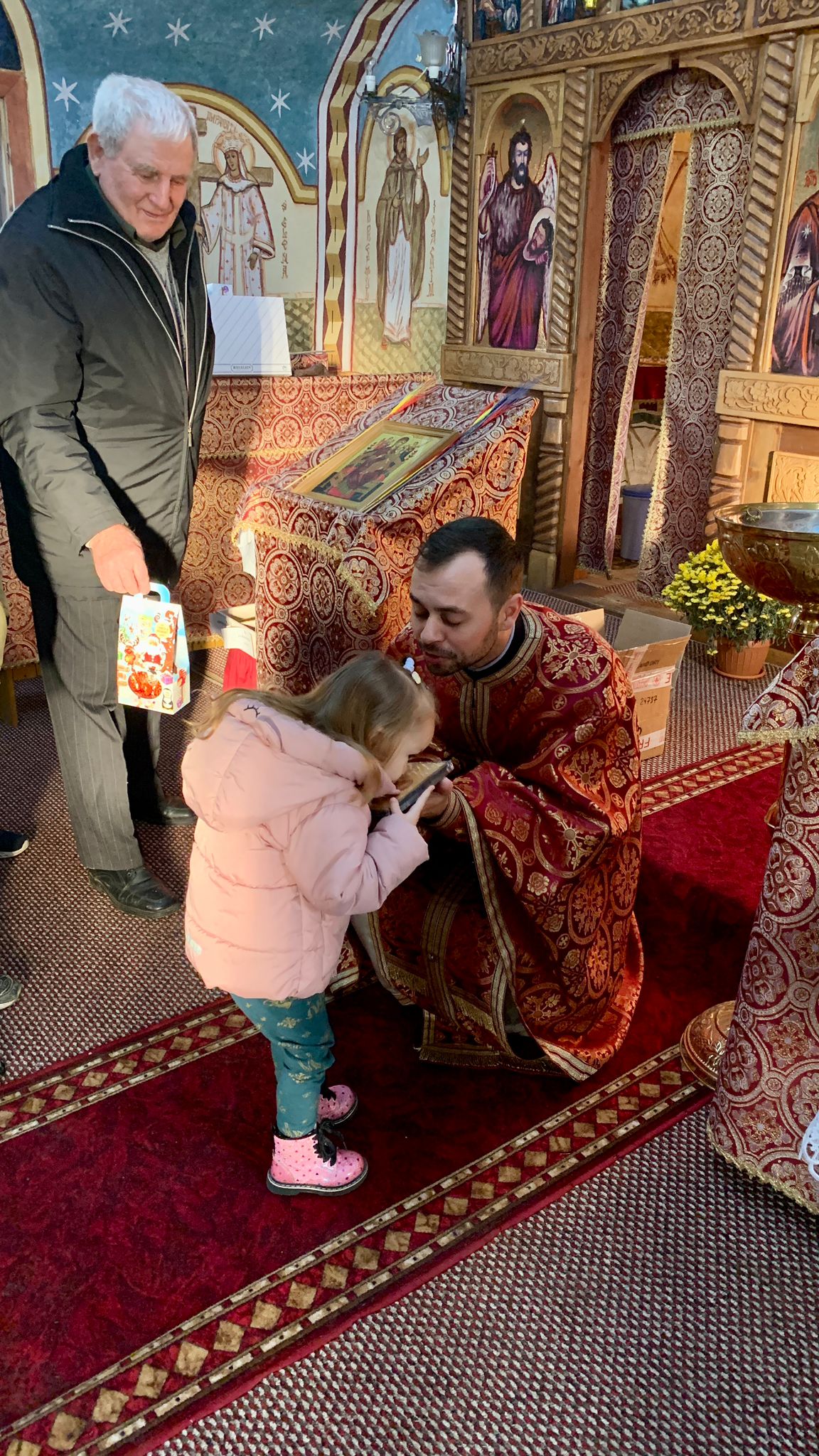 La final, părintele paroh le-a amintit celor prezenți că Sfântul Ierarh Nicolae, datorită vieții sale virtuoase și a minunilor săvârșite, este considerat ocrotitorul copiilor. Apoi, de la mic la mare, credincioșii au primit din partea parohiei câte o icoană cu Sfântul Ierarh Nicolae, iar copiilor le-au fost oferite daruri potrivite vârstei lor. Cu nădejde că vom mai avea parte de astfel de momente de bucurie duhovnicească, îl rugăm pe Sfântul Ierarh Nicolae să mijlocească rugăciunea noastră.