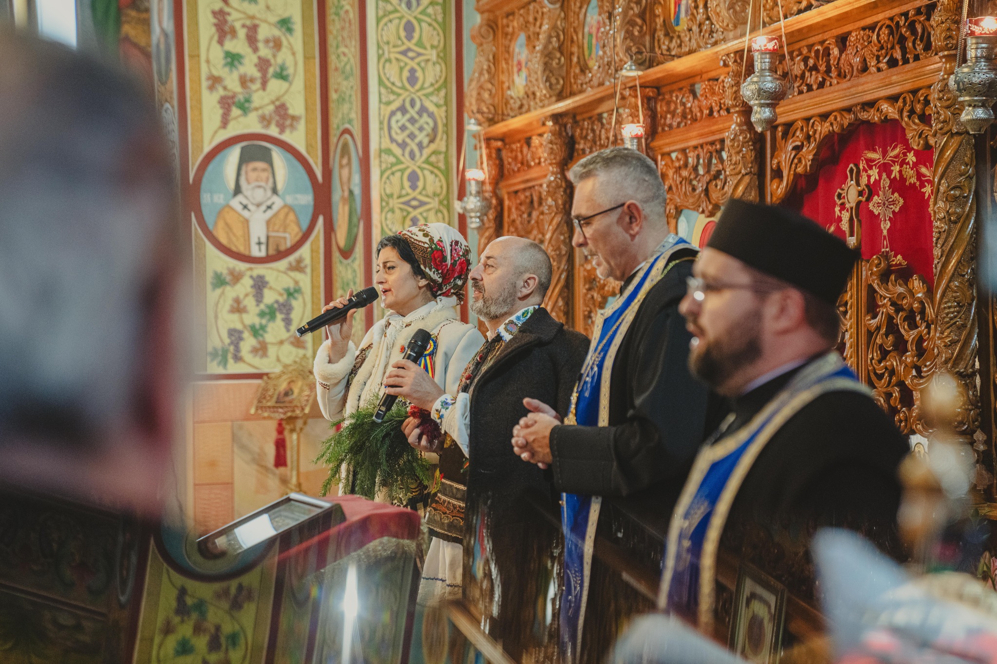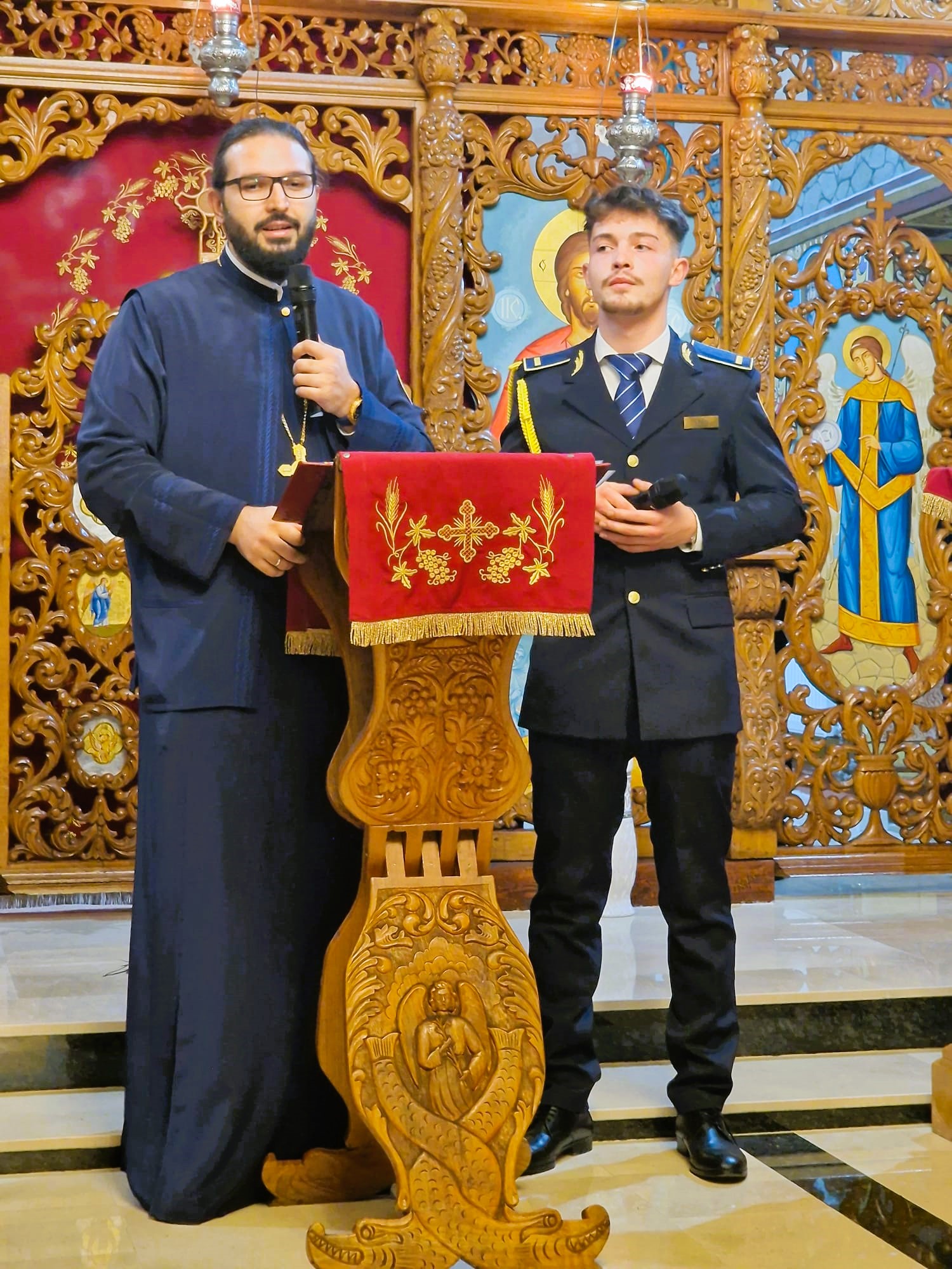 În data de 17 decembrie, în virtutea relaţiilor de colaborare şi prietenie cu Structura de tineret pentru judeţul Mureş a Departamentului de tineret şi Biroului de cateheză din cadrul Eparhiei Alba Iulia, o parte dintre partenerii care au sprijinit acțiunile culturale, de tineret și social-filantropice ale acesteia pe parcursul anului 2023, au poposit în mijlocul enoriașilor, spre a aduce slavă și mulțumire lui Dumnezeu pentru frumoasele rezultate atinse în beneficiul comunității din județul Mureș și, cum se putea altfel, dacă nu prin emoționantul colind străbun. Astfel, la finalul Sfintei Liturghii au răsunat glasurile cristaline ale copiilor și tinerilor din Grupul „Canto Melody”, coordonat de prof. Adrian Decean, iar emoția, bucuria și înalta trăire duhovnicească au atins apogeul când eroii favoriți ai copilăriei, dar și garanții siguranței tuturor, polițiștii care formează Grupul de colindători al Inspectoratului de Poliție Județean (IPJ) Mureș, și-au făcut apariția, vestind, cu multă evlavie și bucurie Nașterea Domnului, printr-un ales mănunchi de colinde. La ceas de seară, după slujba Vecerniei, a avut loc concertul de colinde tradiționale cu scop caritabil intitulat „Sara bună, Om preabunu’!”, prilej cu care am primit vizita părintelui capelan Marius Soponaru și a domnului agent de poliție penitenciară Emanuel Stan, din cadrul Penitenciarului de Maximă Siguranță Aiud, precum și a tinerelor interprete de muzică populară Teodora Suciu, din zona Mureșului, respectiv Maria și Andreea Pavelean, de pe Valea Bârgăului, ucenice ale regretatei Valeria Peter Predescu.