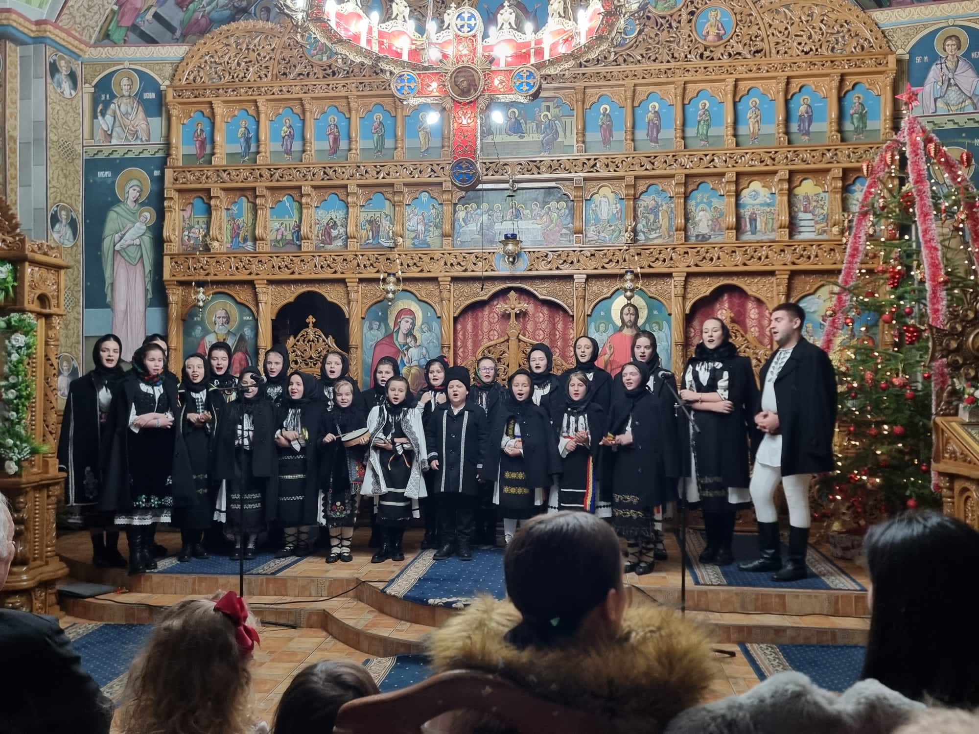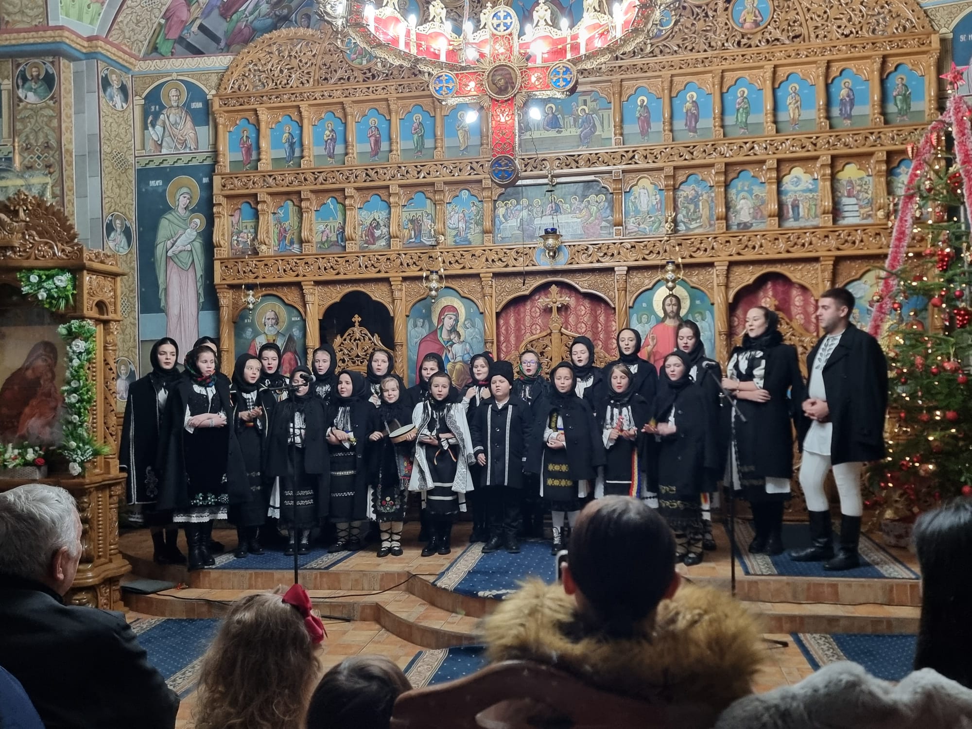 Cu binecuvântarea Înaltpreasfințitului Părinte Irineu, Arhiepiscop al Alba Iuliei, duminică, 10 decembrie 2023, în biserica cu hramul „Izvorul Tămăduirii” din Câmpeni a avut loc un frumos concert de colinde. Evenimentul a fost organizat de Parohia Ortodoxă „Izvorul Tămăduirii” Câmpeni și a reunit participarea mai multor cete de colindători, care au adus bucurie pe chipurile numeroșilor credincioși prezenți la eveniment. Întrucât este îndeobște cunoscut faptul că cea mai firească formă de propovăduire a bucuriei Crăciunului este colindul, am trăit și noi bucuria comuniunii în colind. În atmosfera de altădată a satului românesc autentic, ne-au încântat sufletele următoarele grupuri de colindători îmbrăcați în port popular: Ansamblul „Brădeana” Sohodol, Ansamblul „Cupru Min” Abrud și corul de copii al parohiei noastre.