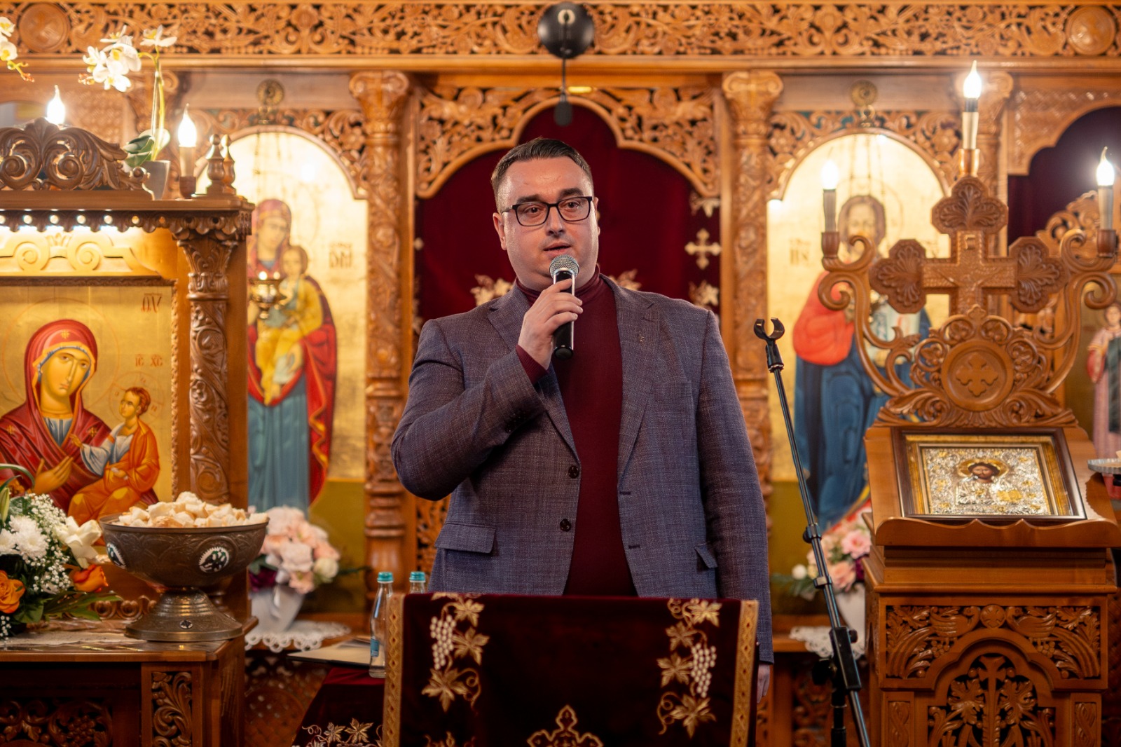 După Sfânta Liturghie, credincioșii au fost încântați de un emoționant concert de colinde și cântări patriotice. Au cântat elevii Seminarului Teologic „Sfântul Simion Ștefan” din Alba Iulia, domnul Gabriel Bucur, directorul Școlii Gimnaziale „Avram Iancu” din Alba Iulia și absolvent al Seminarului Teologic în anul 2006, solistele Iulia Bucur și Florina Oprea, precum și domnul Petru Covrig, fiu al satului, profesor de religie și, la rândul său, absolvent al Seminarului Teologic. Prin glasurile lor, sărbătoarea a căpătat lumină, emoție și profunzime, pregătind sufletele pentru praznicul Nașterii Domnului.