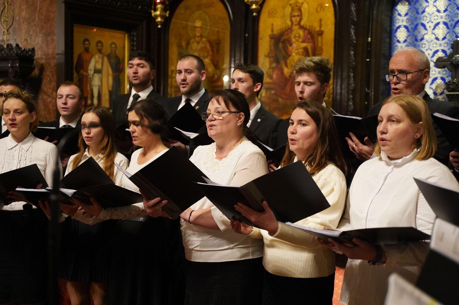 Ambele formațiuni corale au fost dirijate cu măiestrie de către părintele prof. univ. dr. Domin Adam, titularul catedrei de Muzică bisericească din cadrul Facultății de Teologie Ortodoxă din Alba Iulia. Ansamblurile vocale au interpretat colinde și cântece religioase specifice Praznicului Nașterii Domnului, atât din repertoriul bisericesc, cât și din sfera creațiilor populare. La eveniment a fost prezent părintele prof. univ. dr. habil. Mihai Himcinschi, decanul Facultății de Teologie Ortodoxă din Alba Iulia, care a adresat alese cuvinte de felicitare tuturor studenților implicați în cadrul ansamblurilor corale. Alături de părintele decan, la concert s-au aflat de față părintele lect. univ. dr. Oliviu Botoi, consilier cultural al Eparhiei Alba Iuliei, și părintele arhid. lect. univ. dr. Răzvan Brudiu.