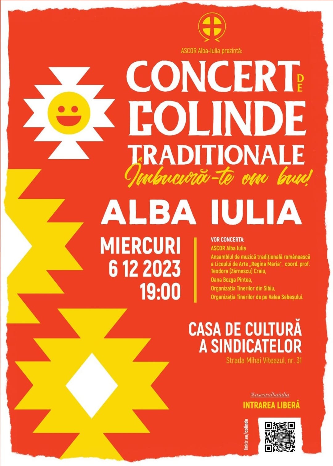 Cu binecuvântarea Înaltpreasfințitului Părinte Arhiepiscop Irineu, ASCOR Alba Iulia organizează prima ediție a concertului de colinde tradiționale „Îmbucură-te, om bun!”. Evenimentul se va desfășura miercuri, 6 decembrie 2023, de sărbătoarea Sfântului Ierarh Nicolae, începând cu ora 19.00, la Casa de Cultură a Sindicatelor din orașul Marii Uniri. Pe scenă vor urca, alături de membrii ASCOR Alba Iulia, și alte cete de colindători, dintre care amintim: Ansamblul de muzică tradițională românească al Liceului de Arte „Regina Maria”, coordonat de prof. Teodora (Zărnescu) Craiu, Grupul Organizației Tinerilor din Sibiu și Grupul Organizației Tinerilor de pe Valea Sebeșului. Totodată, publicul albaiulian se va putea bucura și de un recital de colinde oferit de îndrăgita interpretă de muzică populară Oana Bozga-Pintea. Intrarea la eveniment este liberă, în limita locurilor disponibile.