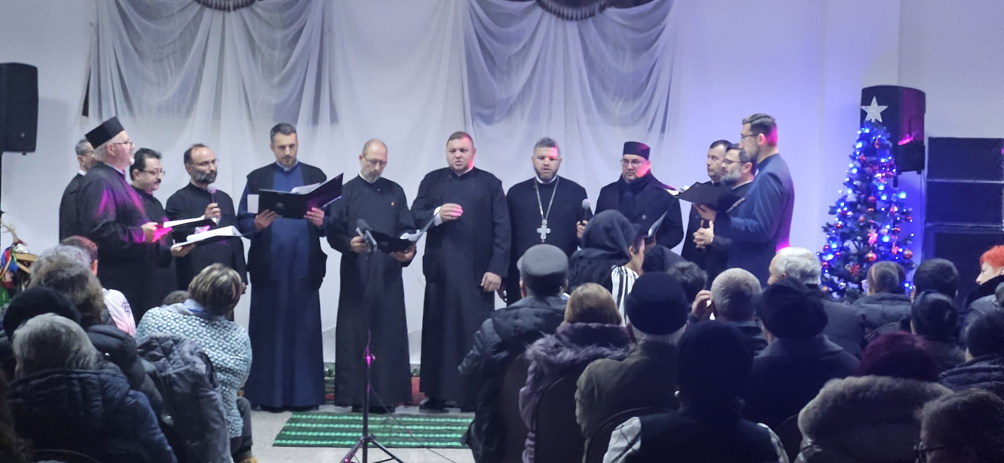 Un buchet de colinde a prezentat Corul „Eufonia” al Protopopiatului Ortodox Blaj, dirijat de părintele Mihai Bedelean, după care părintele protopop Ovidiu Pop, care a fost prezent la acest eveniment, ne-a pus la suflet un cuvânt duhovnicesc. În continuarea concertului, ne-au încântat cu vocile lor interpreții de muzică populară Cristina Dolcoș, Daria Costea, Alexandru Zaharia, Teodora Hațegan, Roxana Schiau, Cristina Haneș, Tudor Sacui, Maria Antonia Lazăr, familia Matyas din Mediaș, Tudor Frățilă, grupul de colindători din Sâncel, coordonat de părintele Claudiu Moldovan, și grupul de colindători din Valea-Lungă, coordonat de prof. Călina Comșa. La final, am mulțumit tuturor invitaților și credincioșilor prezenți la acest eveniment, participând împreună la o agapă frățească.
