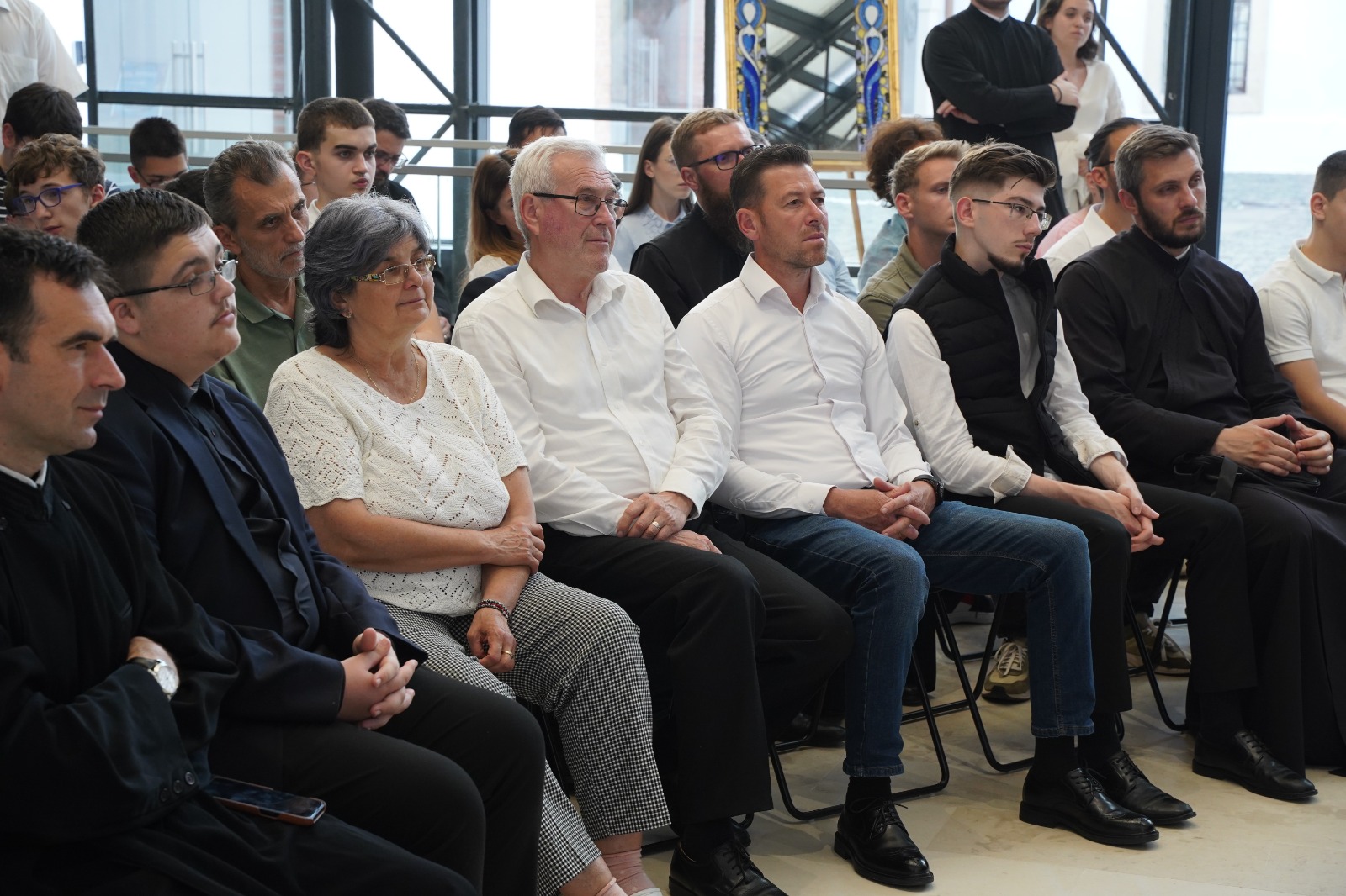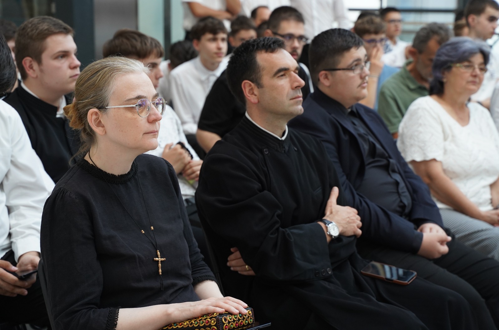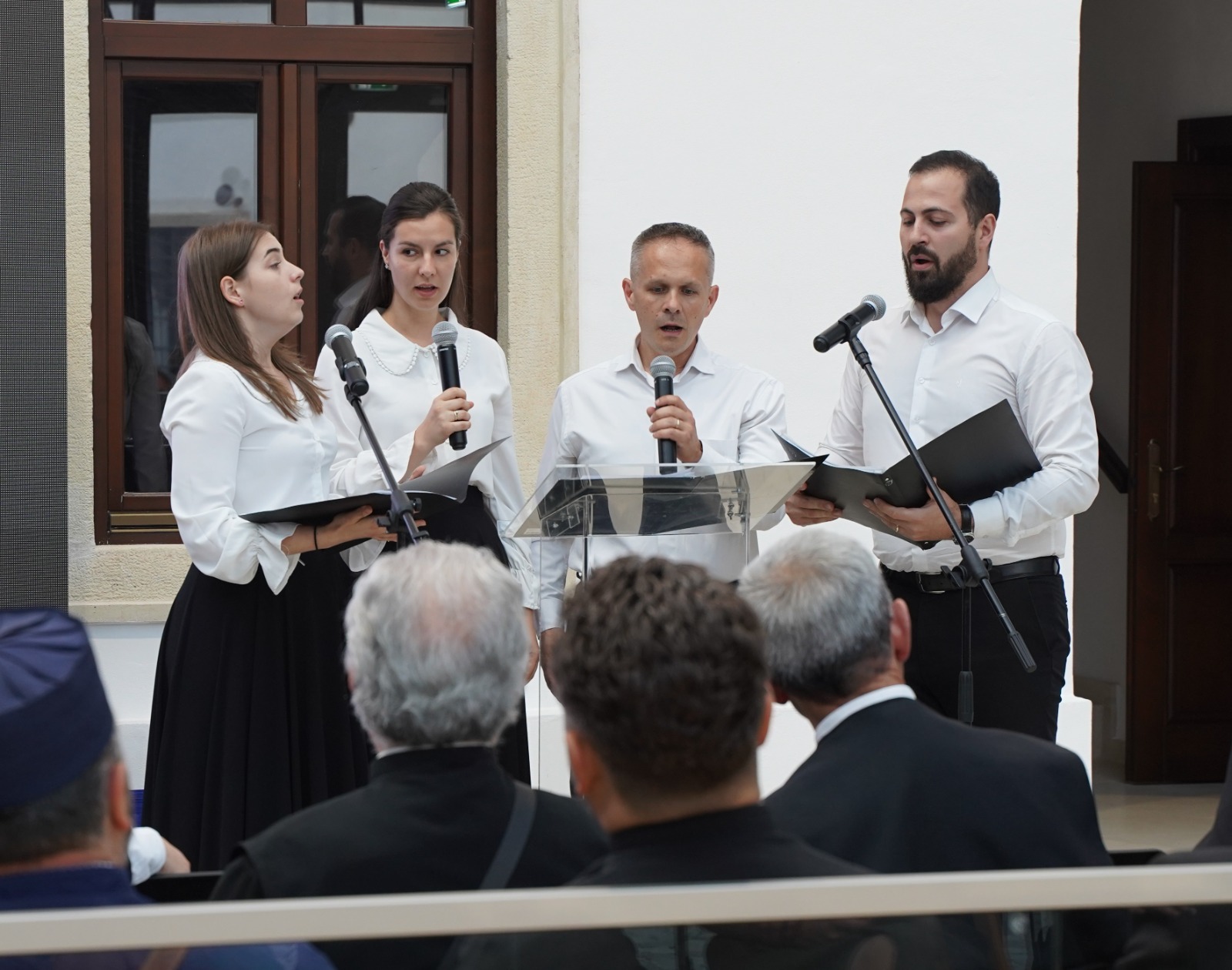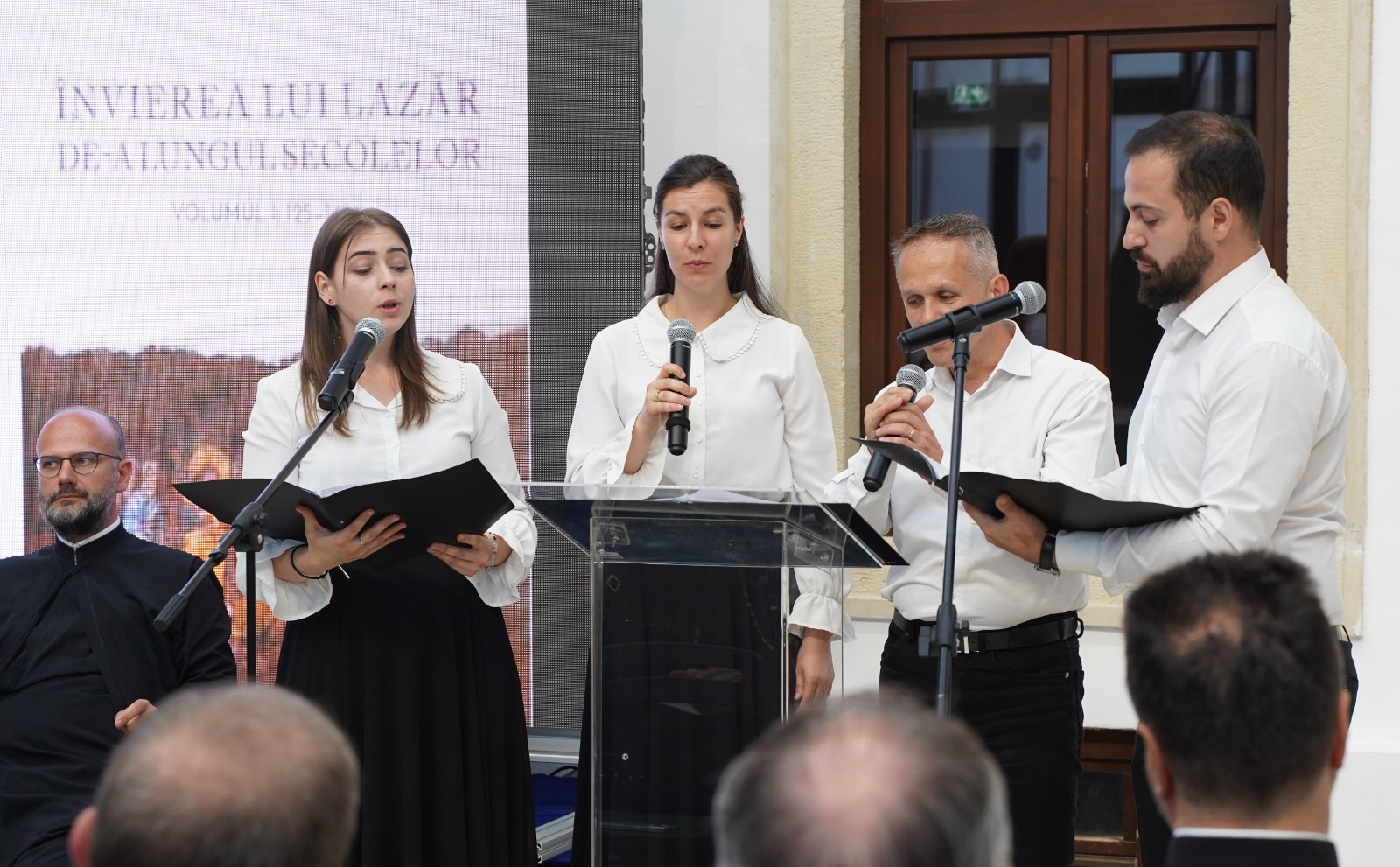 Evenimentul cultural-academic și duhovnicesc dedicat aniversării a trei decenii de activitate a ASCOR Alba Iulia a fost înnobilat printr-un recitat muzical-artistic deosebit. În ultima parte a manifestării, Grupul vocal „Synavlia” din Cluj-Napoca a încântat auditoriul prin interpretarea armonioasă și simfonică a unui buchet de cântece corale românești. Formațiunea vocală, alcătuită din absolvenți ai Academiei Naționale de Muzică „Gheorghe Dima”, a fost înființată în anul 2020. În încheiere, părintele arhid. conf. univ. dr. Răzvan Brudiu a mulțumit în mod deosebit părintelui dr. Bogdan Tătaru-Cazaban pentru prezența în mijlocul comunității ASCOR Alba Iulia și pentru prelegerea științifică și duhovnicească deosebită, precum și membrilor Grupului vocal „Synavlia” pentru prestația muzical-artistică de excepție.