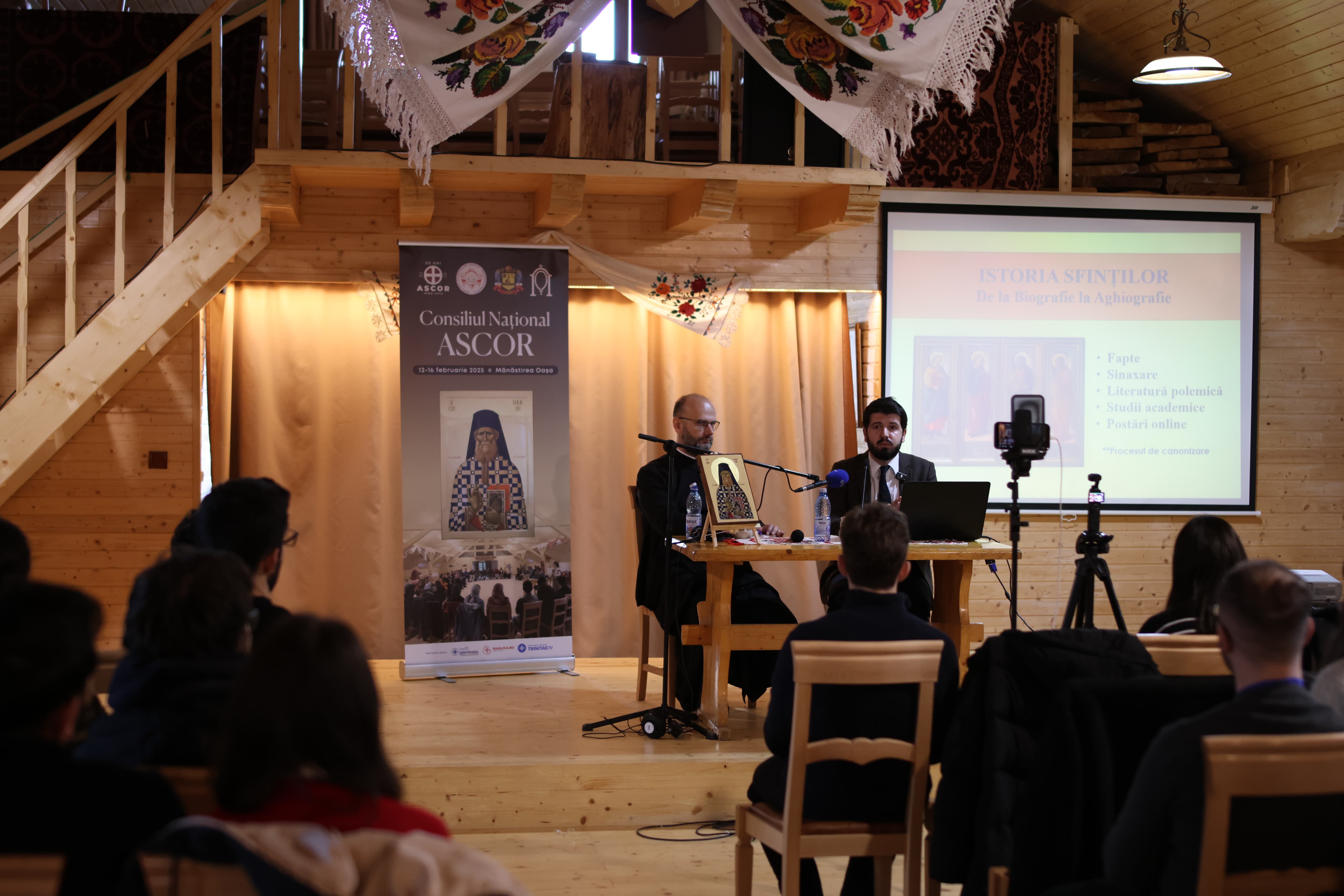Evenimentele cultural-duhovnicești și activitățile interactive care compun programul Taberei Naționale ASCOR „Sfântul Cuvios Dometie cel Milostiv de la Râmeț” au continuat și în a doua parte a zilei de vineri, 14 februarie 2025. Începând cu ora 14.00, alături de tinerii prezenți la Mănăstirea Oașa s-a aflat domnul dr. Ioan-Daniel Manolache, licențiat în Teologie Ortodoxă (Cluj-Napoca, 2018) și doctor în Teologie Ortodoxă (București, 2024). Domnia sa a susținut conferința cu titlul „Receptarea Sfântului Dometie Manolache în Ortodoxia Românească – între fapte istorice și relatări populare”, evenimentul fiind moderat de către părintele arhid. conf. univ. dr. Răzvan Brudiu, cadru didactic universitar și coordonatorul ASCOR Alba Iulia.