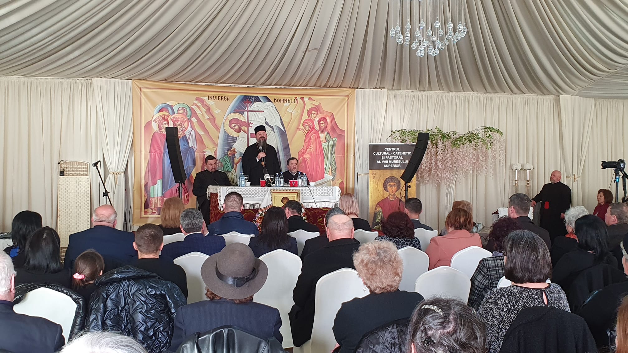 La eveniment a fost prezent părintele protopop Valentin Vârva și numeroși preoți din protoieria Reghin, alături de care s-au aflat doamna Mara Togănel, Prefectul Județului Mureș, oficialități centrale și locale, oameni de cultură, precum și un număr mare de credincioși din zonă. Părintele Sergiu Andone, coordonatorul Centrului Cultural-Catehetic și Pastoral „Sfântul Mare Mucenic Pantelimon”, a fost cel care a adresat cuvântul de bun venit invitatului, subliniind faptul că este prima conferință susținută de Preasfințitul Părinte Episcop Macarie pe Valea Mureșului Superior. În cadrul conferinței, Preasfinția Sa a evidențiat rolul important al celor vârstnici în societate, punându-le la suflet celor prezenți importanța cinstirii de către tineri a celor care au ajuns la căruntețile bătrâneții. Conferința duhovnicească a fost încununată de Corul „Ecclesia” al preoților din protopopiatul Reghin, care au interpretat mai multe cântece religioase specifice Postului Mare.