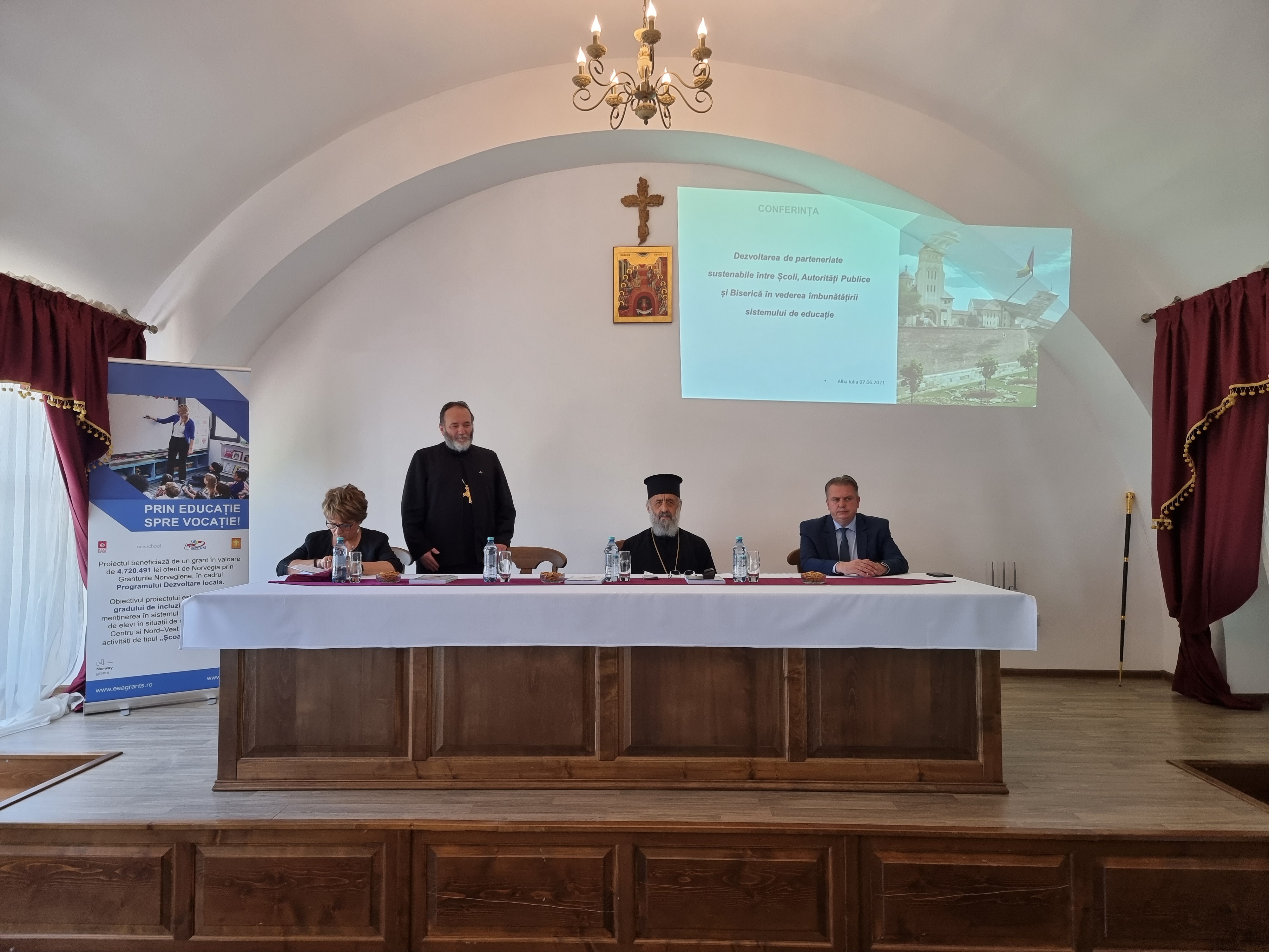 Începând cu ora 12.00, Înaltpreasfințitul Părinte Irineu, Arhiepiscop al Alba Iuliei, a participat la conferința „Dezvoltarea de parteneriate sustenabile între şcoli, autorităţi publice şi Biserică în vederea îmbunătăţirii sistemului de învăţământ”, organizată în cadrul proiectului „Prin educaţie spre vocaţie”, derulat de către Sectorul social-misionar al Arhiepiscopiei Alba Iuliei.