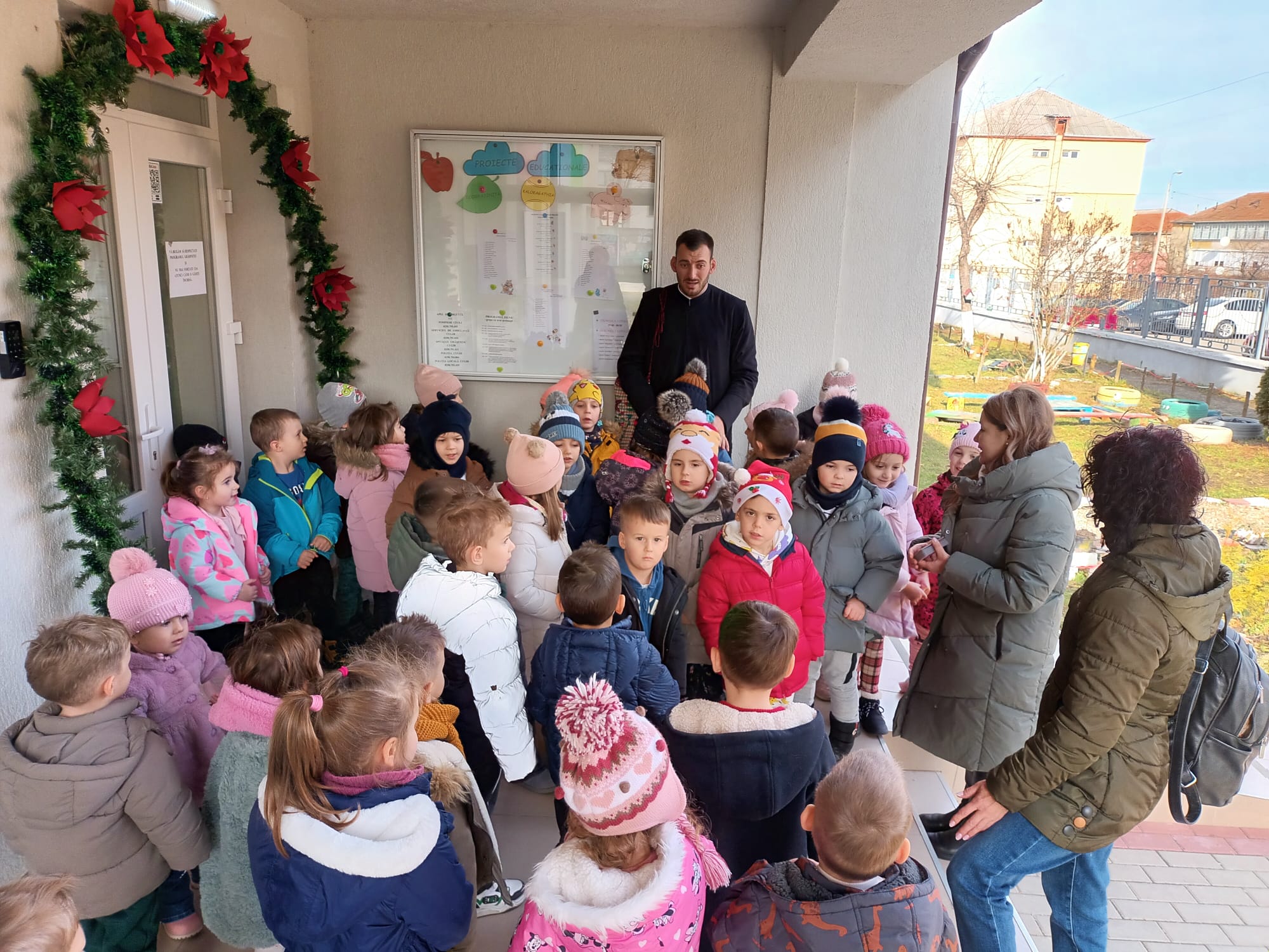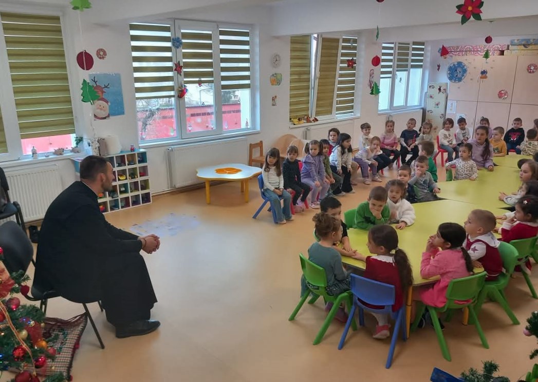 În data de 18 decembrie 2024, cu câteva zile înainte de marele Praznic al Nașterii Domnului nostru Iisus Hristos, în incinta Grădiniței cu Program Prelungit „Prichindel” – structură a Școlii Gimnaziale „Singidava” din orașul Cugir –, s-a desfășurat o activitate educațional-religioasă sub genericul „Mai vino, Doamne, pe la noi!”. Cu acest prilej, părintele Răzvan Oprea, preot al parohiei Băcăinți cu filia Sărăcsău, a efectuat o vizită în cadrul instituției de învățământ, pentru a le rosti copilașilor un cuvânt despre însemnătatea Marelui Praznic al Nașterii Domnului Iisus Hristos.