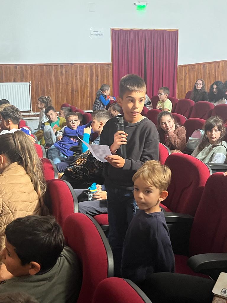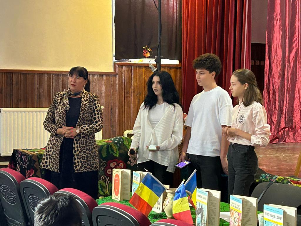 Prof. Pop Elena a întregit și concretizat experiențele de învățare ale elevilor săi din clasa a VIII-a, care au obținut locul III la faza națională de creativitate. Cei trei olimpici au vorbit despre munca lor de după ore, soldată cu un succes de apreciat, stimulând astfel interesul celor de față pentru studiu. Copiii de la Centrul de Zi „Sf. Serafim de Sarov” din Războieni și Așezământul Social „Sfântul Mucenic Ciprian” din Ocna Mureș ne-au emoționat cu versuri decupate din poezii adecvate evenimentului. Mereu prezentă prin activități artistice, Liliana Stoica a completat activitatea noastră cu cântecele populare a doua fetițe iubitoare de folclor. Ceea ce nu necesită descriere, apare în fotografia care ne-a unit pe scenă, elevi și dascăli, prin zâmbete de mulțumire.