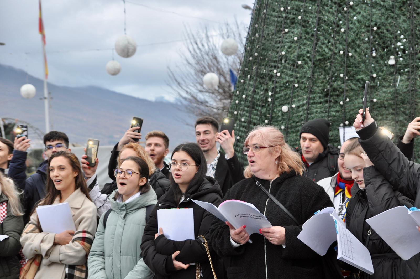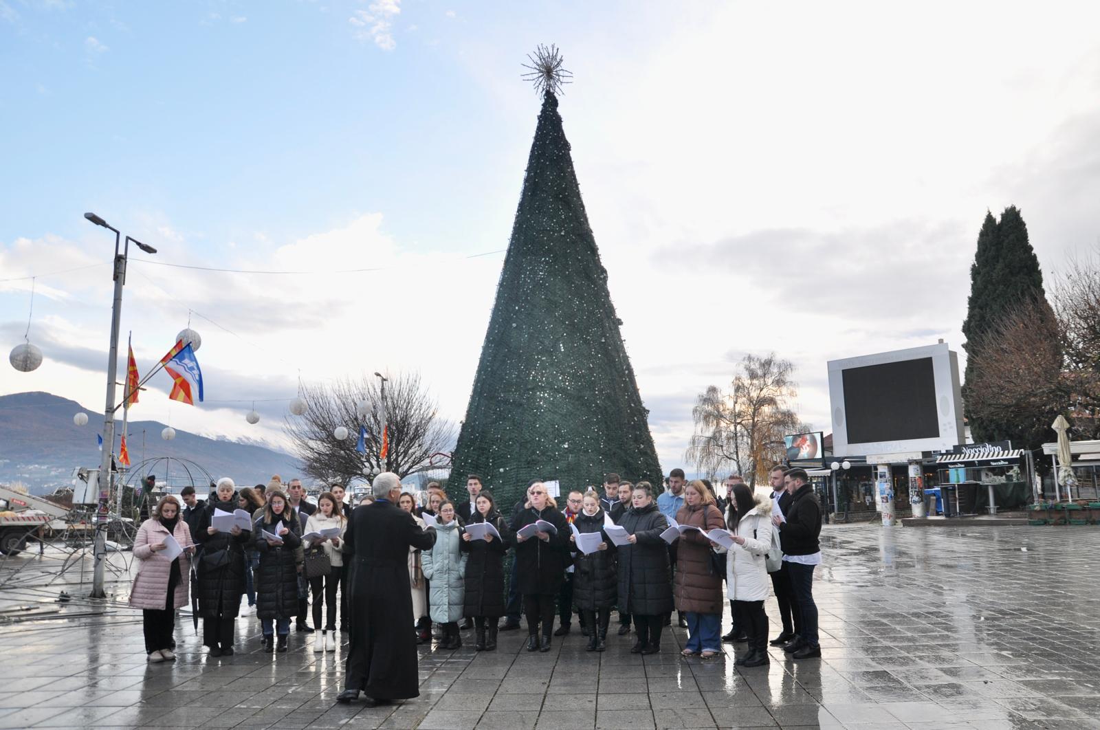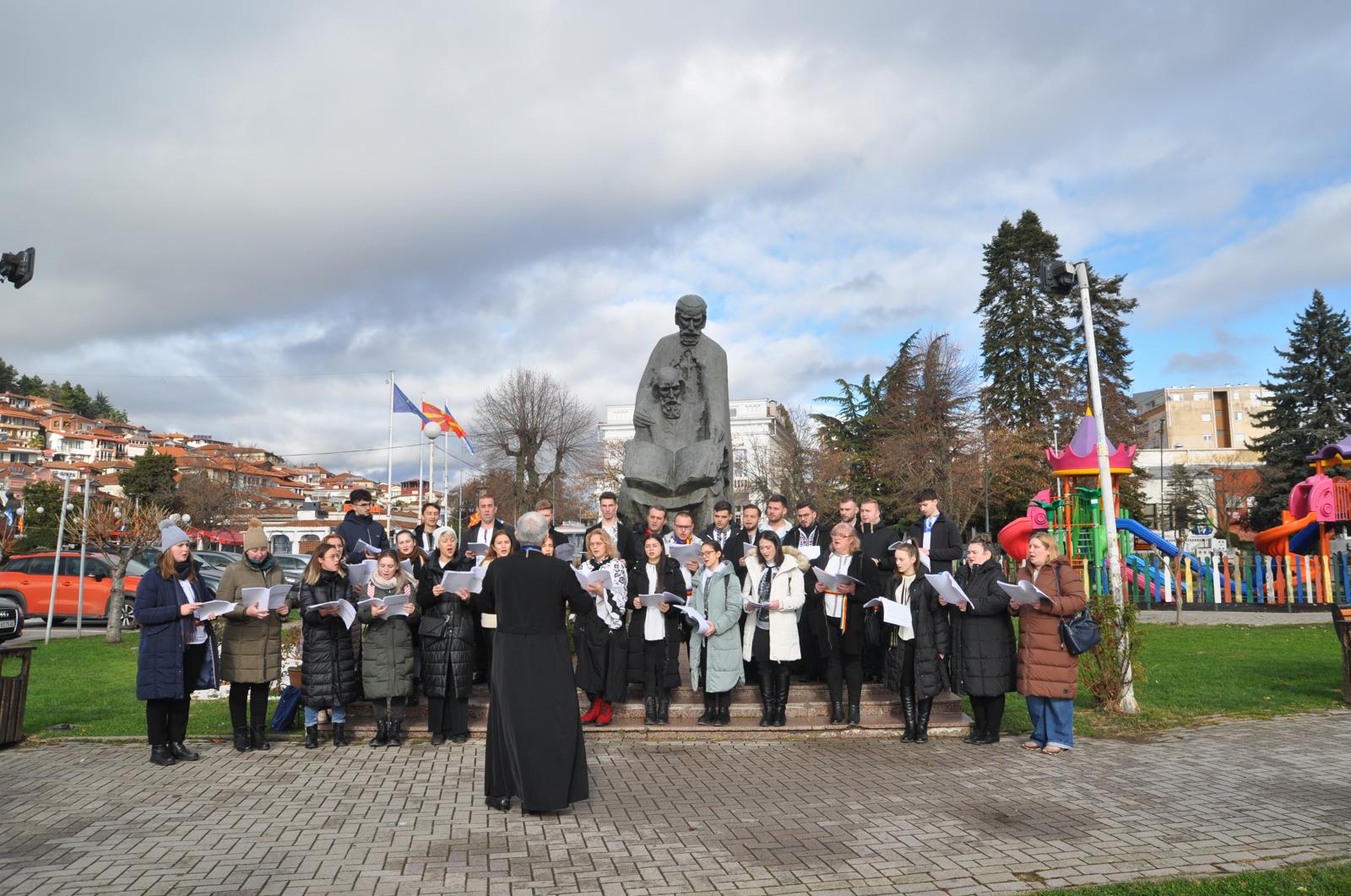 Un moment deosebit al itinerariului studenților teologi a fost reprezentat de vizitarea orașului Ohrida, un loc cu o deosebită semnificație spirituală și culturală pentru Ortodoxia răsăriteană. În fața statuii ridicate în cinstea Sfinților Chiril și Metodiu, „apostolii slavilor”, tinerii albaiulieni au susținut un concert de colinde, transmițând prin cântările lor bucuria sărbătorilor de iarnă. De asemenea, ansamblul coral a interpretat colinde la biserica „Sfânta Sofia” din Ohrida, precum și în centrul vechi al orașului, unde studenții au avut bucuria de a inaugura Târgul de Crăciun.