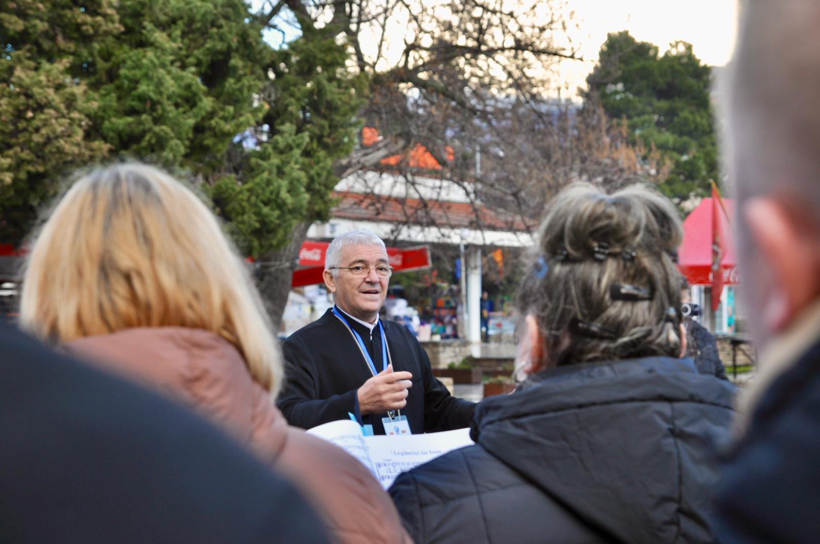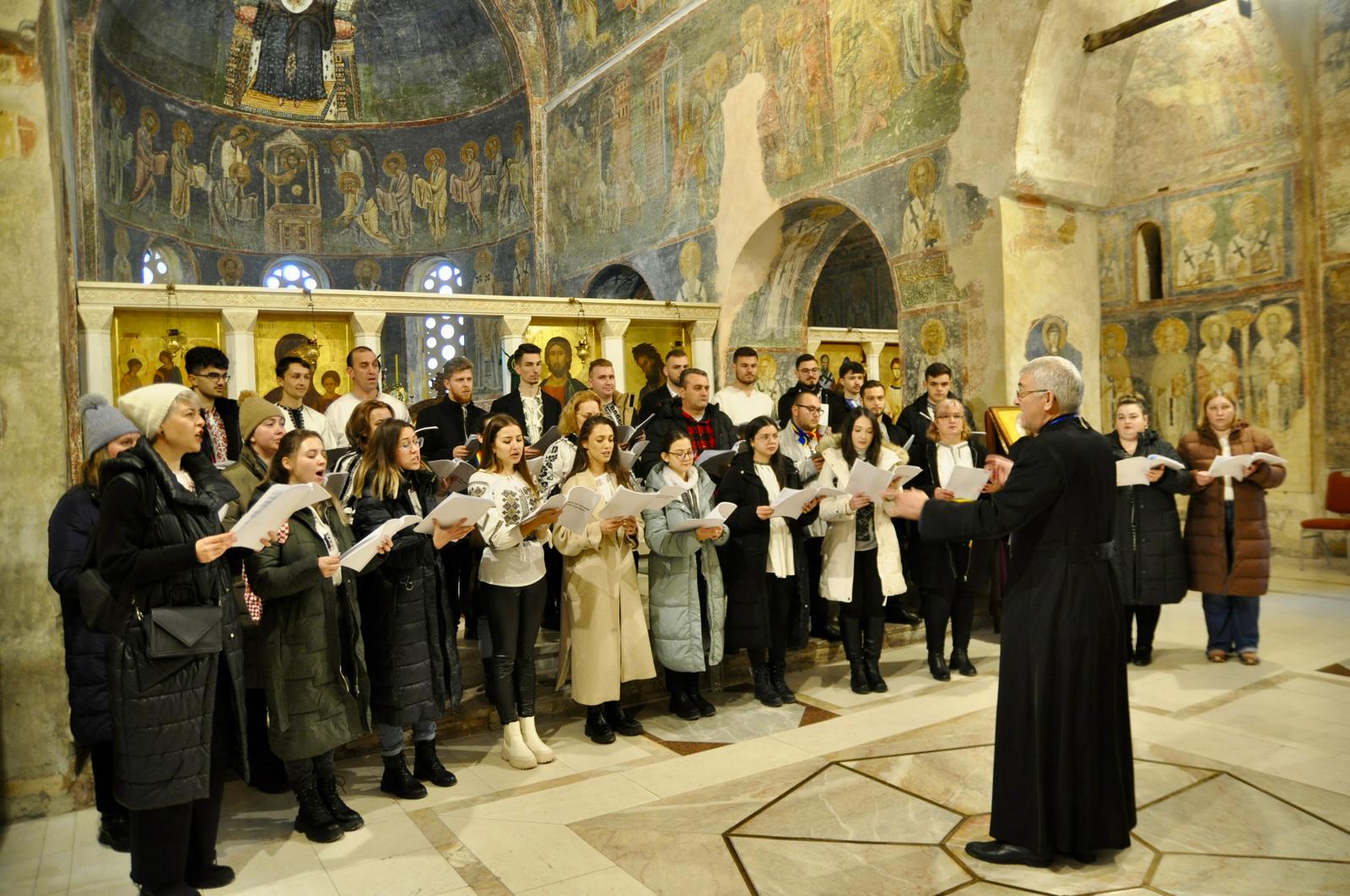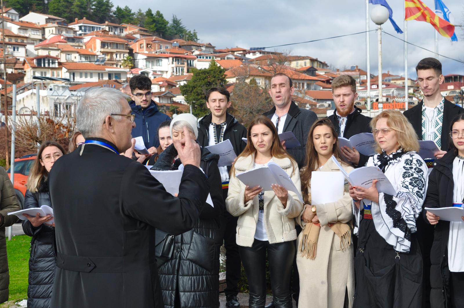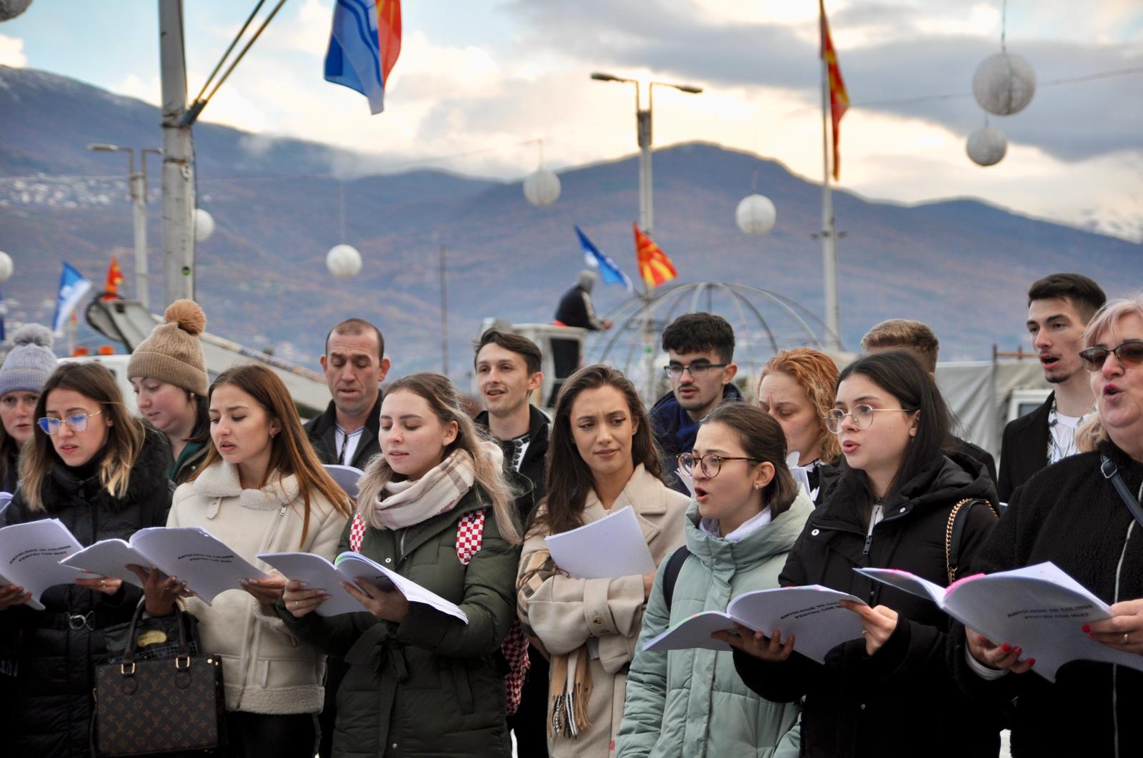 Un moment deosebit al itinerariului studenților teologi a fost reprezentat de vizitarea orașului Ohrida, un loc cu o deosebită semnificație spirituală și culturală pentru Ortodoxia răsăriteană. În fața statuii ridicate în cinstea Sfinților Chiril și Metodiu, „apostolii slavilor”, tinerii albaiulieni au susținut un concert de colinde, transmițând prin cântările lor bucuria sărbătorilor de iarnă. De asemenea, ansamblul coral a interpretat colinde la biserica „Sfânta Sofia” din Ohrida, precum și în centrul vechi al orașului, unde studenții au avut bucuria de a inaugura Târgul de Crăciun.