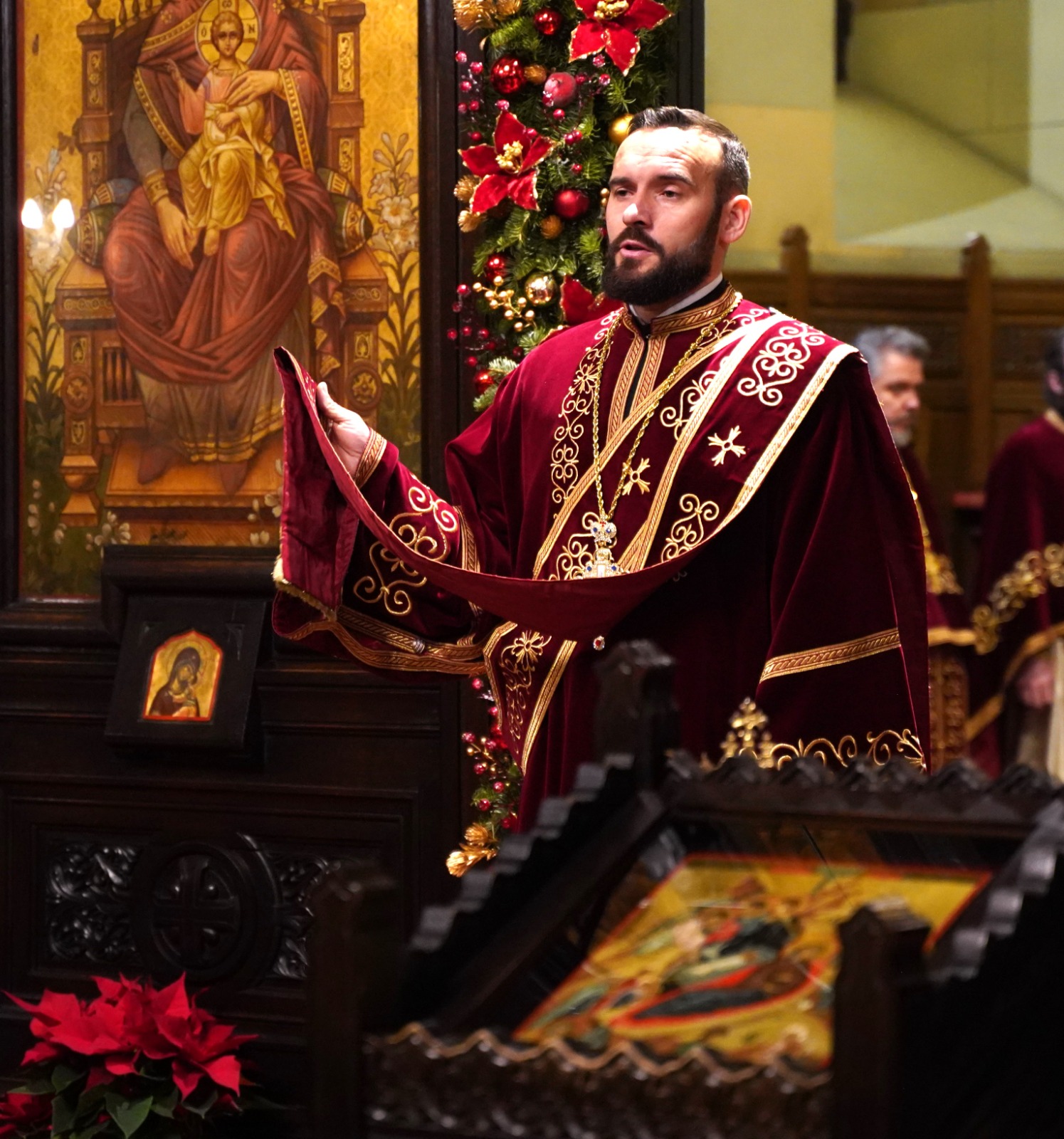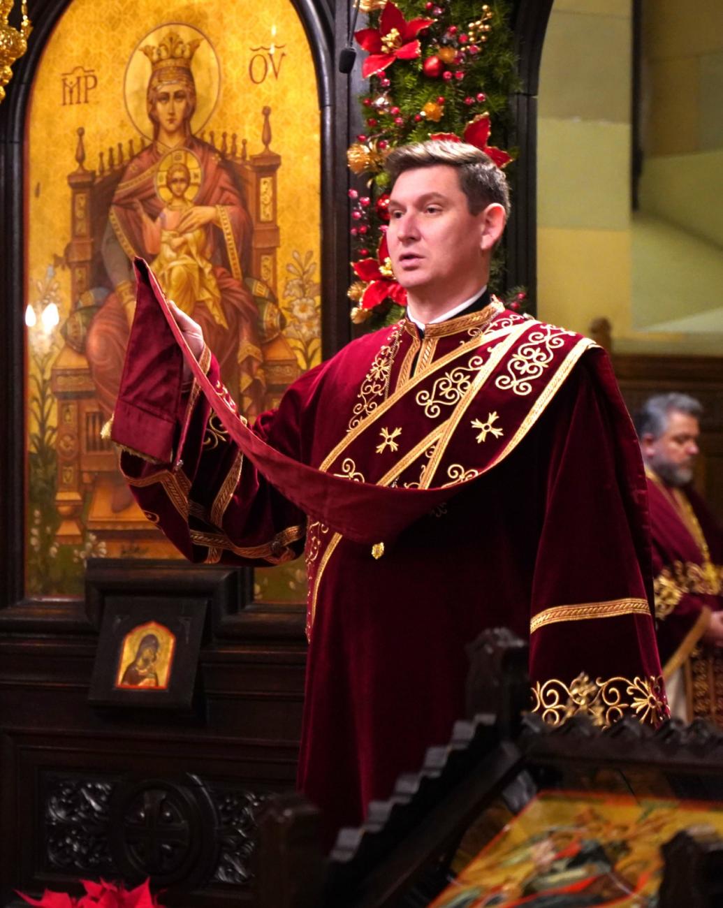 Joi, 25 decembrie 2025, în ziua slăvitului Praznic al Nașterii Mântuitorului nostru Iisus Hristos (Crăciunul), Înaltpreasfințitul Părinte Arhiepiscop Irineu a fost prezent la Catedrala Reîntregirii din Alba Iulia. Întâistătătorul Eparhiei noastre, înconjurat de un numeros sobor de preoți și diaconi, a oficiat Dumnezeiasca Liturghie a Sfântului Ioan Gură de Aur și a rostit cuvântul de învățătură, în prezența a numeroși credincioși. Răspunsurile liturgice au fost oferite de către Corala „Sfânta Treime” a Catedralei arhiepiscopale, dirijată de către tânărul Antonio Rotar.