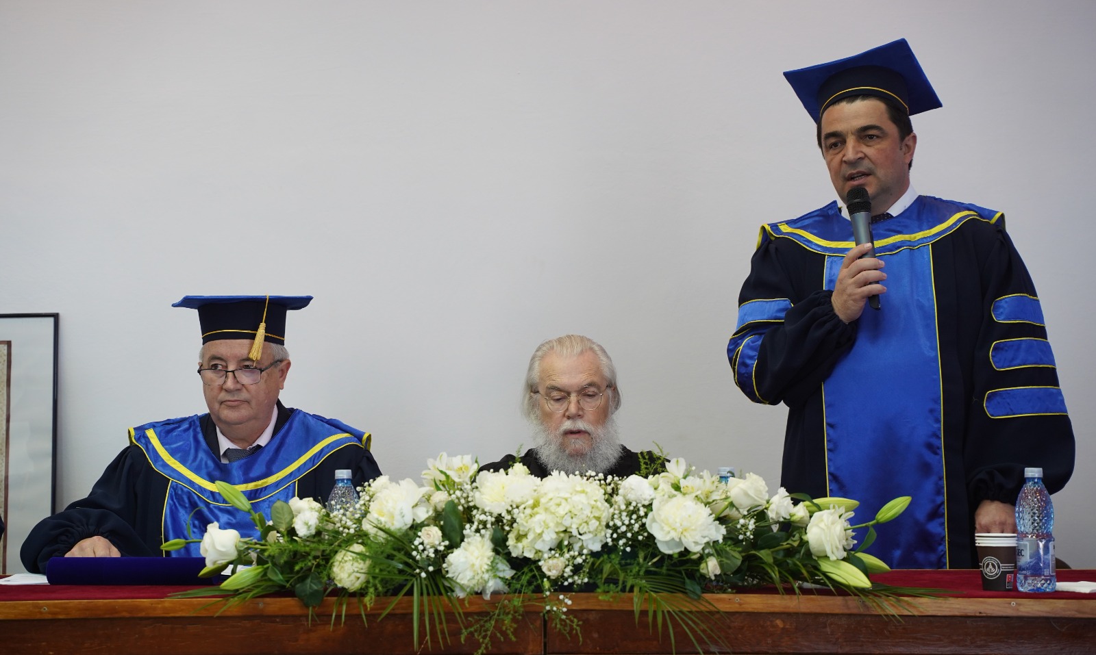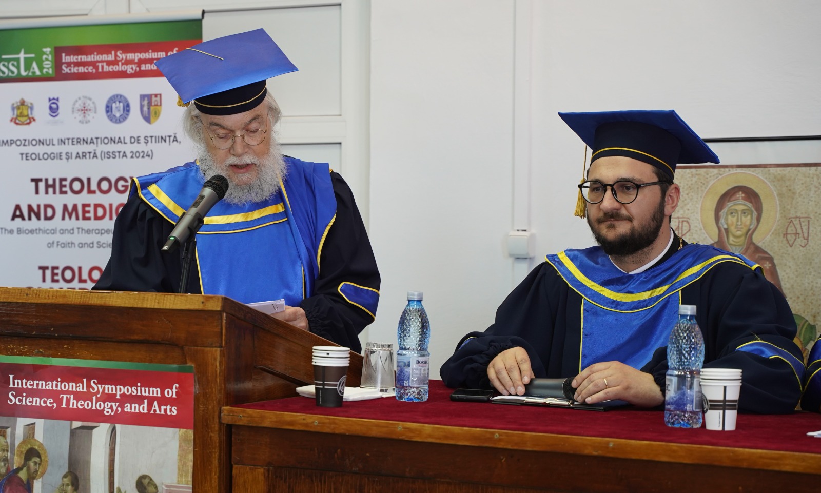 Momentul special programat în a doua zi a Simpozionului a fost reprezentat de ceremonia decernării titlului de Doctor Honoris Causa al Universității „1 Decembrie 1918” din Alba Iulia (UAB) domnului prof. univ. dr. Jean-Claude Larchet, doctor în Filosofie (1987) al Universității din Nancy și doctor în Teologie (1994) al Universității din Strasbourg. Evenimentul s-a derulat de la ora 11.00, în Aula „Dumitru Stăniloae”, în prezența membrilor Senatului UAB și a participanților ISSTA 2024.