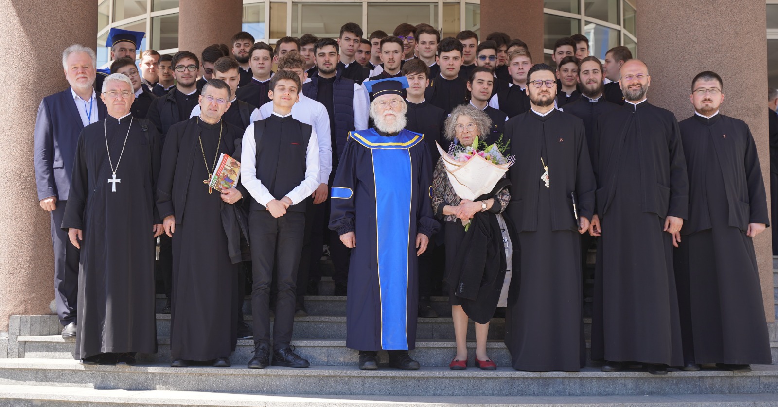 În continuare, domnul prof. univ. dr. Jean-Claude Larchet a rostit o prelegere festivă, cu ocazia acestui moment solemn. Profesorul și cercetătorul francez a subliniat faptul că este deosebit de onorat și emoționat ca urmare a atribuirii titlului academic de Doctor Honoris Causa la Alba Iulia, capitala unității spirituale și naționale a tuturor românilor. Totodată, domnia sa a remarcat legătura științifică și spirituală cultivată pe parcursul deceniilor cu mediul teologic academic din România. De asemenea, profesorul Jean-Claude Larchet a mulțumit pentru considerația și generozitatea cu care a fost primit de către corpul profesoral al Facultății de Teologie Ortodoxă din Alba Iulia.