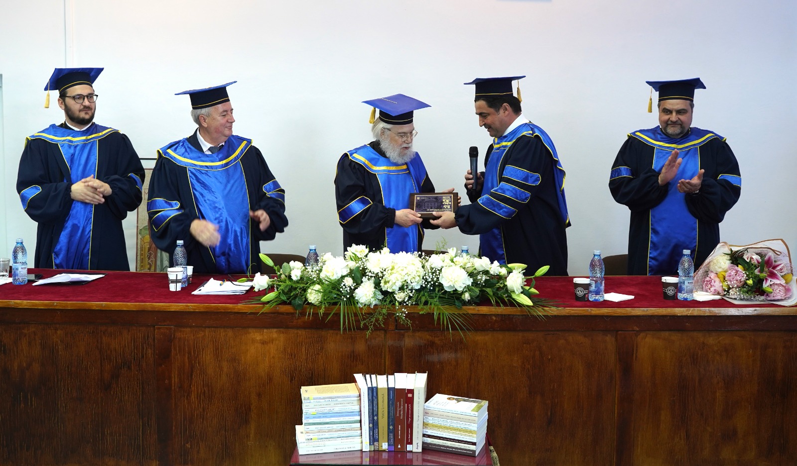 În ultima parte a evenimentului, în semn de apreciere, prof. univ. dr. Daniel Breaz i-a oferit profesorului și cercetătorului francez Jean-Claude Larchet o plachetă a Universității „1 Decembrie 1918” din Alba Iulia. Apoi, în semn de aleasă prețuire, pr. prof. univ. dr. Mihai Himcinschi i-a dăruit prof. univ. dr. Jean-Claude Larchet, în numele corpului academic al Facultății de Teologie Ortodoxă, o icoană cu Mântuitorul Iisus Hristos. Părintele decan i-a mulțumit distinsului invitat pentru bucuria deosebită prilejuită de participarea la acest eveniment științific și duhovnicesc.