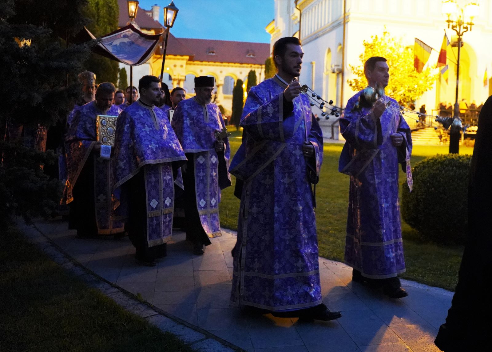 Vineri, 14 aprilie 2023, în a cincea zi a Săptămânii Sfintelor Pătimiri, Înaltpreasfințitul Părinte Arhiepiscop Irineu a poposit la Catedrala Reîntregirii din Alba Iulia. Începând cu ora 18.00, Arhipăstorul nostru, înconjurat de un numeros sobor de preoți și diaconi, a oficiat Denia Prohodului Domnului (Utrenia Sâmbetei celei Mari), slujbă în care ne este pusă înainte îngroparea Mântuitorului Hristos și Pogorârea Sa la iad. De asemenea, în prezența a sute de credincioși din vechea Cetate a Bălgradului, Întâistătătorul Eparhiei noastre a rostit cuvântul de învățătură.