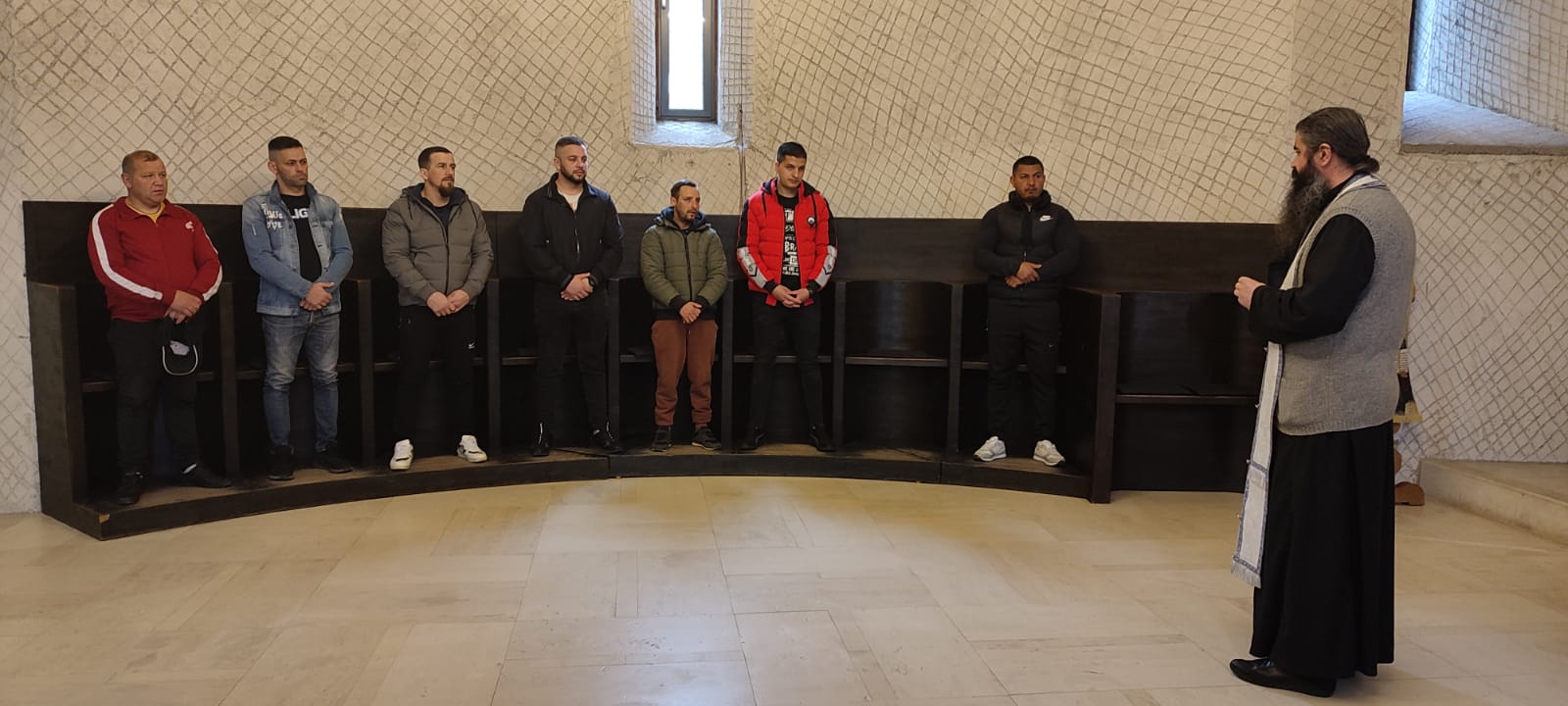 Cu această ocazie deosebită, părintele protosinghel Gavriil Vărvăruc, starețul așezământului monahal, le-a vorbit deținuților despre marile personalități care au suferit în temnița Aiudului în perioada comunistă, despre George Manu și Petre Țuțea, apoi le-a explicat simbolistica arhitecturii Mănăstirii și rolul acesteia în comemorarea și cinstirea mărturisitorilor din secolul trecut.