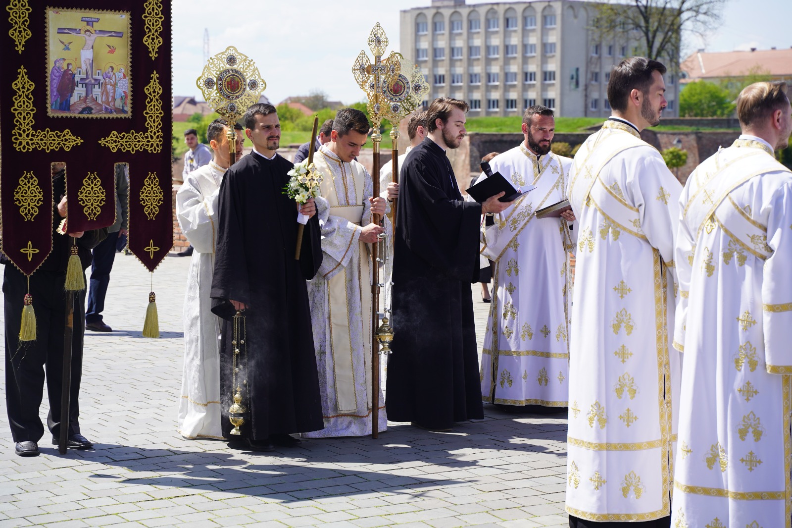 După celebrarea Sfintei Liturghii, a avut loc o procesiune cu slujbă specială la „Crucea Bucuriei” (situată în fața ansamblului Catedralei Reîntregirii), ceremonie la care au luat parte soborul clericilor slujitori și numeroșii credincioși prezenți, în frunte cu Părintele Arhiepiscop Irineu. La final, Arhipăstorul nostru a rostit un cuvânt duhovnicesc în care a evidențiat faptul că rugăciunile din cadrul slujbei au fost rostite pentru ferirea pământului și a florei de intemperii, de dăunători și de calamități naturale, precum și pentru buna rodire a culturilor de orice fel, spre folosul și hrana oamenilor și animalelor.