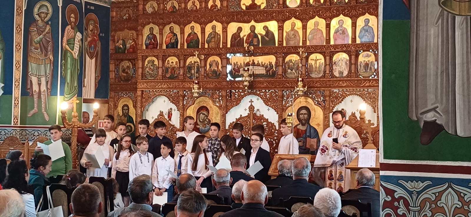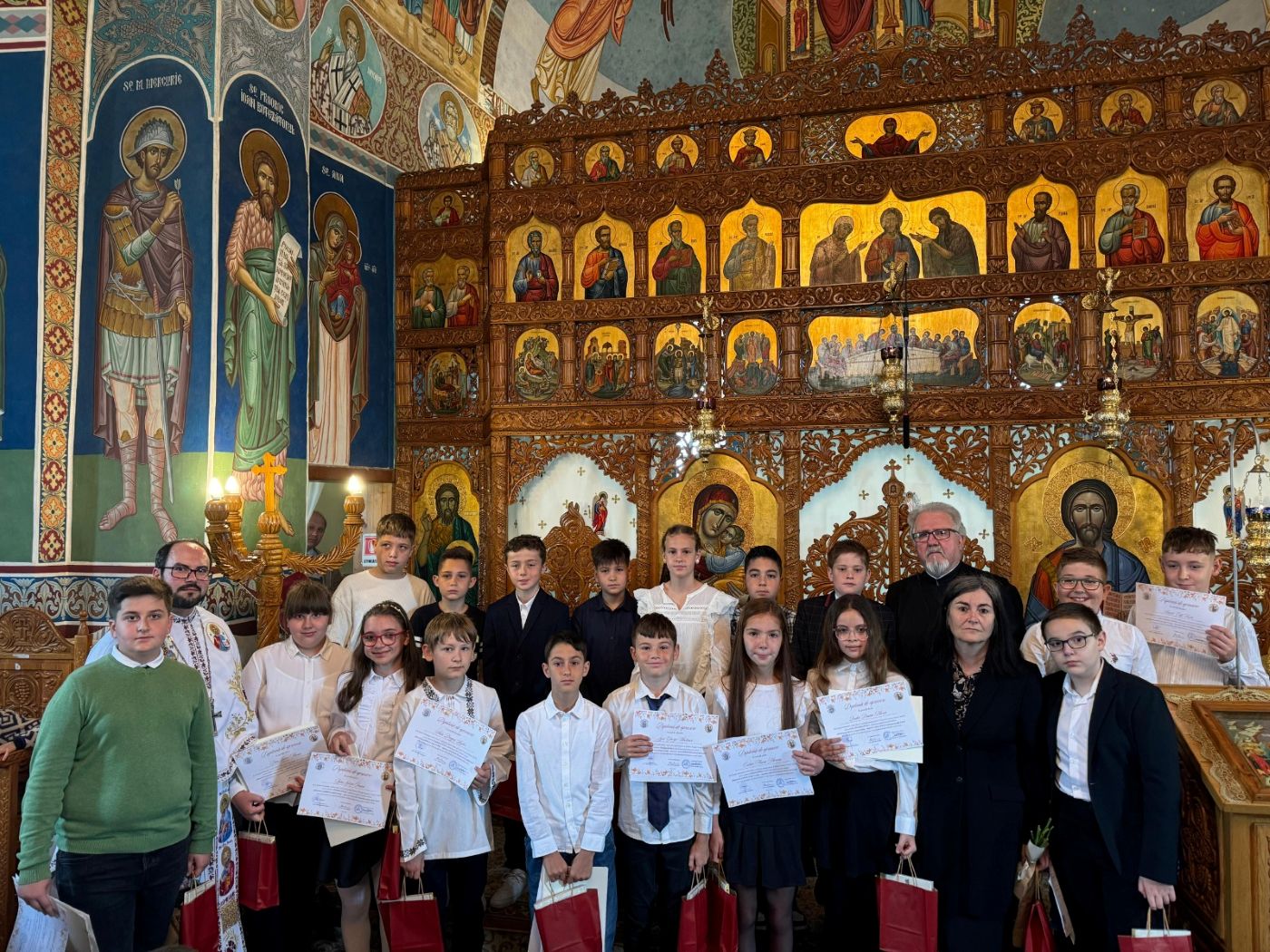 După încheierea Dumnezeieștii Liturghii, în prezența enoriașilor, a avut loc un moment emoționant: premierea elevilor din cadrul Grupului Catehetic al parohiei noastre, câștigători ai Premiului II la Concursul Național Catehetic „Mărturisirea jertfelnică a dreptei credinţe – moştenirea unui secol de Patriarhat pentru copii şi tineri”, organizat de Patriarhia Română în parteneriat cu Ministerul Educației. Sub coordonarea doamnei învățătoare Luminița Manole și a părintelui paroh, pe parcursul lunilor februarie-martie a.c., merituoșii elevi s-au implicat activ în derularea proiectului „Pe urmele mărturisitorilor – O sută de ani de Patriarhat pentru noua generație”.