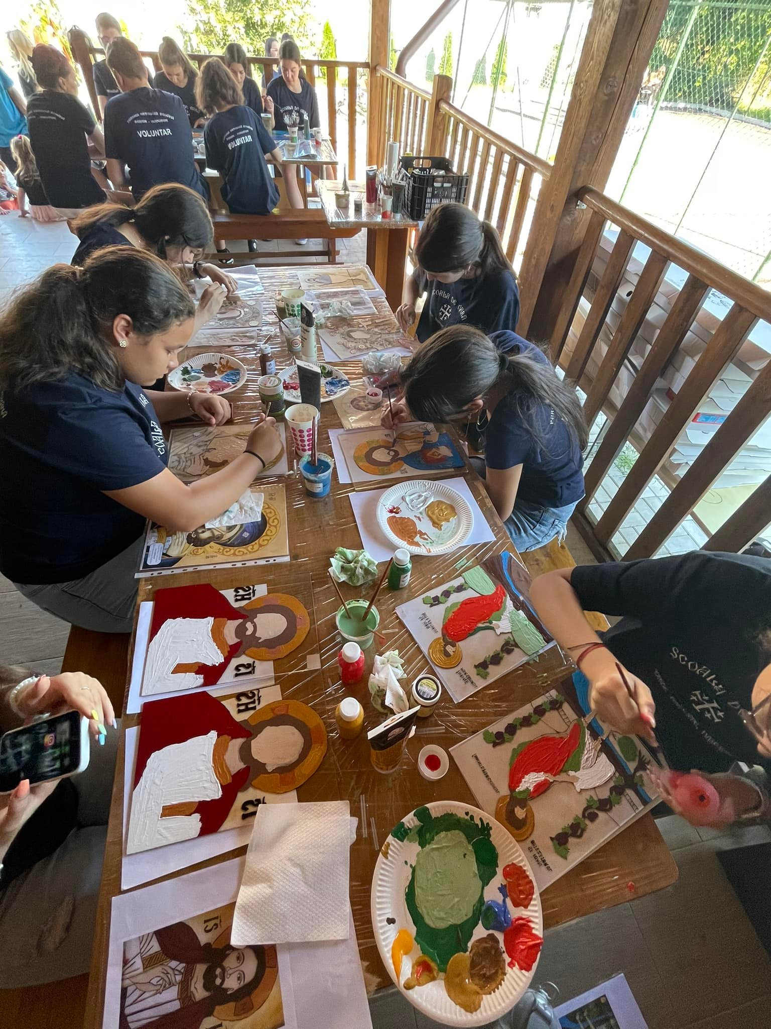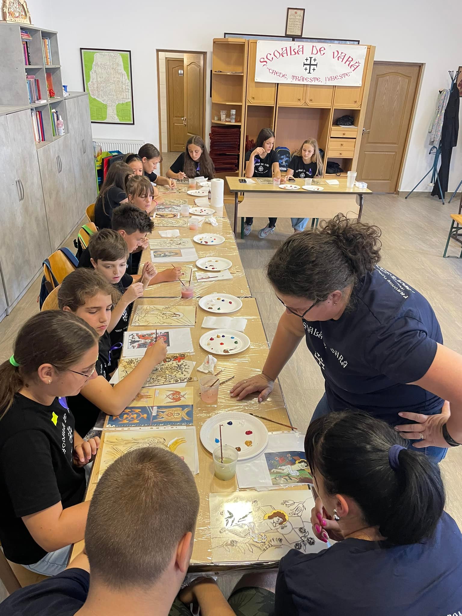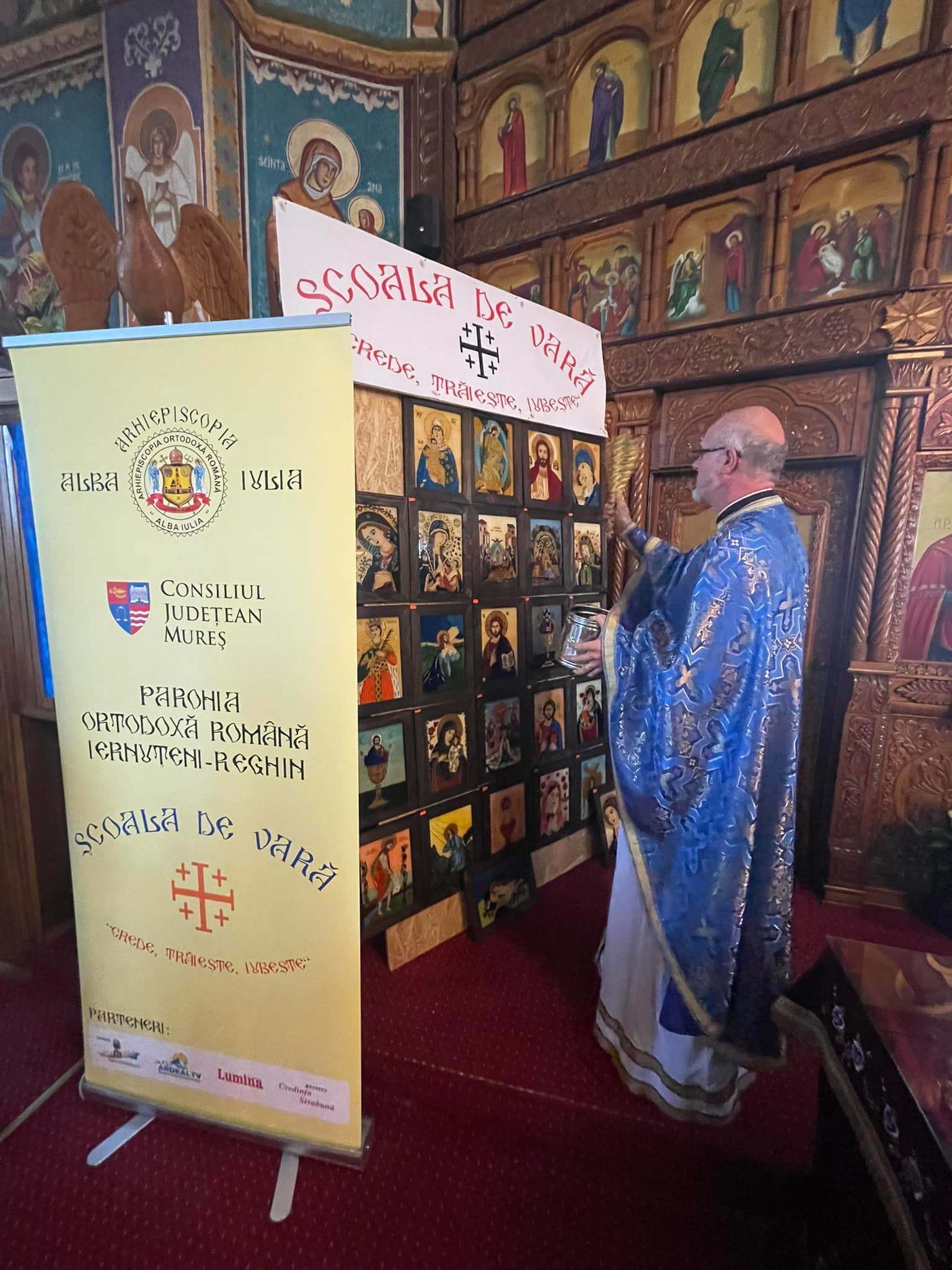 În cadrul activităților artistice, fiecare participant a realizat o icoană pe sticlă sau o cărticică de rugăciuni cu desene, care au fost expuse la finalul școlii de vară într-o expoziție la biserica parohială. Împreună cu părinții lor, copiii și tinerii participanți au luat parte la Sfânta Liturghie din ziua de duminică, 14 august, săvârșită în biserica parohială din Reghin-Iernuțeni, iar icoanele pictate au fost sfințite de către părintele paroh, după care micii pictori le-au luat acasă spre ajutor și binecuvântare.