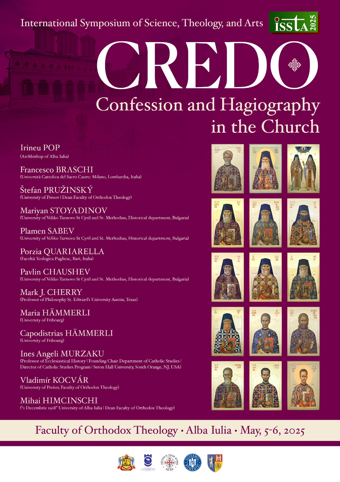 Cu binecuvântarea Înaltpreasfințitului Părinte Arhiepiscop Irineu, în perioada 5-6 mai 2025, la Facultatea de Teologie Ortodoxă din Alba Iulia, va avea loc cea de-a XXIV-a ediție a Simpozionului Internațional de Știință, Teologie și Artă (ISSTA). Evenimentul, desfășurat sub genericul „Credo. Confesiune și hagiografie în Biserică”, se înscrie în tematica anului 2025, declarat de Patriarhia Română ca „Anul omagial al Centenarului Patriarhiei Române” și „Anul comemorativ al duhovnicilor şi mărturisitorilor ortodocși români din secolul al XX-lea”.