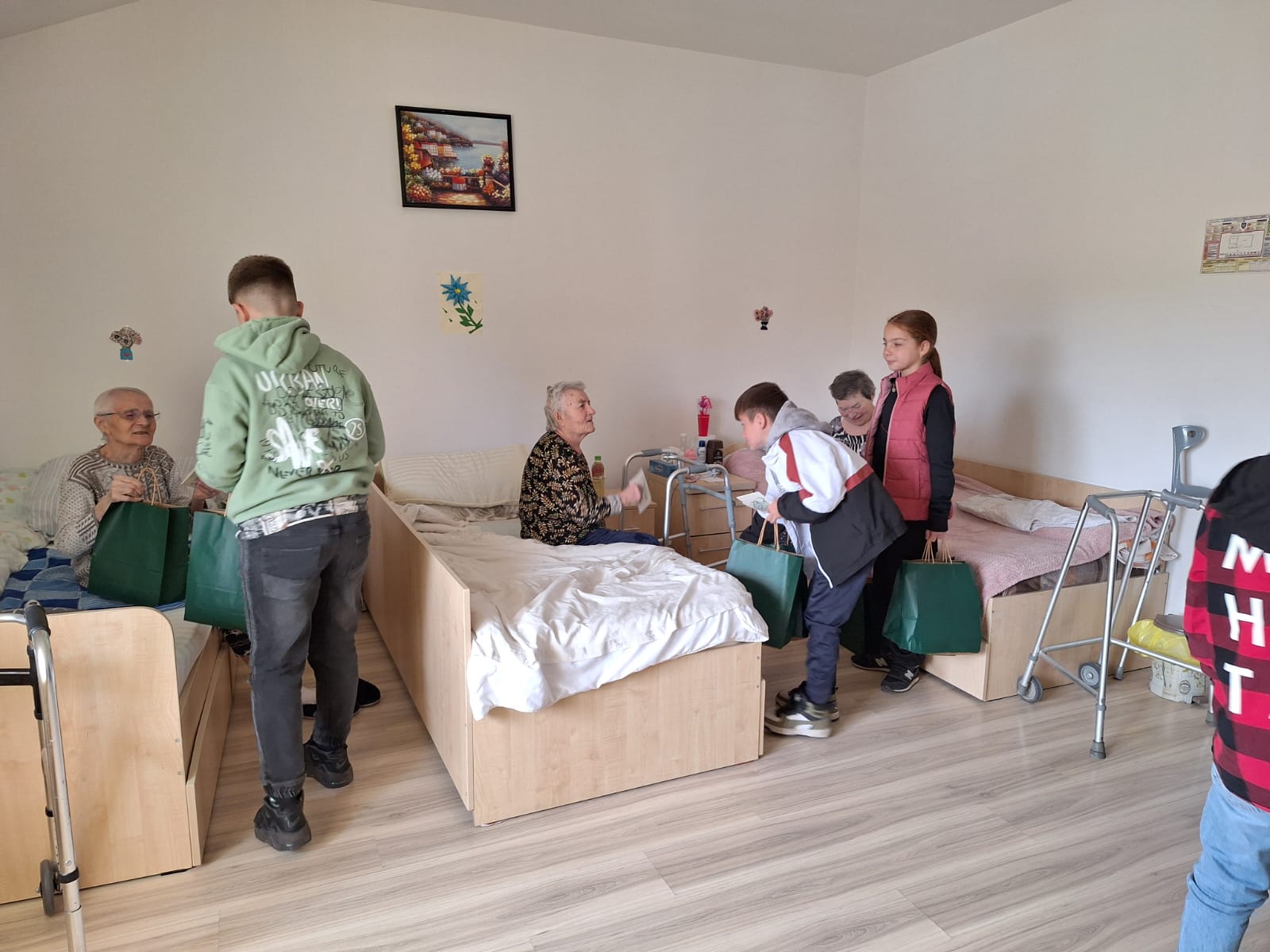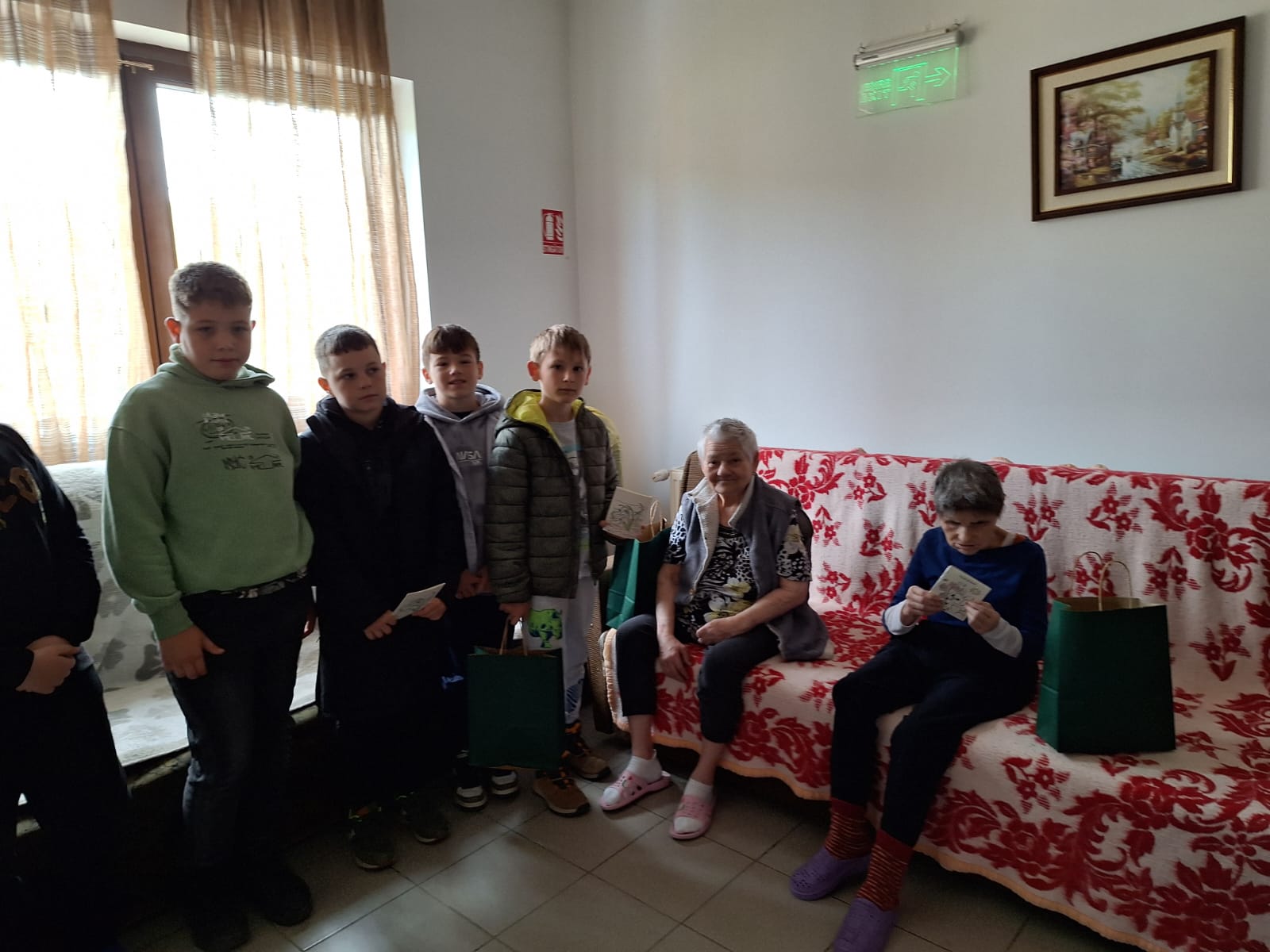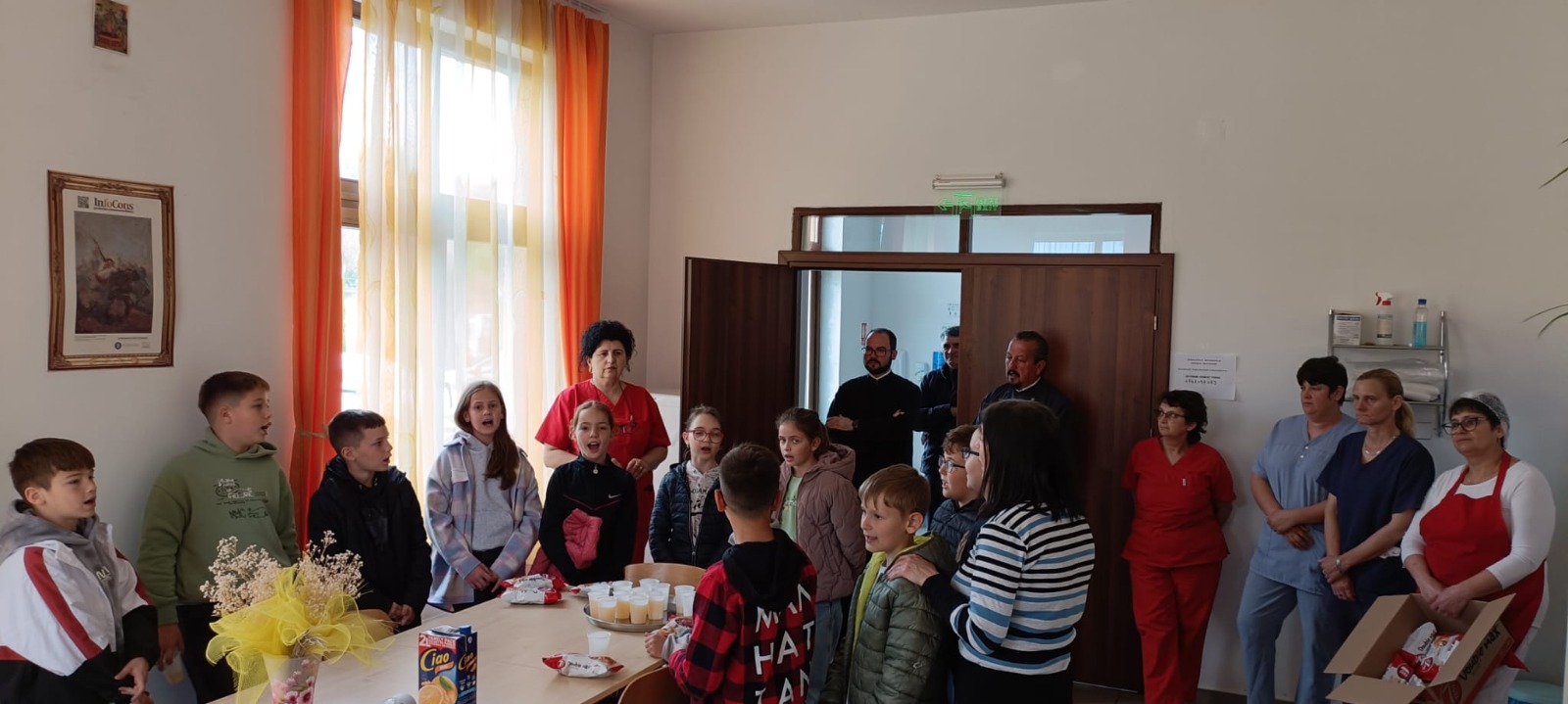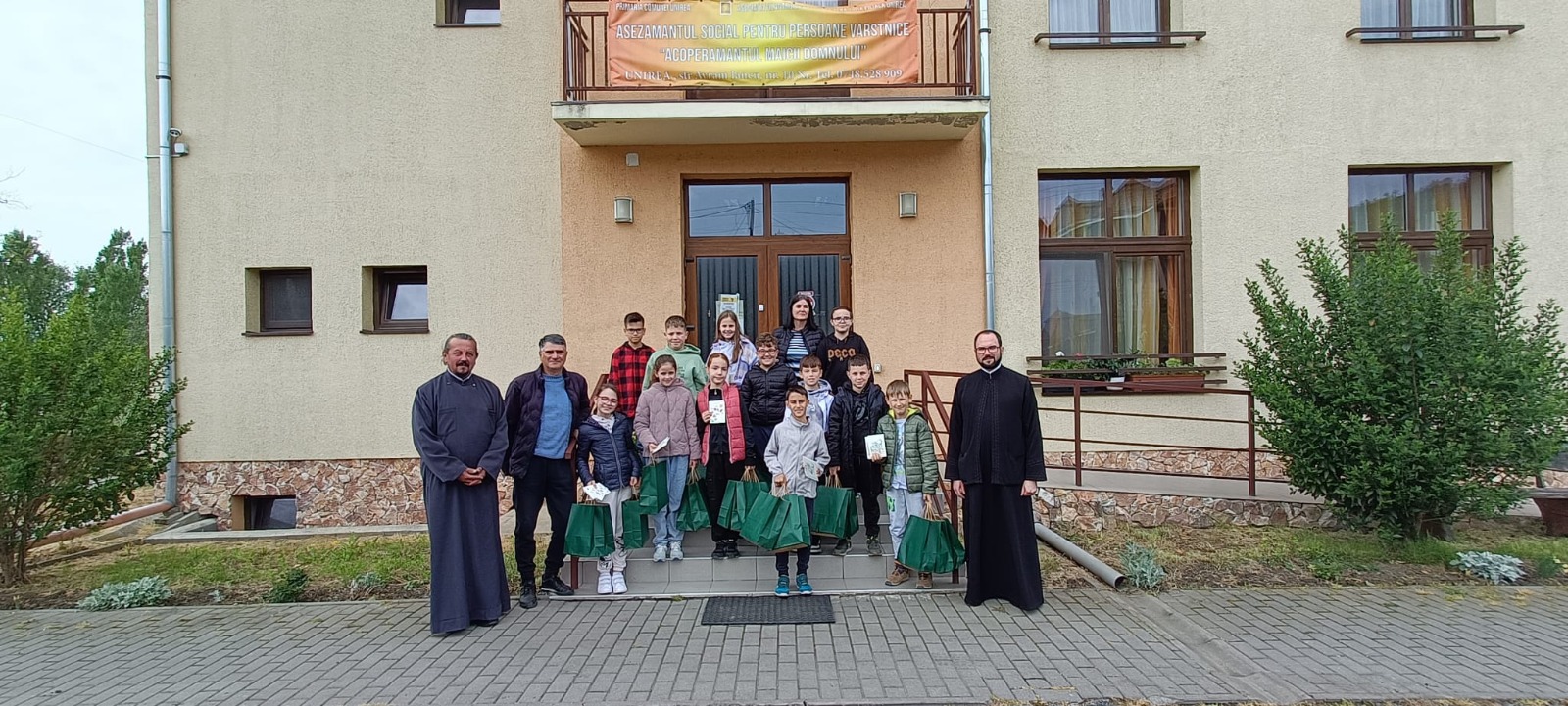 Marți, 23 aprilie a.c., de sărbătoarea Sfântului Mare Mucenic Gheorghe, purtătorul de biruință, după Sfânta Liturghie, elevii doamnei învățătoare Luminița Manole din clasa a III-a A de la Școala Gimnazială „Ovidiu Hulea” din Aiud și membri ai Centrului cultural-catehetic „Adormirea Maicii Domnului” al Parohiei Ortodoxe Aiud III, au fost prezenți în mijlocul beneficiarilor Centrului rezidențial „Acoperământul Maicii Domnului” de la Unirea, în cadrul unei acțiuni social-filantropice. Astfel, pe lângă darurile simbolice și frumoasele felicitări pascale realizate de mânuțele lor, cei mici au sădit în sufletele vârstnicilor împovărați de ani și de suferință bucuria și optimismul atât de necesare în vremurile pe care le trăim.
