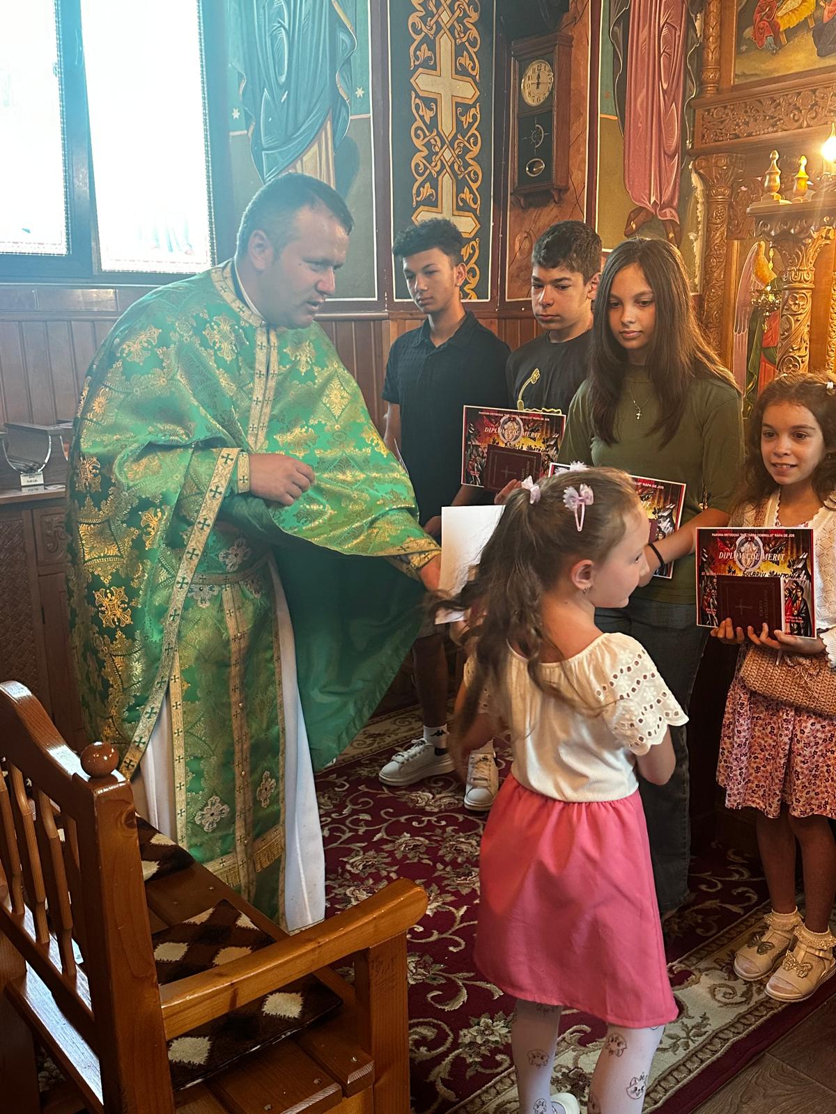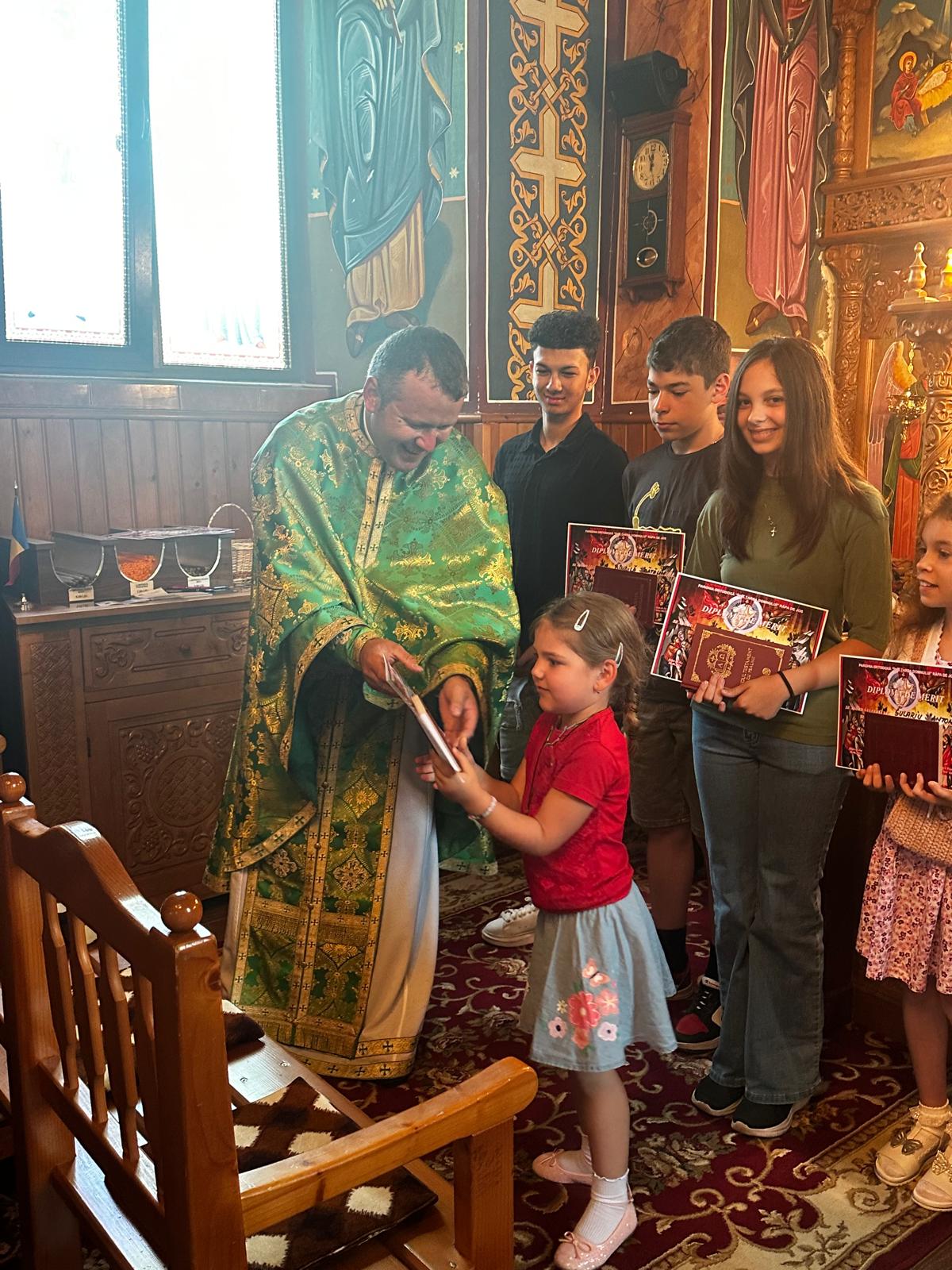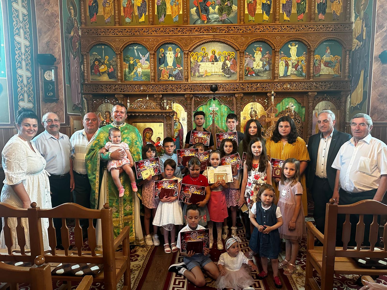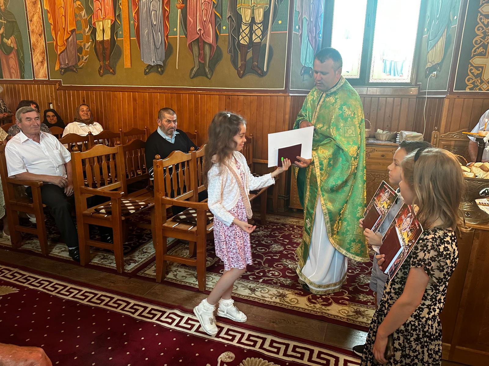 În duminica a II-a după Rusalii, elevii din parohia Râpa de Jos, protopopiatul Reghin, au primit diplome de merit și cărți de rugăciuni, pentru rezultatele școlare deosebite obținute în anul școlar 2023-2024. Evenimentul festiv, devenit deja o tradiție, a fost organizat, pentru al șaptelea an consecutiv, după oficierea Sfintei Liturghii, în biserica parohială. Ne-am adunat cu toții să recunoaștem și să celebrăm realizările minunate ale tinerilor noștri. A fost un moment special în care am privit cu mândrie la eforturile și progresul lor, aducând mulțumire pentru binecuvântările primite. Fiecare dintre ei a demonstrat prin muncă, dăruire și perseverență că sunt capabili de lucruri mari.