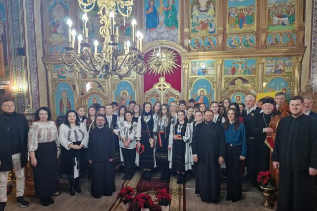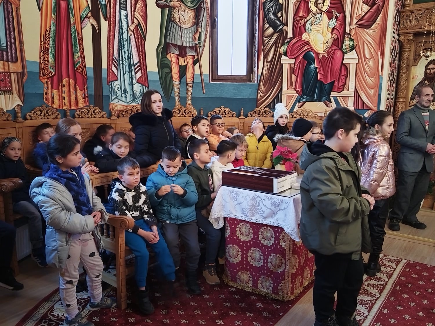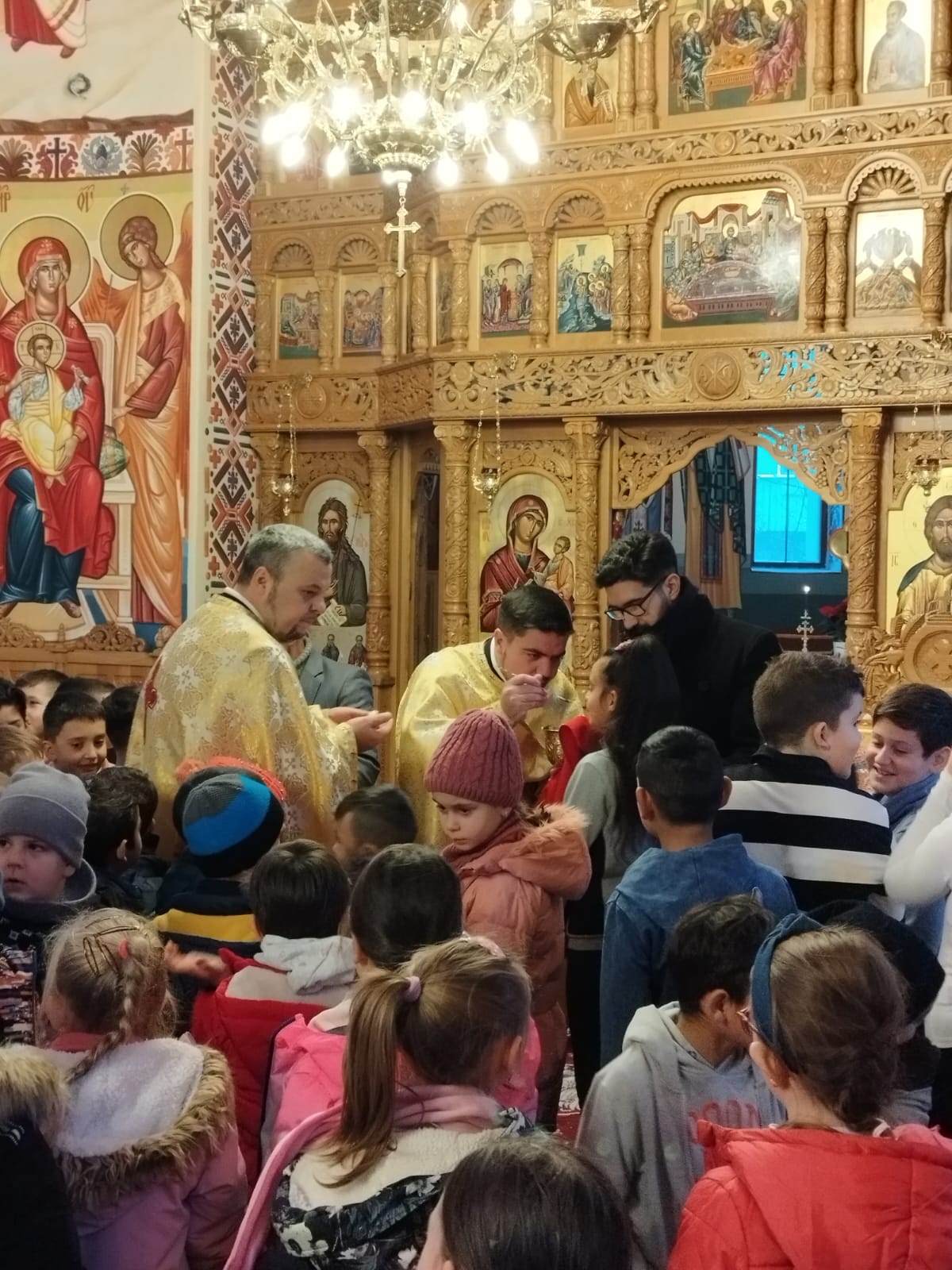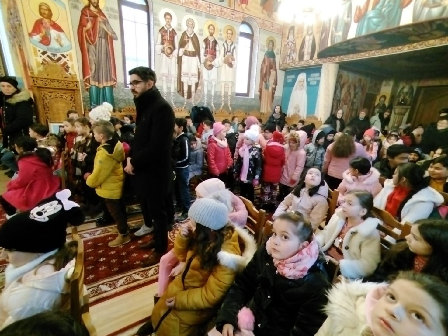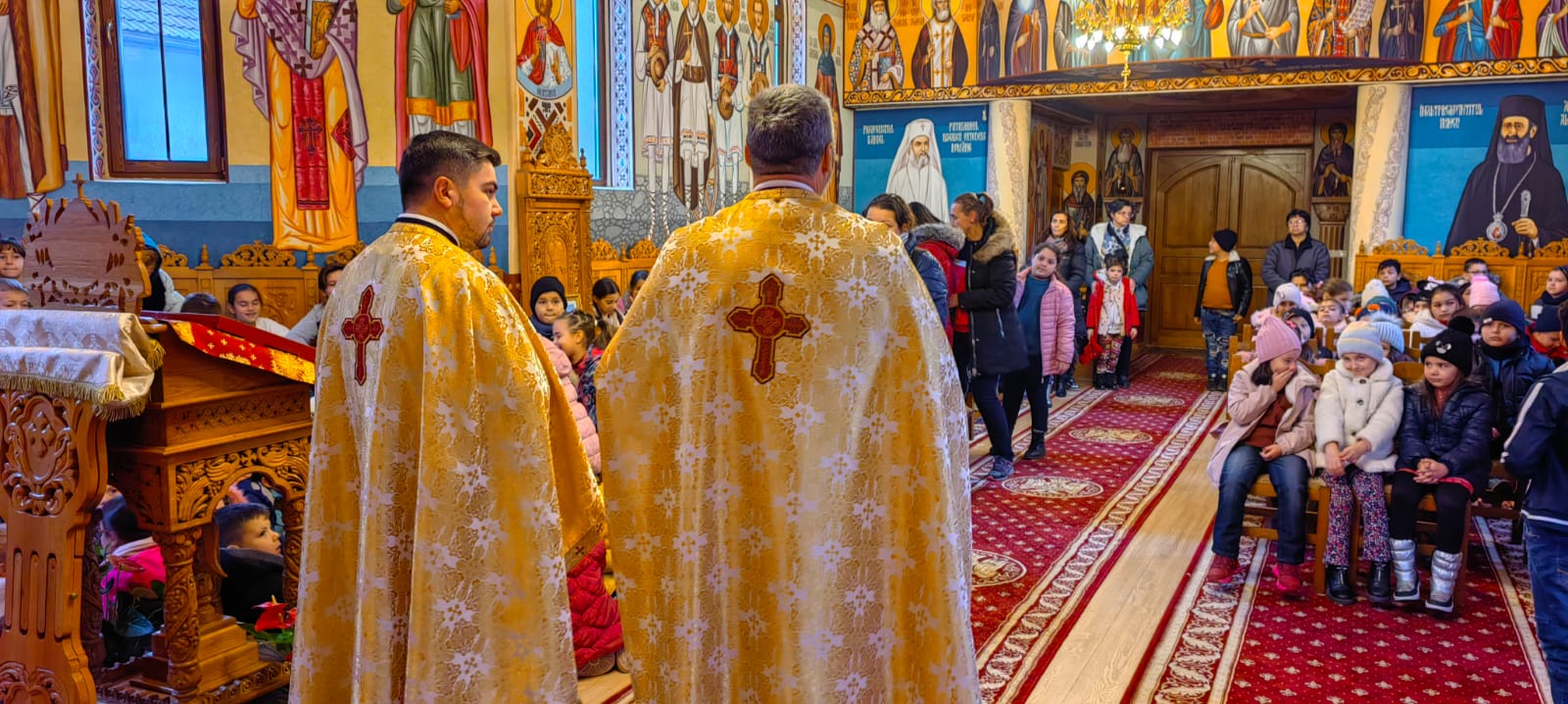 În locașul de închinare, copiii au asistat la Sfânta Liturghie, urmând ca la momentul Chinonicului să aducă darul lor Pruncului dumnezeiesc prin colind. Pregătirea acestora a culminat prin primirea Sfintelor Taine, astfel ieslea sufletelor fiind pregătită pentru praznicul Nașterii Domnului. Preoții parohi din Ungheni, părintele Iulian Suciu și părintele Adrian Pavel, le-au adresat tinerilor un cuvânt duhovnicesc despre rolul și importanța Bisericii în viața de zi cu zi, dar mai ales despre semnificația Praznicului Nașterii Domnului și păstrarea tradițiilor prin frumoasele colinde.