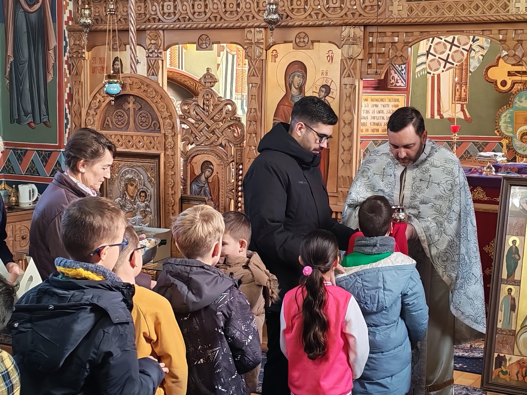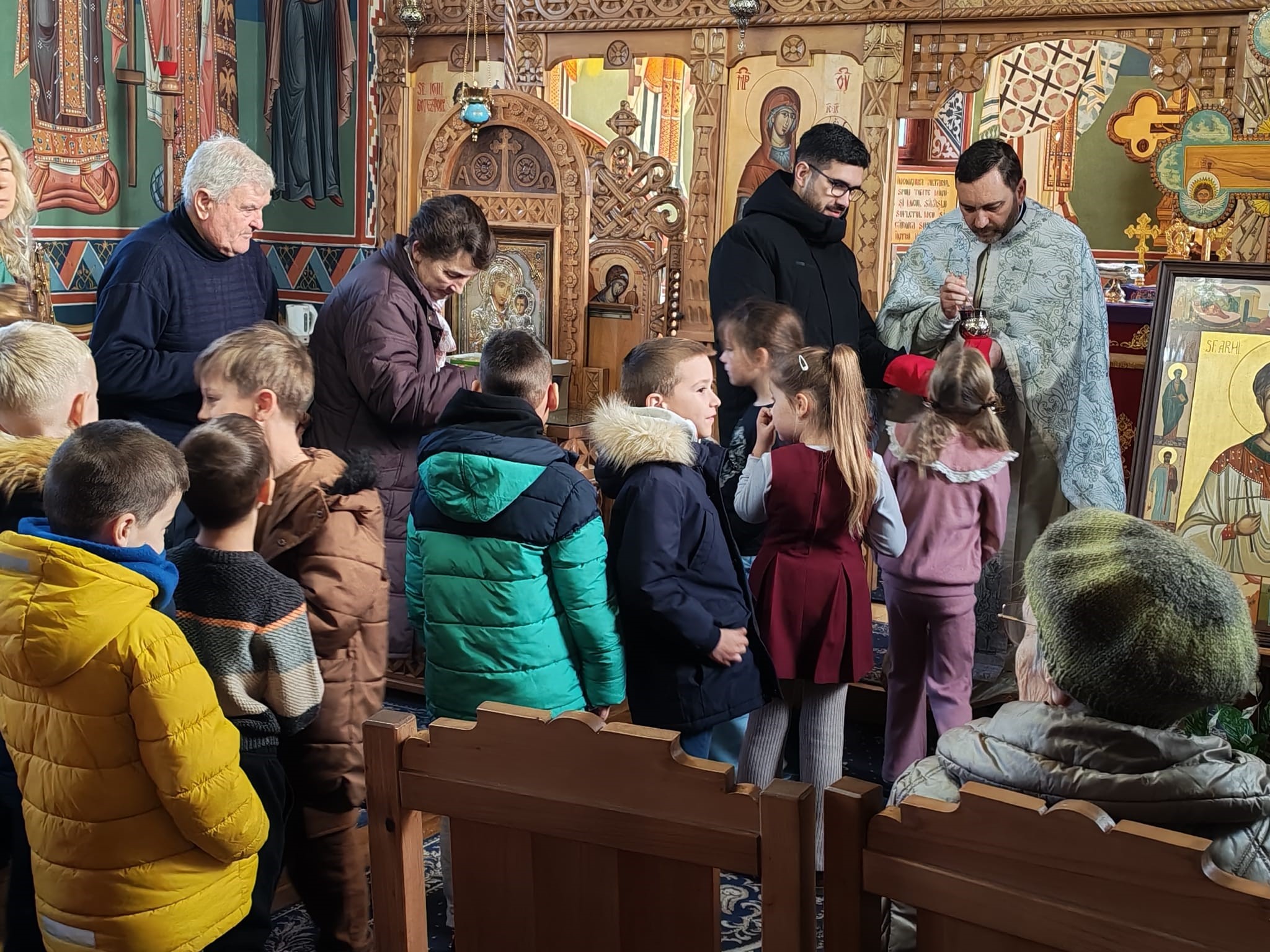 După primirea Sfintelor Taine, glasurile cristaline ale celor mici au umplut biserica de lumină, copiii colindând cu bucurie și curăție, vestind Nașterea Mântuitorului. Colindele lor au fost o adevărată rugăciune cântată, aducând pace și emoție în sufletele tuturor celor prezenți și amintindu-ne că pruncii sunt cei care păstrează cel mai curat mesajul credinței.