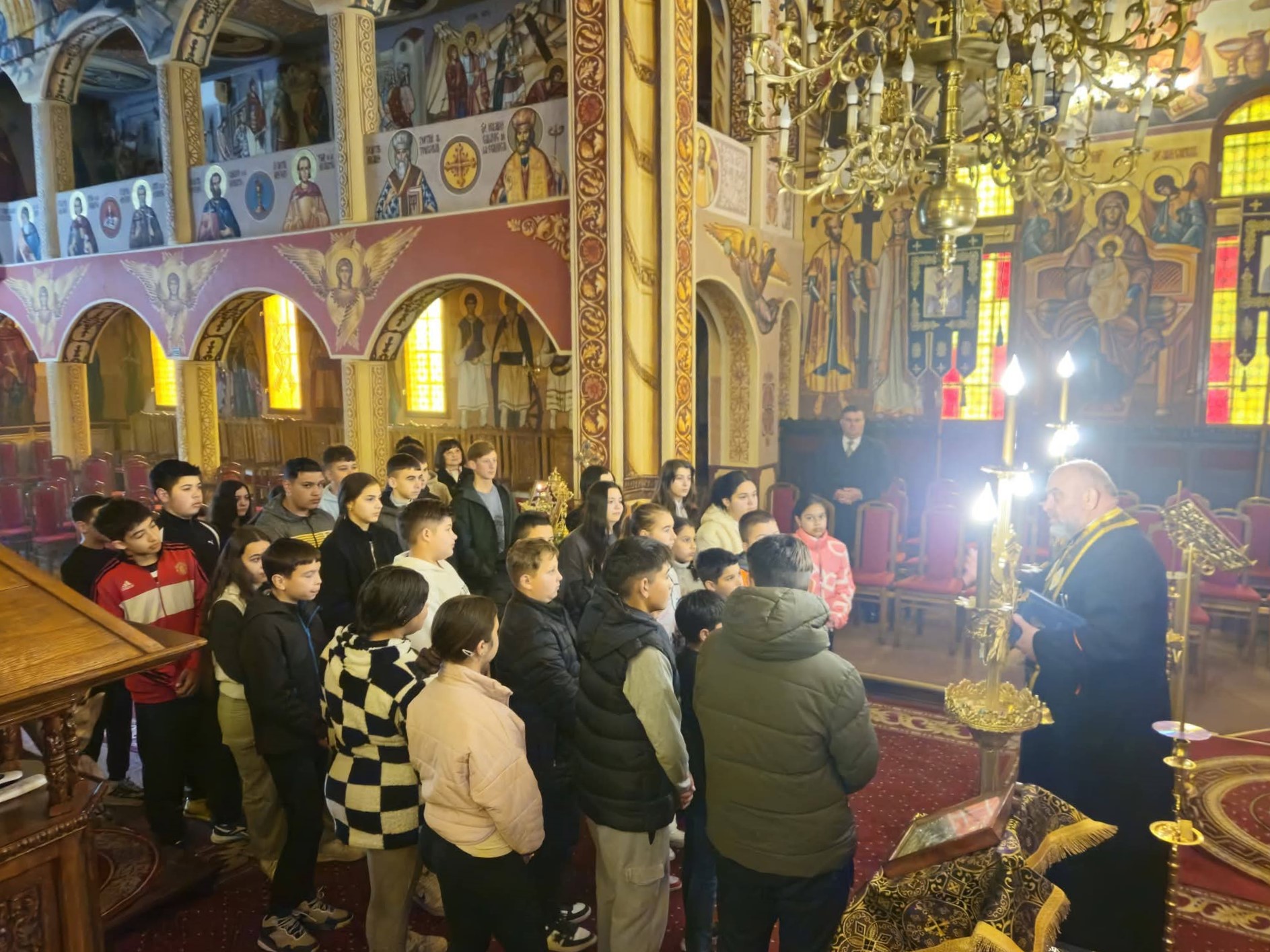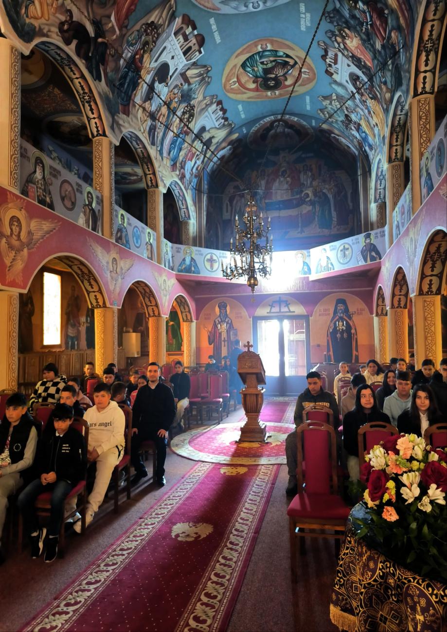 În dimineața zilei de joi, 26 martie 2026, elevii claselor V-VIII de la Școala Gimnazială „Simion Lazăr” din Lunca Mureșului, alături de domnul prof. Marius Luca, profesor pentru disciplina Religie, și de doamna prof. Floarea Sărmașiu, directorul instituției de învățământ, au fost primiți de părintele paroh Petre Sărmașiu în biserica parohială „Izvorul Tămăduirii” din localitate.