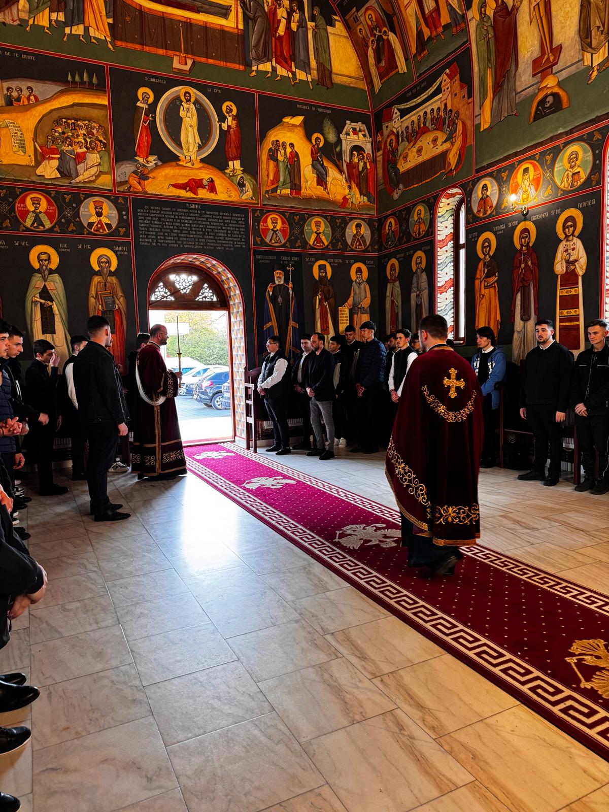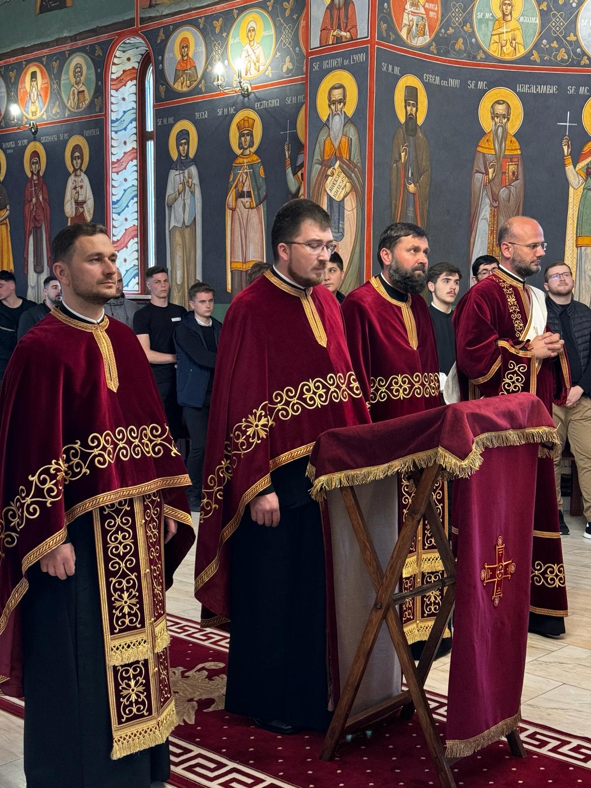 Din soborul sfințiților slujitori au făcut parte părintele Cristian Rațiu, inspector de cateheză și tineret și duhovnic al Facultății de Teologie Ortodoxă din Alba Iulia, părintele prof. drd. Silviu Florea, duhovnic al Seminarului Teologic Ortodox din Alba Iulia, părintele Vasile Tobias, preot al parohiei Cristești I, protopopiatul Târgu Mureș, și părintele arhid. conf. univ. dr. Răzvan Brudiu, cadru didactic la Facultatea de Teologie Ortodoxă din Alba Iulia. La finalul slujbei, părintele Vasile Tobias a rostit o meditație duhovnicească.