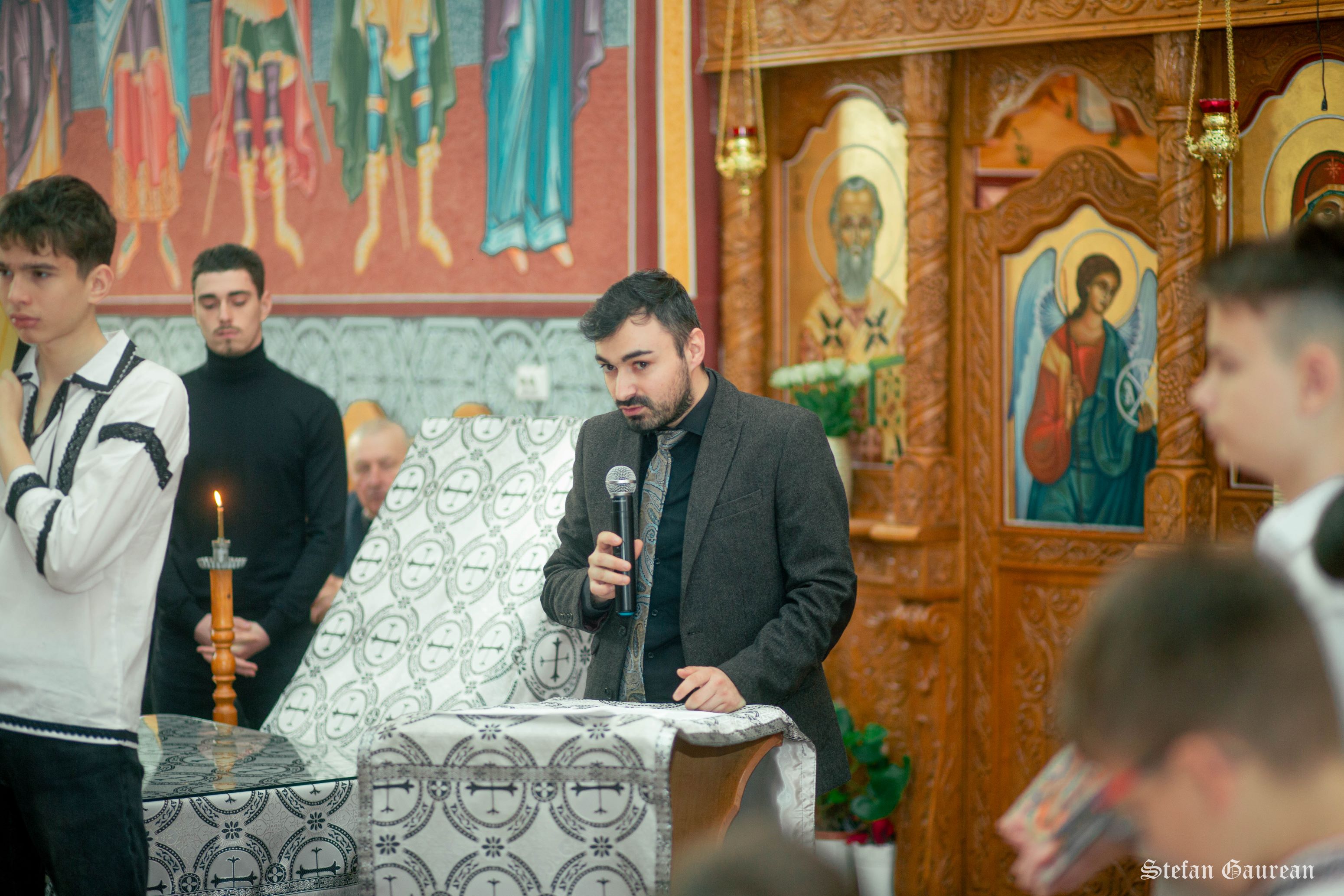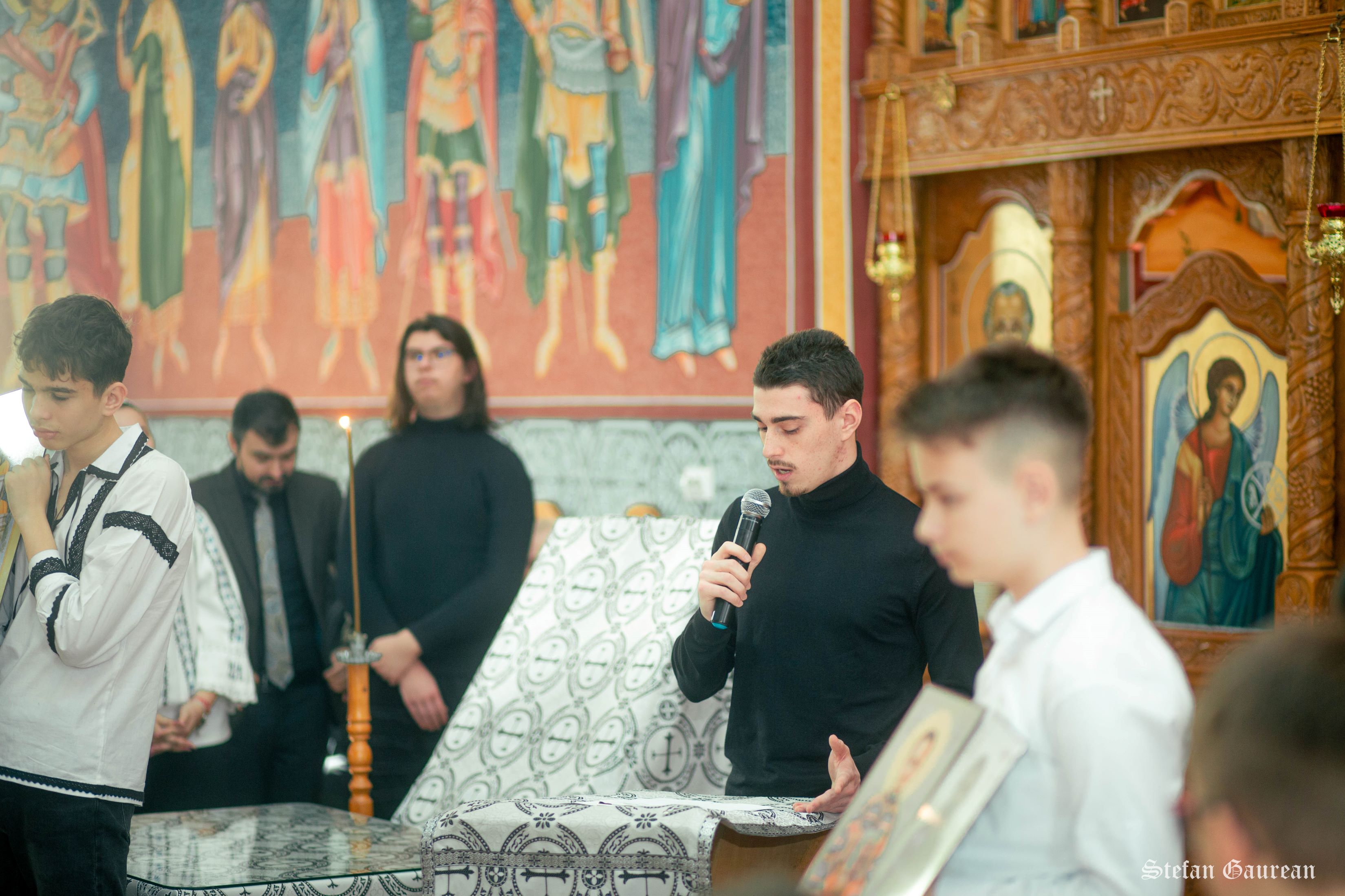 Duminică, 9 martie, când în calendarul ortodox este consemnată Ziua Deținuților Politici Anticomuniști din perioada 1944-1989 în România, la finalul Sfintei Liturghii, a avut loc un eveniment special, în care credincioșii au fost invitați să cunoască mai bine sfinții români recent canonizați. Fiecare tânăr a prezentat viața și pilda acestor sfinți, subliniind curajul lor în mărturisirea credinței și oferind celor prezenți un îndemn spre nădejde, statornicie și credință neclintită.