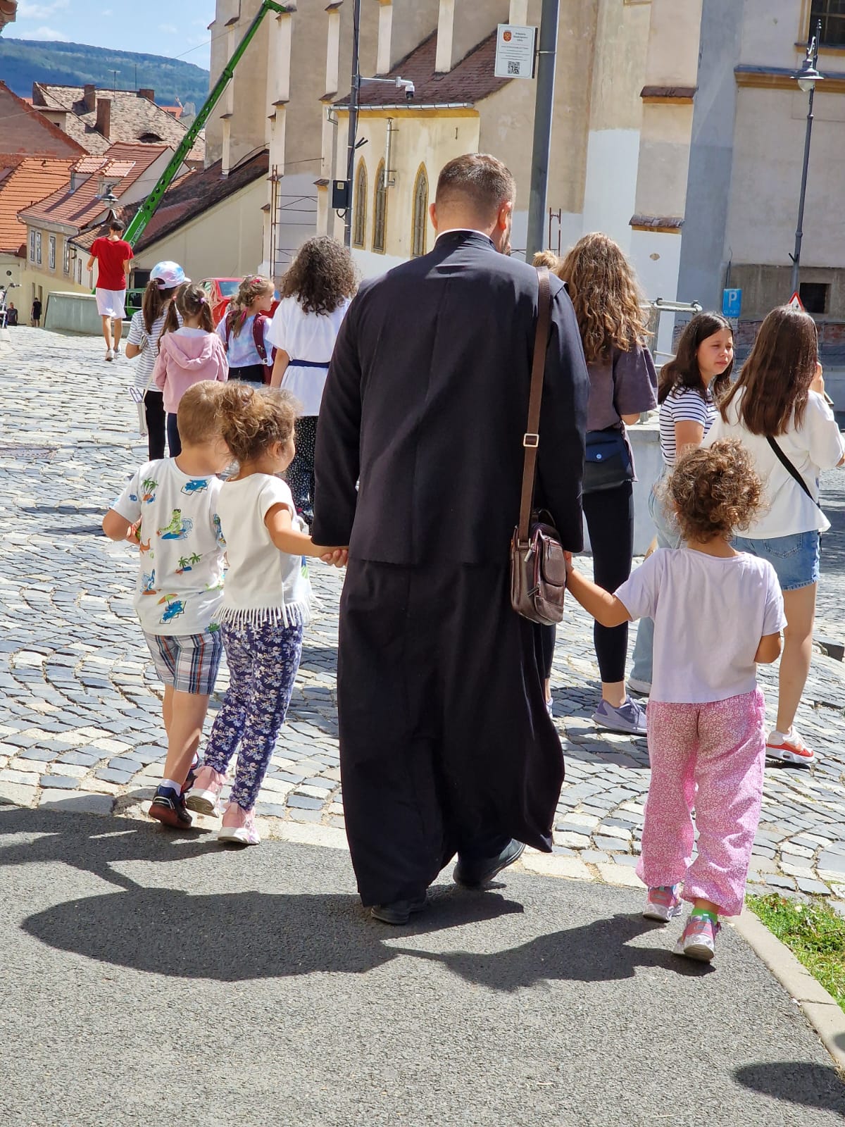 Ziua a debutat cu o rugăciune rostită în Catedrala Mitropolitană din Sibiu, unde micii creștini s-au închinat la moaștele Sfântului Ierarh Andrei Șaguna și I-au mulțumit lui Dumnezeu pentru tot sprijinul și darurile acordate pe parcursul anului școlar pe care recent l-au încheiat, rugându-L să le fie în continuare alături și să-i ocrotească, atât pe ei, cât și pe cei dragi. În continuare, aceștia au efectuat o scurtă promenadă în Piața Sfatului, iar de la ultimul nivel al Turnului Sfatului, simbolul municipiului Sibiu, după parcurgerea celor 141 de trepte ale acestuia, au putut admira splendida panoramă asupra orașului vechi. De asemenea, aceștia au vizitat Piața Mare, precum și faimosul Pod al minciunilor, cel mai vechi pod de fontă încă funcțional de pe teritoriul României, construcție care ascunde multe legende și mituri.