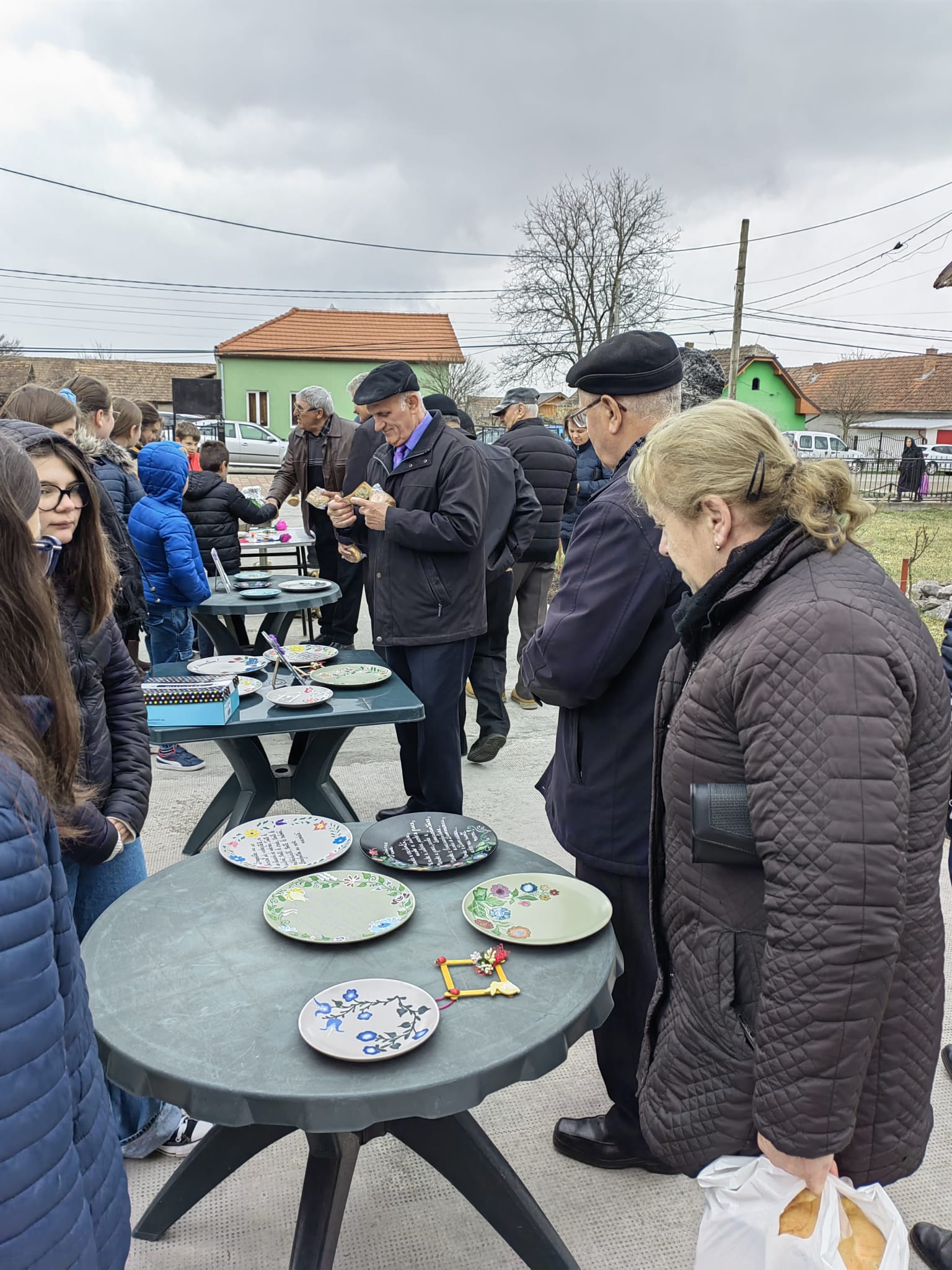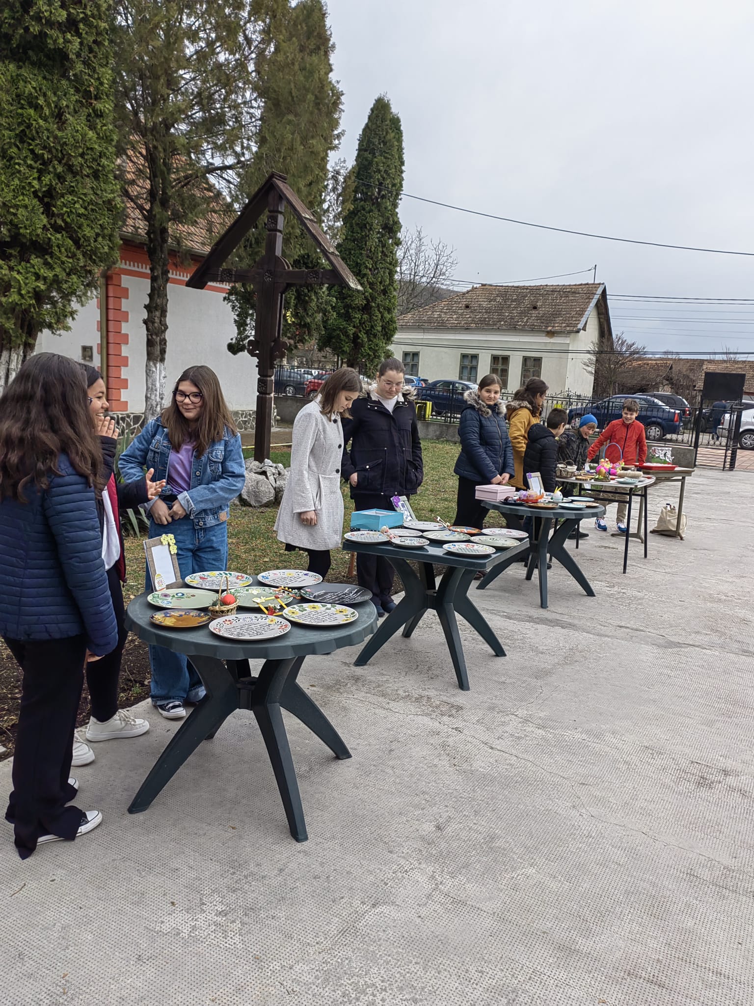 În curtea bisericii ortodoxe din localitate, la Altarul căreia slujește părintele paroh Petre Sărmașiu, elevii Școlii Gimnaziale „Simion Lazăr”, însoțiți de conducerea unității de învățământ, doamna director prof. Floarea Sărmașiu, cadre didactice și doamna bibliotecar Dana Hopîrtean, au expus lucrări realizate în cadrul cercurilor extracurriculare pe care le derulează.