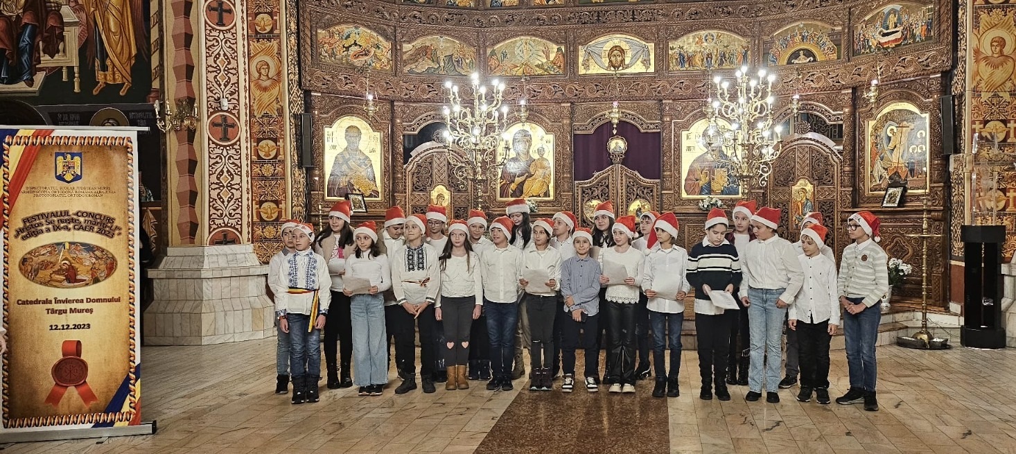 Au participat 300 de elevi de la școlile și liceele din Târgu Mureș, fiind coordonați de profesorii de religie și muzică ale căror voci cerești au cântat laude pentru Nașterea Pruncului Iisus, vestind vestea cea bună a bucuriei și mântuirii.