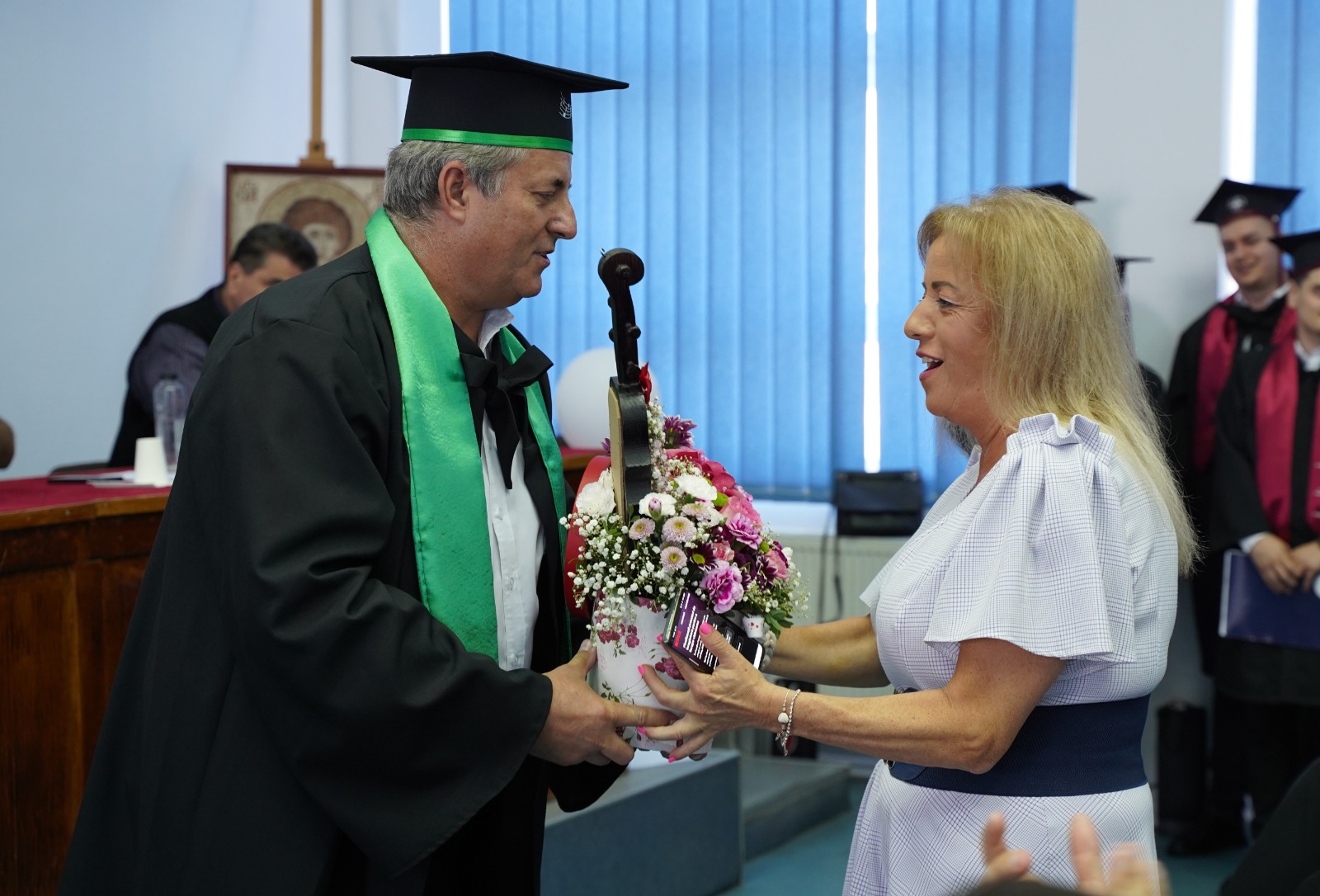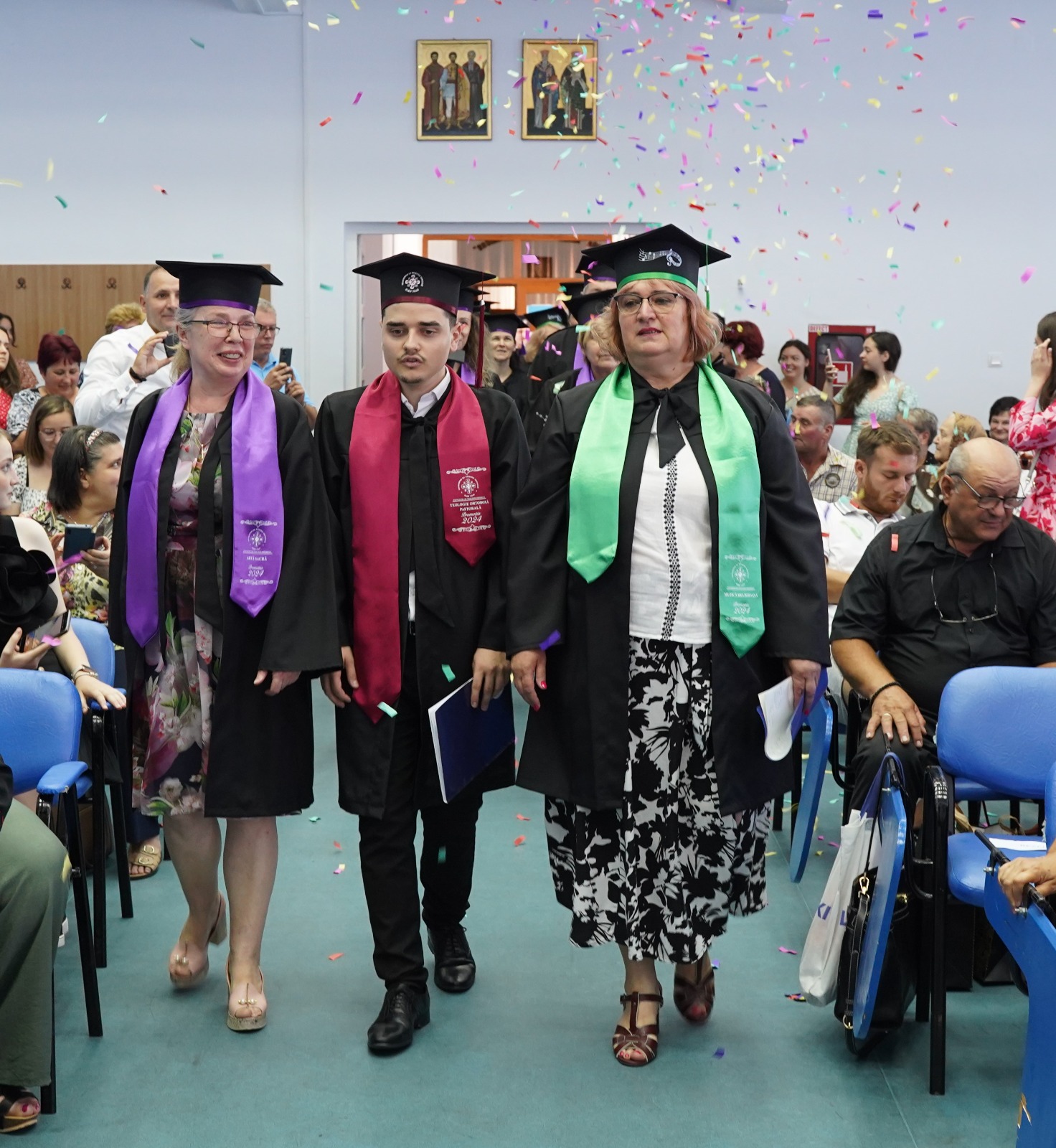 Joi, 11 iulie a.c., la Facultatea de Teologie Ortodoxă din Alba Iulia, a avut loc festivitatea de absolvire a studenților promoției 2024. La eveniment au luat parte părinții profesori din cadrul instituției de învățământ teologic universitar și absolvenții celor trei secții: Teologie pastorală, Muzică religioasă și Artă sacră, alături de care s-au aflat invitații studenților aflați în anul terminal. Începând cu ora 8.00, în paraclisul „Sfinții Trei Ierarhi”, a fost oficiată Dumnezeiasca Liturghie a Sfântului Ioan Gură de Aur, iar de la ora 10.00, slujba de Te-Deum, în prezența studenților și a părinților profesori.