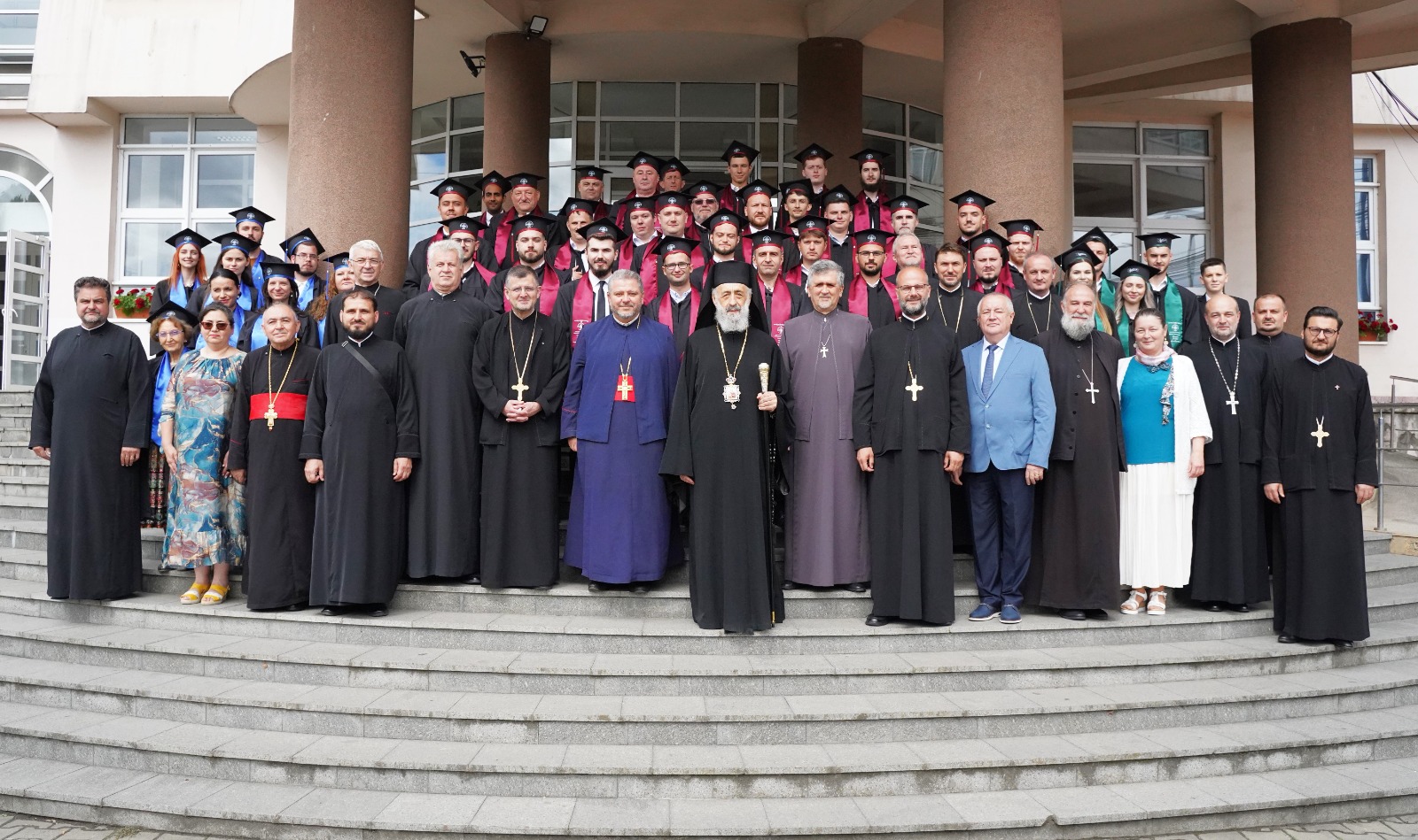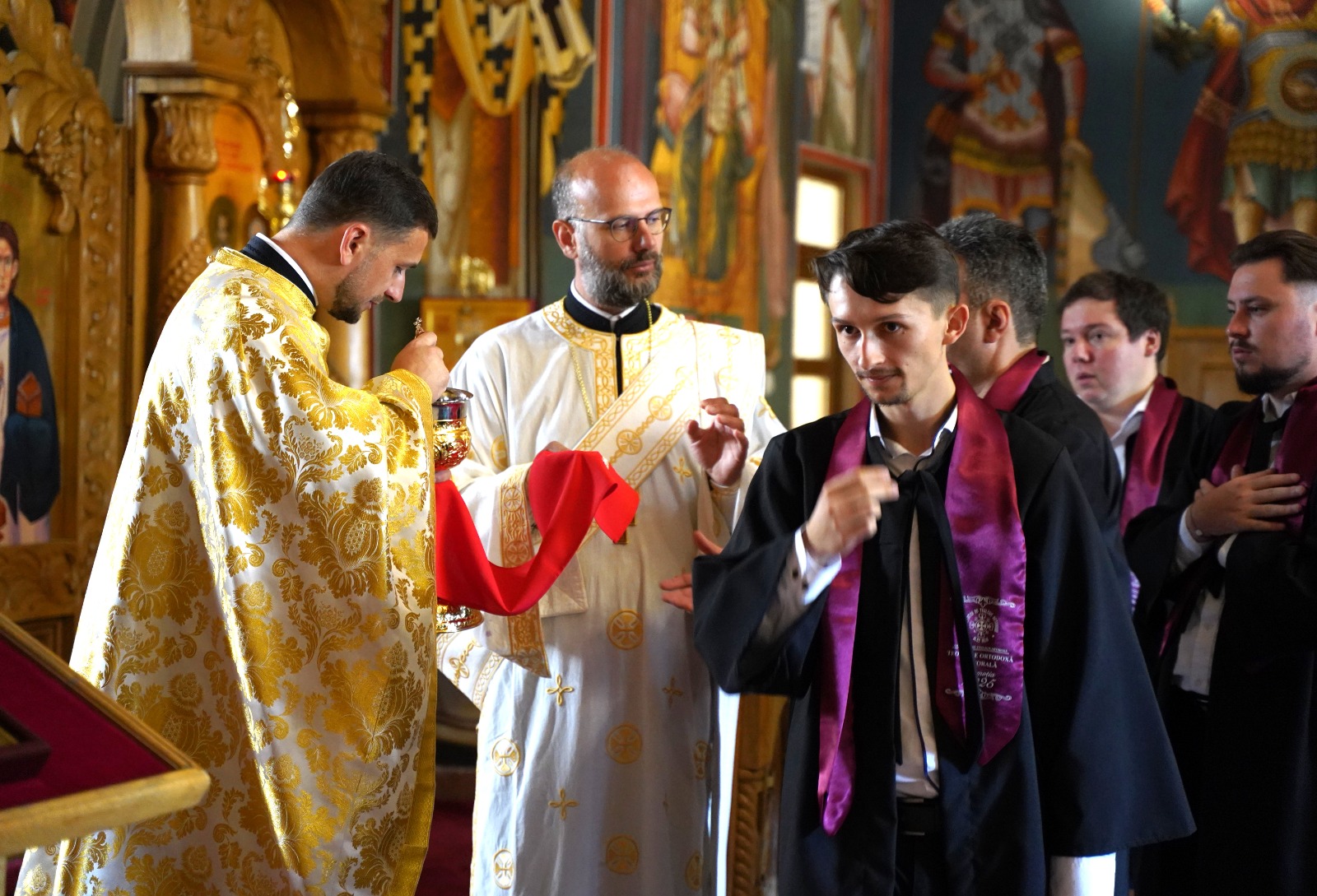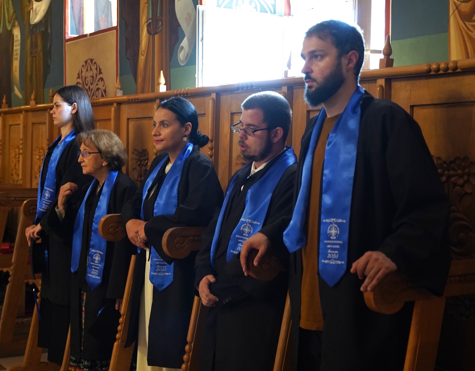 Joi, 10 iulie 2025, la Facultatea de Teologie Ortodoxă din Alba Iulia, s-a derulat festivitatea de absolvire a studenților promoției 2025. Cu acest prilej, Înaltpreasfințitul Părinte Arhiepiscop Irineu a fost prezent în mijlocul absolvenților celor trei secții: Teologie pastorală, Muzică religioasă și Artă sacră. De la ora 10.00, Întâistătătorul Eparhiei noastre a oficiat slujba de Te-Deum, în paraclisul „Sfinții Trei Ierarhi” din incinta instituției, înconjurat de părinții profesori și studenți. Apoi, Chiriarhul nostru a rostit o meditație duhovnicească, adresând cuvinte de felicitare tuturor absolvenților. Programul liturgic al zilei a debutat la ora 7.15, cu oficierea Acatistului Sfântului Cuvios Dometie cel Milostiv de la Râmeț. Apoi, de la ora 8.00, a fost săvârșită Dumnezeiasca Liturghie, în paraclisul „Sfinții Trei Ierarhi”.