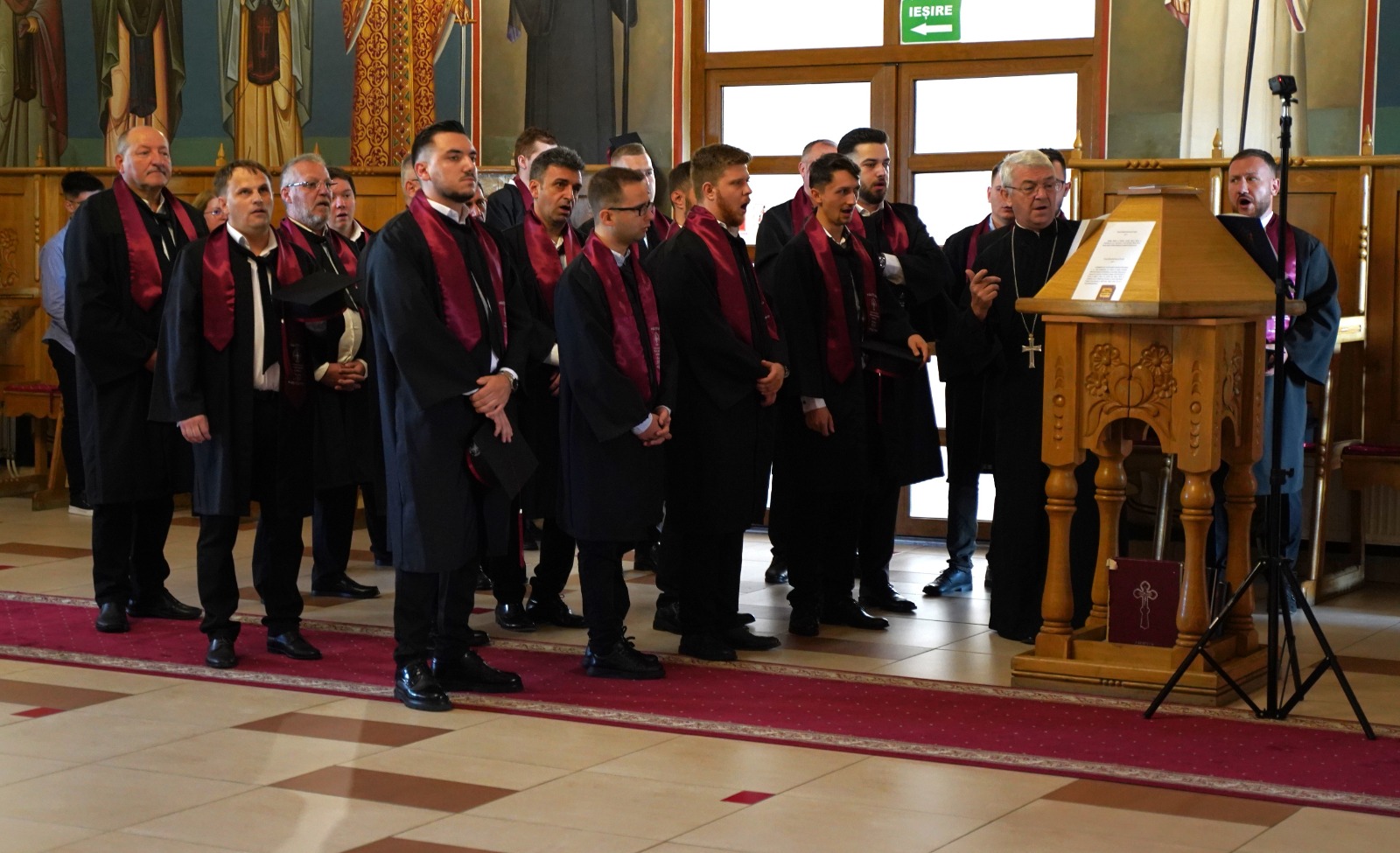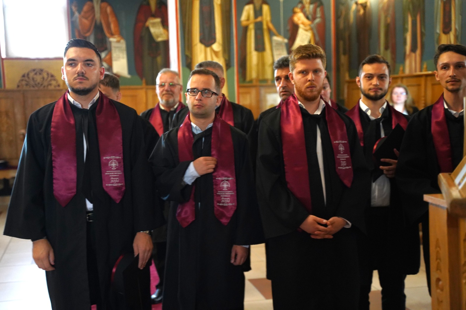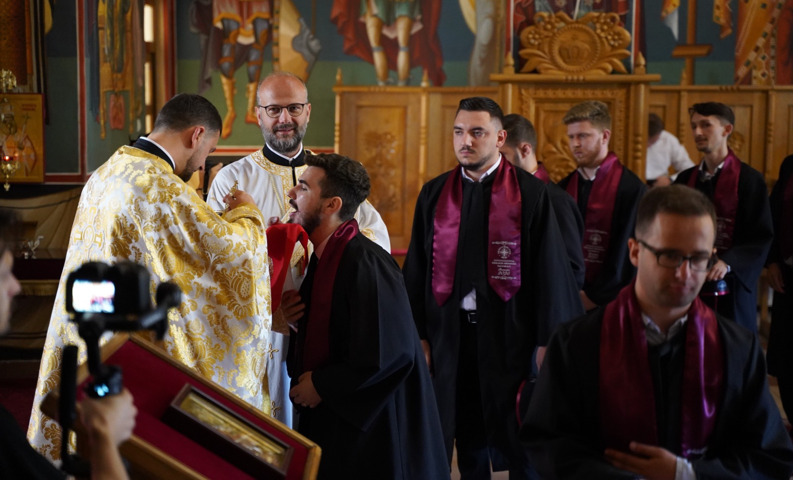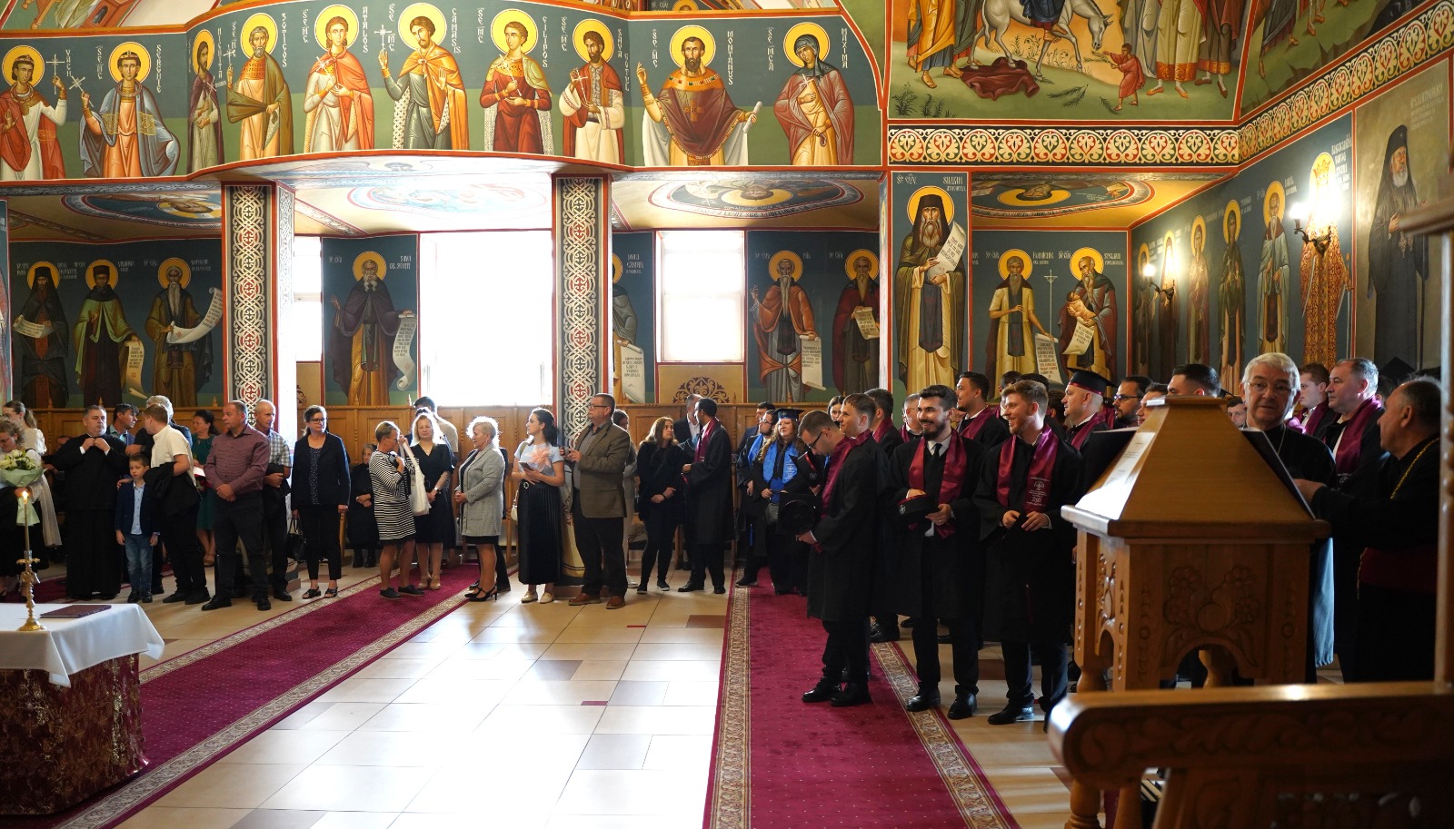 Joi, 10 iulie 2025, la Facultatea de Teologie Ortodoxă din Alba Iulia, s-a derulat festivitatea de absolvire a studenților promoției 2025. Cu acest prilej, Înaltpreasfințitul Părinte Arhiepiscop Irineu a fost prezent în mijlocul absolvenților celor trei secții: Teologie pastorală, Muzică religioasă și Artă sacră. De la ora 10.00, Întâistătătorul Eparhiei noastre a oficiat slujba de Te-Deum, în paraclisul „Sfinții Trei Ierarhi” din incinta instituției, înconjurat de părinții profesori și studenți. Apoi, Chiriarhul nostru a rostit o meditație duhovnicească, adresând cuvinte de felicitare tuturor absolvenților. Programul liturgic al zilei a debutat la ora 7.15, cu oficierea Acatistului Sfântului Cuvios Dometie cel Milostiv de la Râmeț. Apoi, de la ora 8.00, a fost săvârșită Dumnezeiasca Liturghie, în paraclisul „Sfinții Trei Ierarhi”.