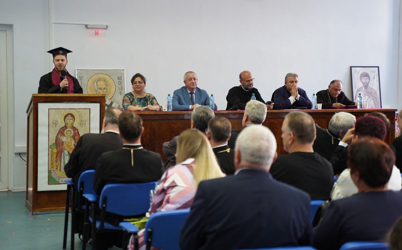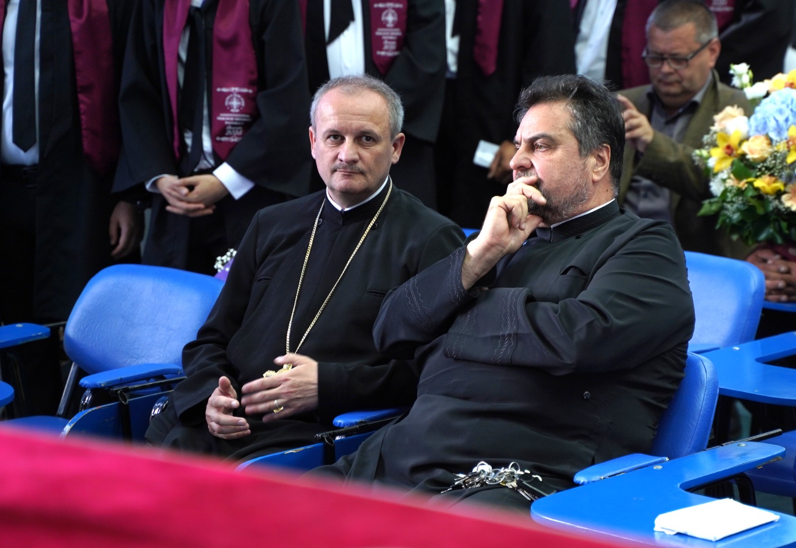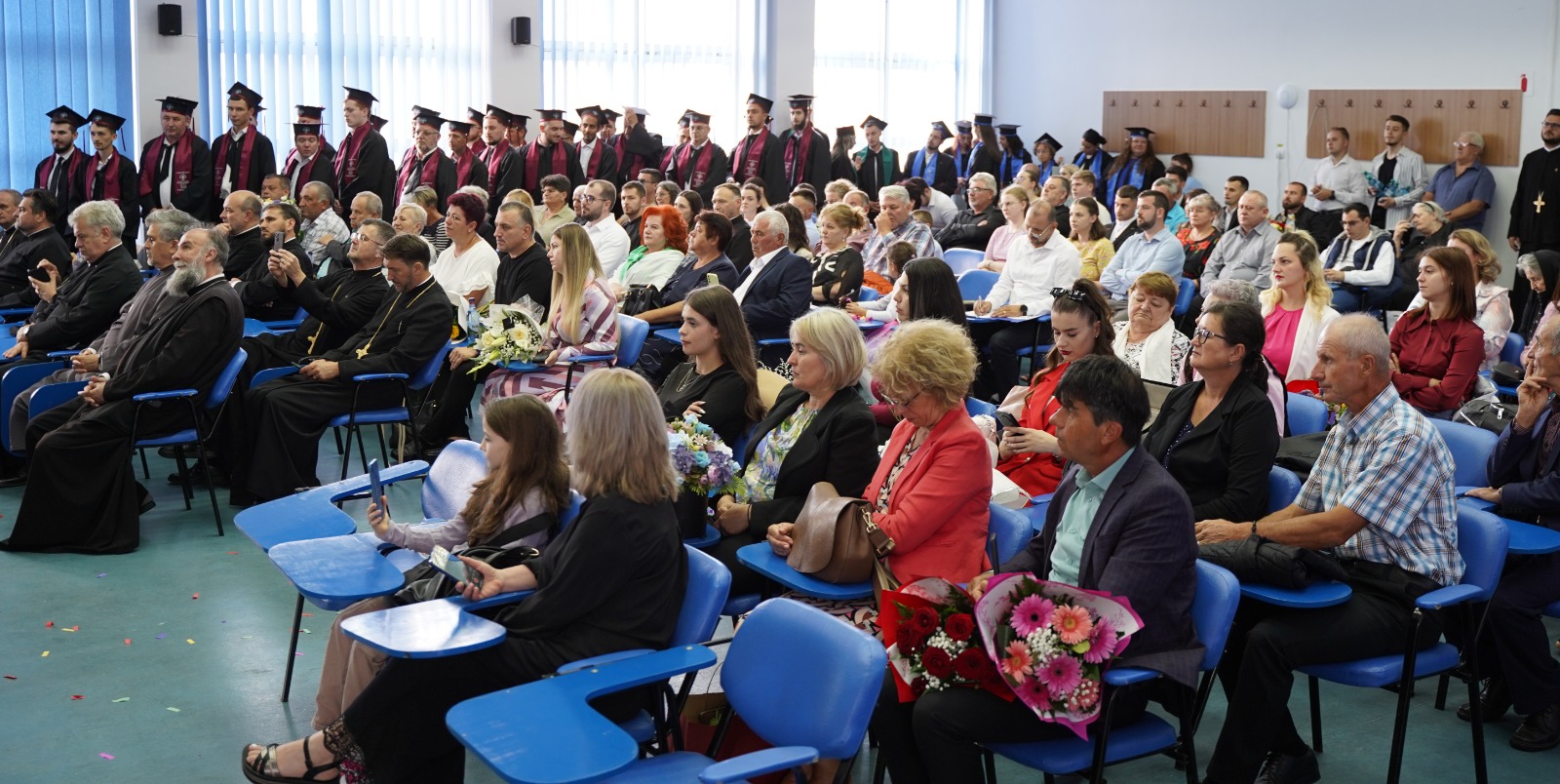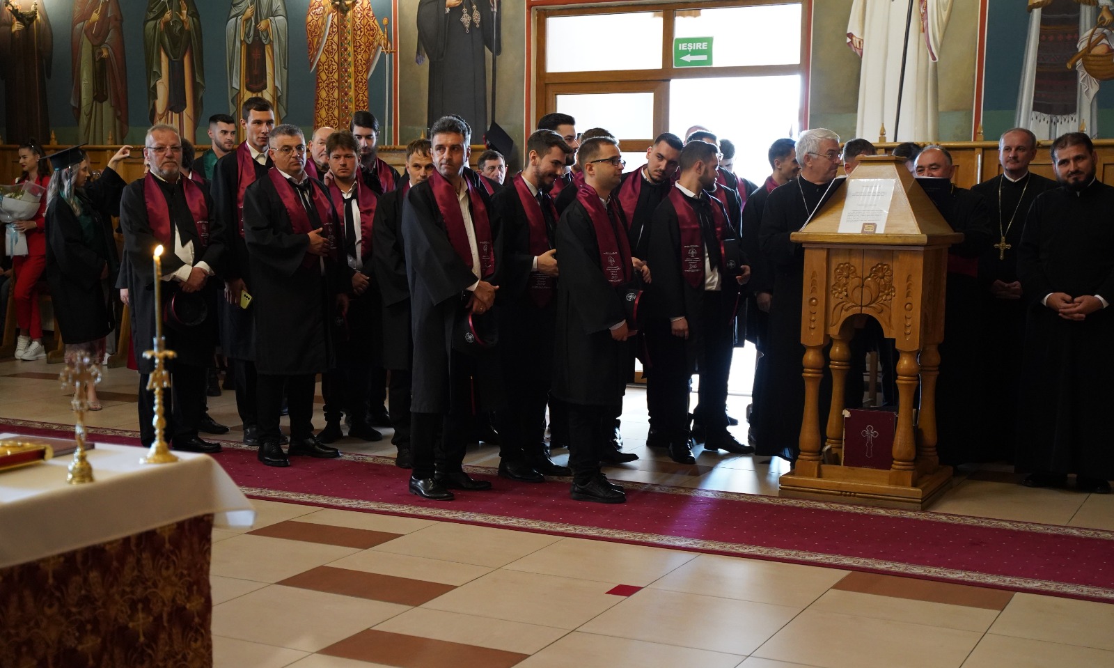În continuare, de la ora 10.30, a avut loc Cursul festiv, desfășurat în Aula „Sfântul Preot Mărturisitor Dumitru Stăniloae”. La eveniment au participat cadrele didactice ale instituției de învățământ teologic universitar, absolvenții promoției 2025 și numeroși invitați. În debutul ceremoniei, după intonarea cântecului academic tradițional – „Gaudeamus igitur” –, arhid. conf. univ. dr. Răzvan Brudiu, decanul interimar al Facultății de Teologie Ortodoxă din Alba Iulia, și prof. univ. dr. Attila Tamaș, președintele Senatului Universității „1 Decembrie 1918” din Alba Iulia, au adresat alese felicitări tinerilor absolvenți. În continuare, au rostit discursuri festive îndrumătorii de an și șeful de promoție al secției Teologie Ortodoxă Pastorală, Andrei Rotaru, prilej cu care au subliniat importanța anilor studenției pentru modelarea morală și intelectuală a tinerilor.