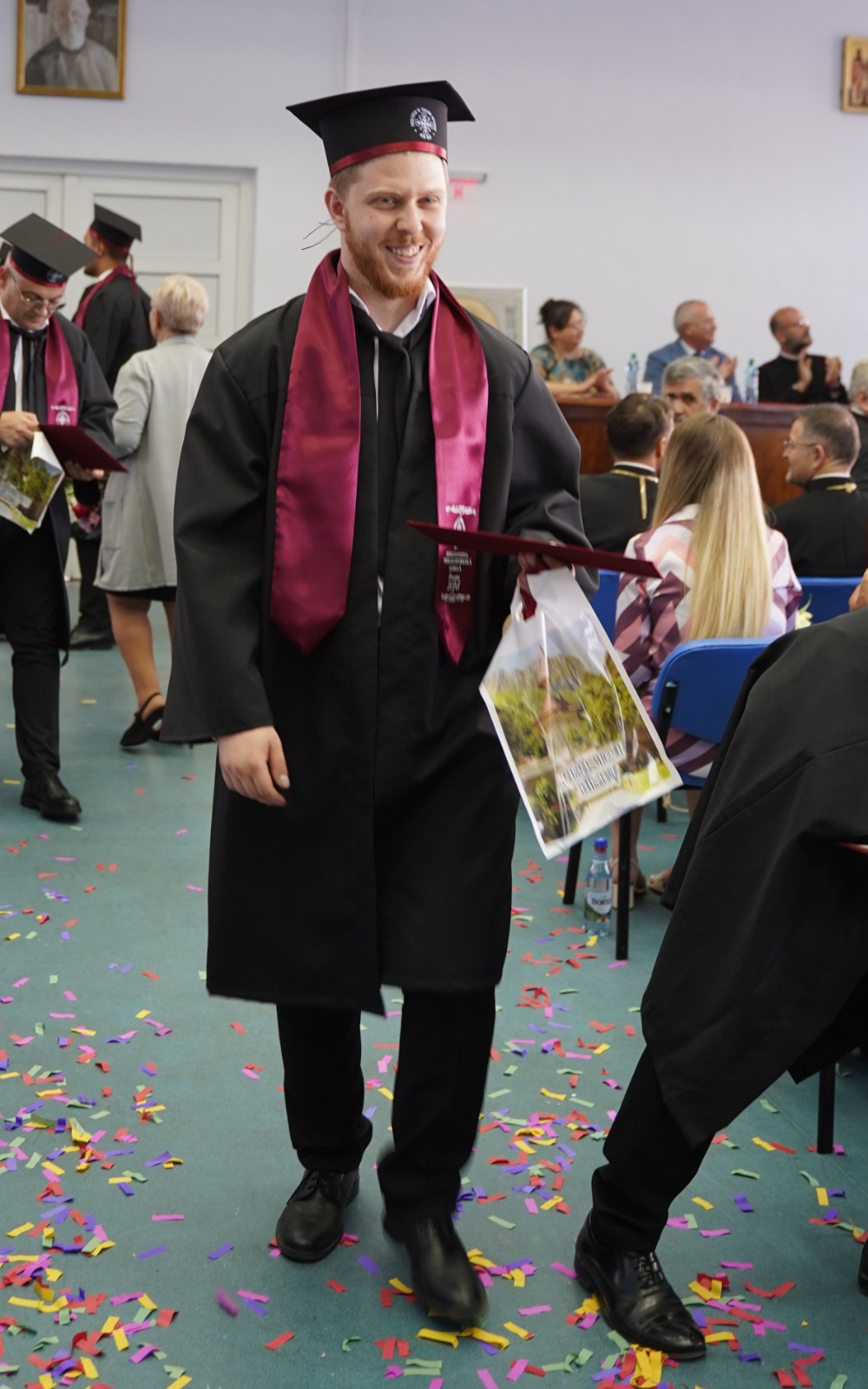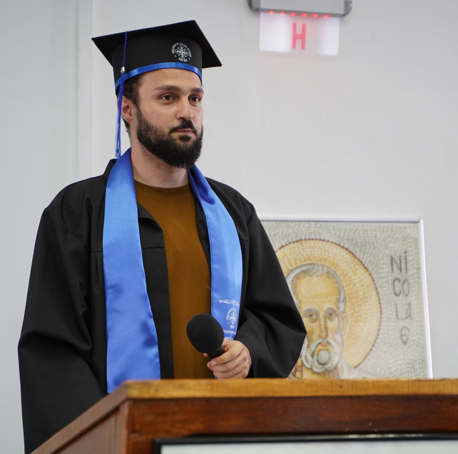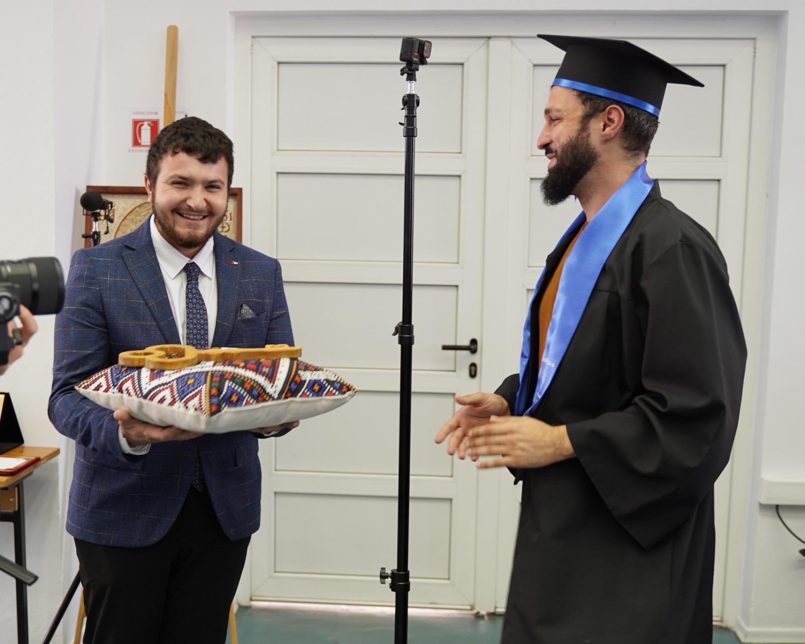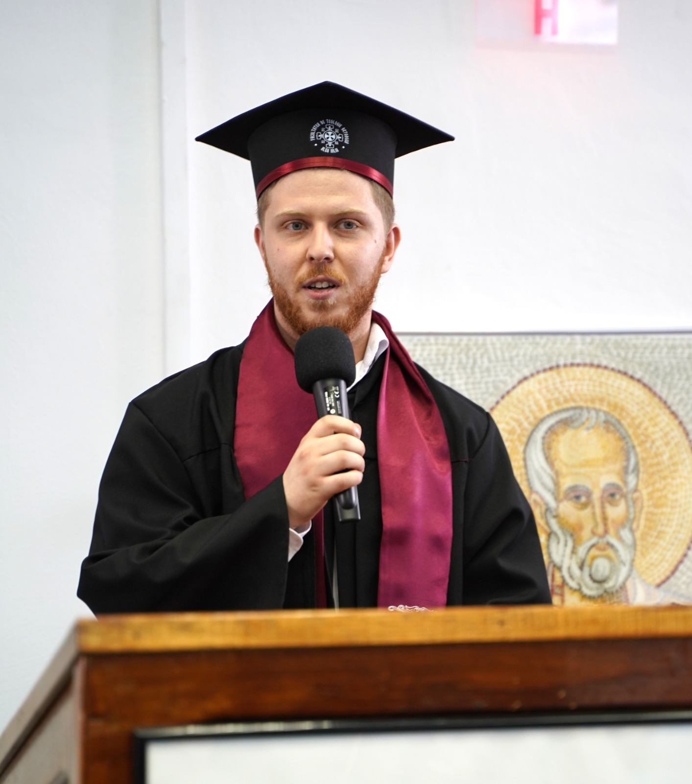 În continuare, de la ora 10.30, a avut loc Cursul festiv, desfășurat în Aula „Sfântul Preot Mărturisitor Dumitru Stăniloae”. La eveniment au participat cadrele didactice ale instituției de învățământ teologic universitar, absolvenții promoției 2025 și numeroși invitați. În debutul ceremoniei, după intonarea cântecului academic tradițional – „Gaudeamus igitur” –, arhid. conf. univ. dr. Răzvan Brudiu, decanul interimar al Facultății de Teologie Ortodoxă din Alba Iulia, și prof. univ. dr. Attila Tamaș, președintele Senatului Universității „1 Decembrie 1918” din Alba Iulia, au adresat alese felicitări tinerilor absolvenți. În continuare, au rostit discursuri festive îndrumătorii de an și șeful de promoție al secției Teologie Ortodoxă Pastorală, Andrei Rotaru, prilej cu care au subliniat importanța anilor studenției pentru modelarea morală și intelectuală a tinerilor.