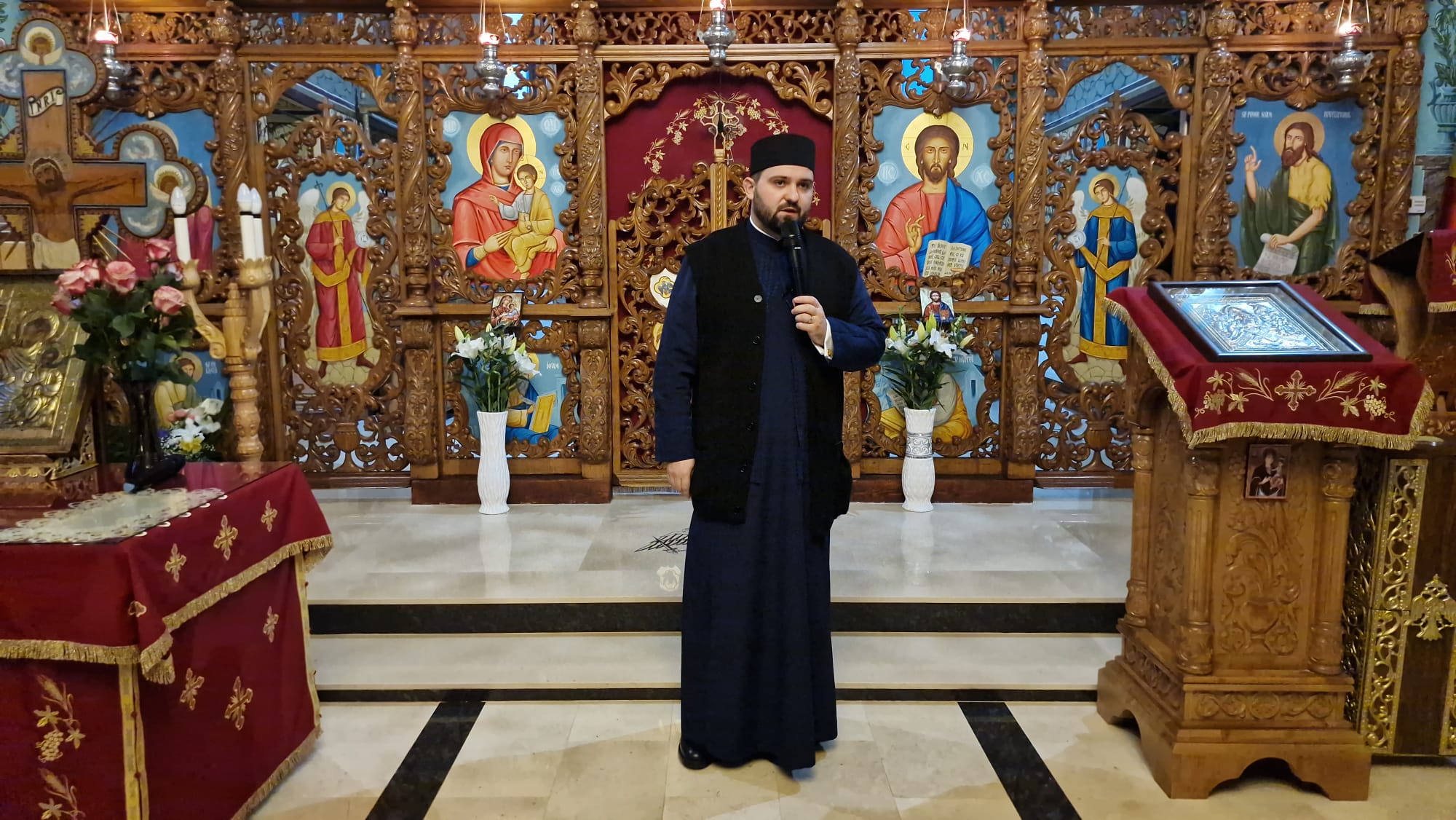 În cuvântul domniei sale, domnul Inspector școlar general la disciplina Religie din cadrul Ministerului Educației Naționale l-a prezentat pe Eminescu drept „un stâlp și un fundament al culturi și al civilizației româneși, un pașaport al spiritualității românești, care a trăit atât de puțin, dar a făcut atât de mult”. Domnia sa a apreciat că „orice tip de civilizație se fundamentează pe un anumit tip de cultură și orice cultură se fundamnetează pe un anumit tip de cult. Cu alte cuvinte, cultura se exprimă și exprimă felul de a fi al unui neam, cum vede relația pe verticală cu Dumnezeu și pe orizontală cu oamenii. Poetul nostru național ne-a simțit pe noi pe toți, și-a asumat cultura, tradițiile și sufletul poporului român și a înțeles că există o legătură între tot ceea ce facem în viață, biserică și societate. Aflat la vârsta deplinei tinereți, când centrul preocupărilor sale ar fi trebuit să fie propria carieră, Eminescu nu s-a putut clădi detașat de sufletul, evlavia și vocea neamului, iar în corespondența cu un prieten, supărat pe situația care se petrecea în lume, i-a scris acestuia despre intenția îmbrățișării unei vieți monahale, dedicată rugăciunii și scrierii depre suferința neamului românesc”.