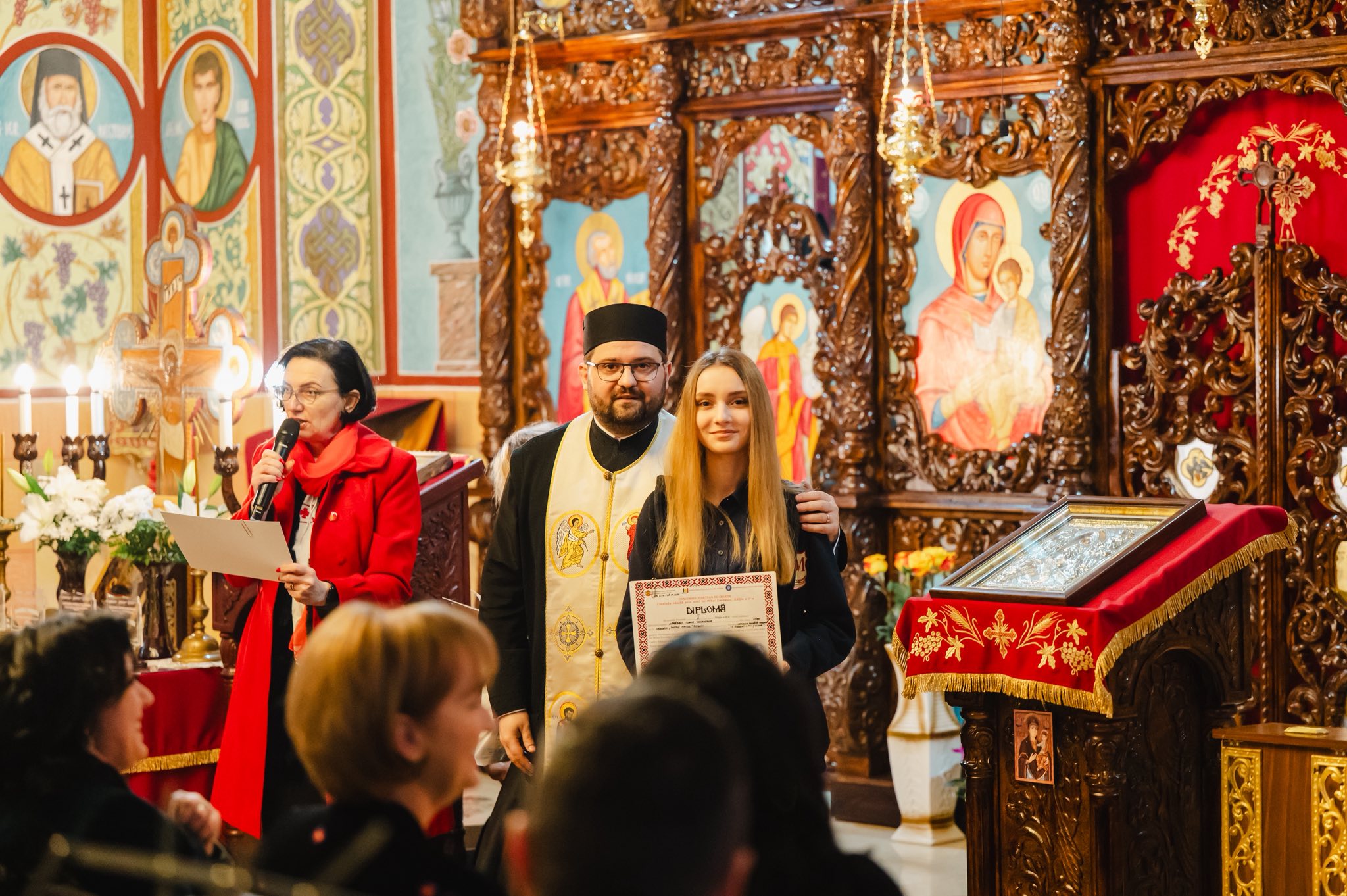 Doamna inspector pentru disciplina Religie, prof. Alina Bexa, a transmis cuvântul de felicitare și apreciere din partea Înaltpreasfințitului Părinte Irineu, Arhiepiscop al Alba Iuliei, și a accentuat importanța colaborării dintre Școală și Biserică și roadele bogate care rezultă în urma acestui parteneriat. De asemenea, i-a îndemnat pe tineri ca în momentele de încercare, atunci când nu se mai regăsesc, nu știu cine sunt, să vină la biserică, în casa Domnului, casa noastră și a identității noastre.